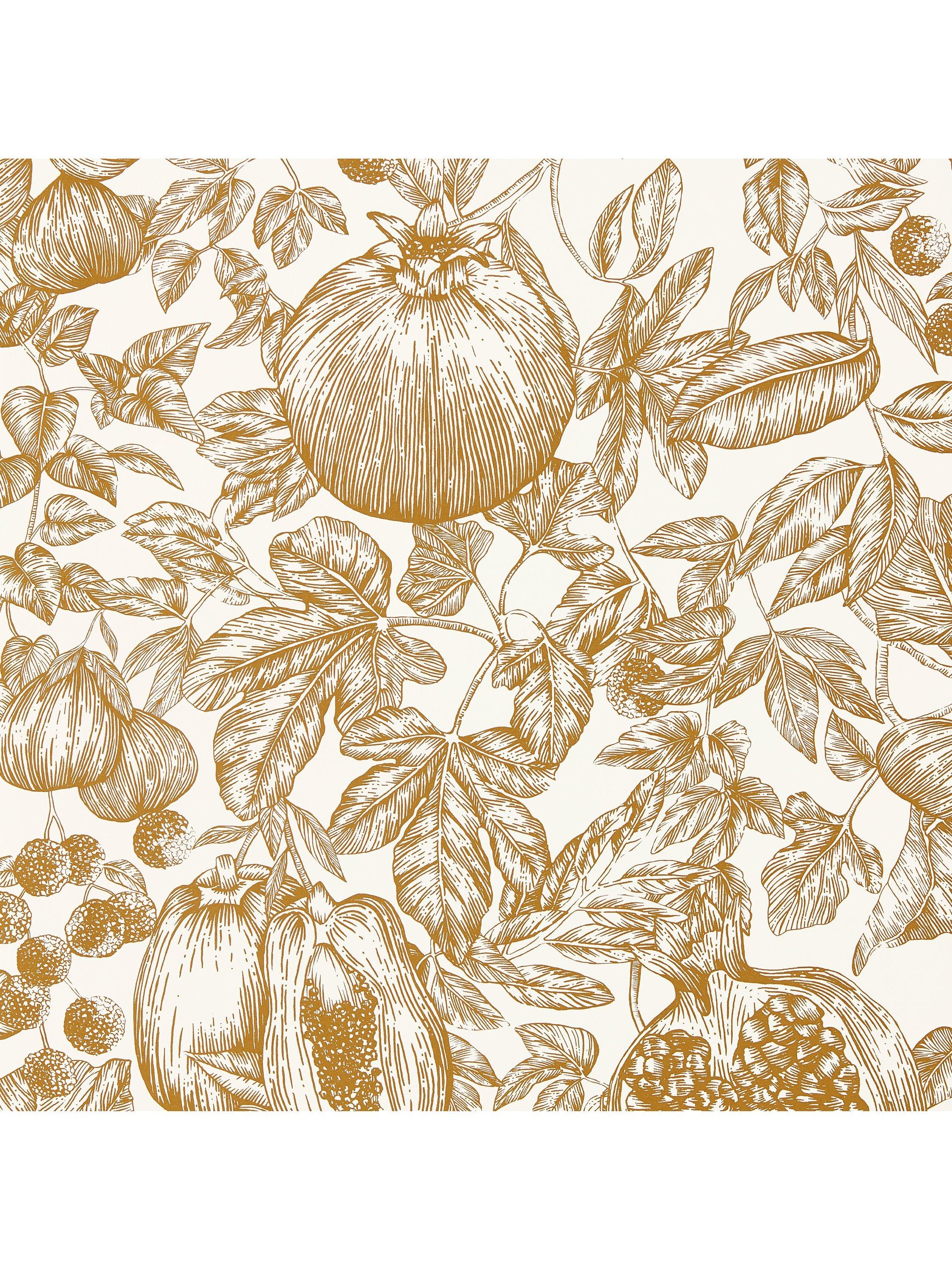 A contemporary interpretation of fruits found along the Silk Road, pomegranates, figs and lichees mingle in this modern toile wallpaper, hand drawn in pen.