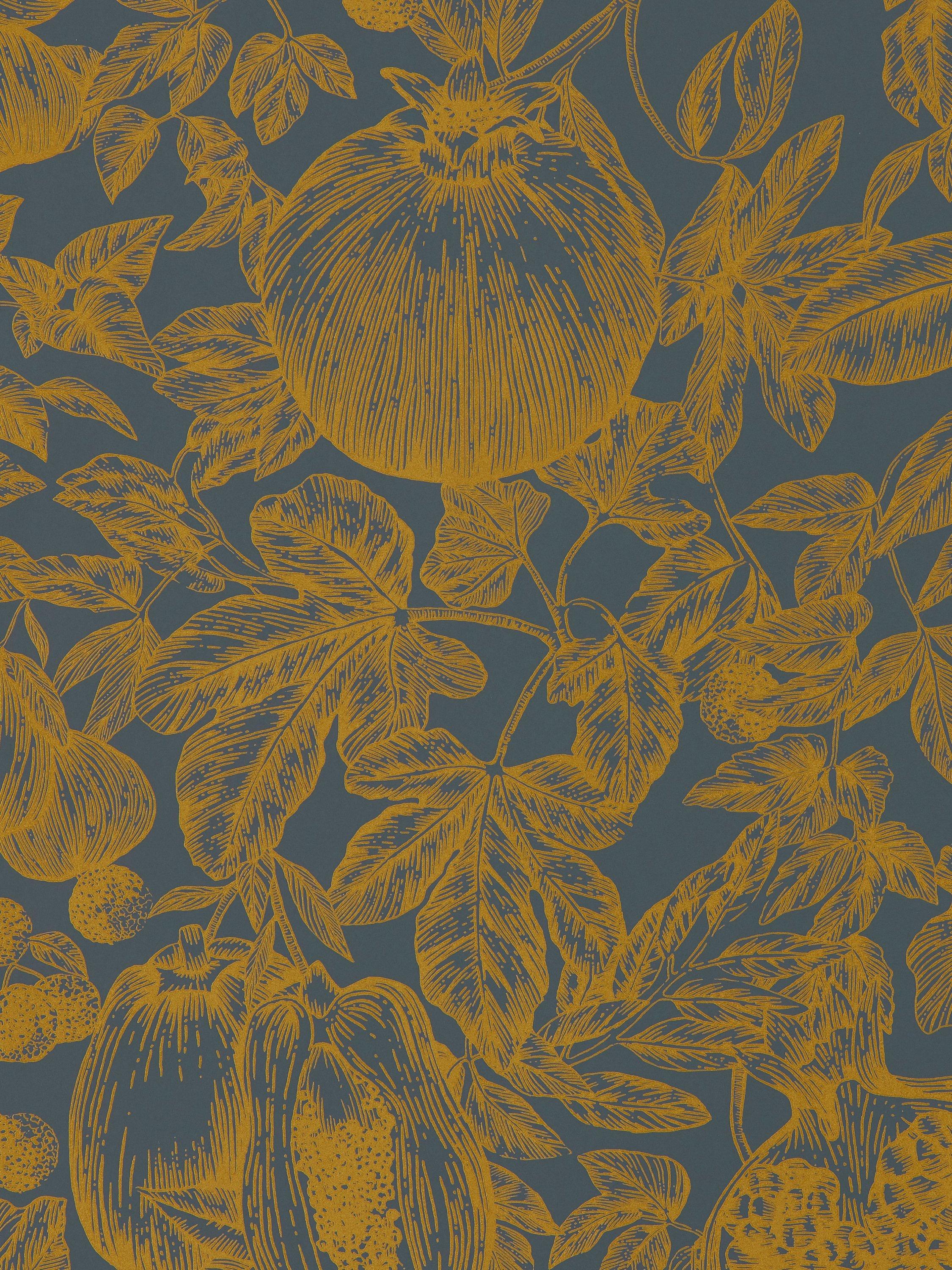 A contemporary interpretation of fruits found along the Silk Road, pomegranates, figs and lichees mingle in this modern toile wallpaper, hand drawn in pen.
