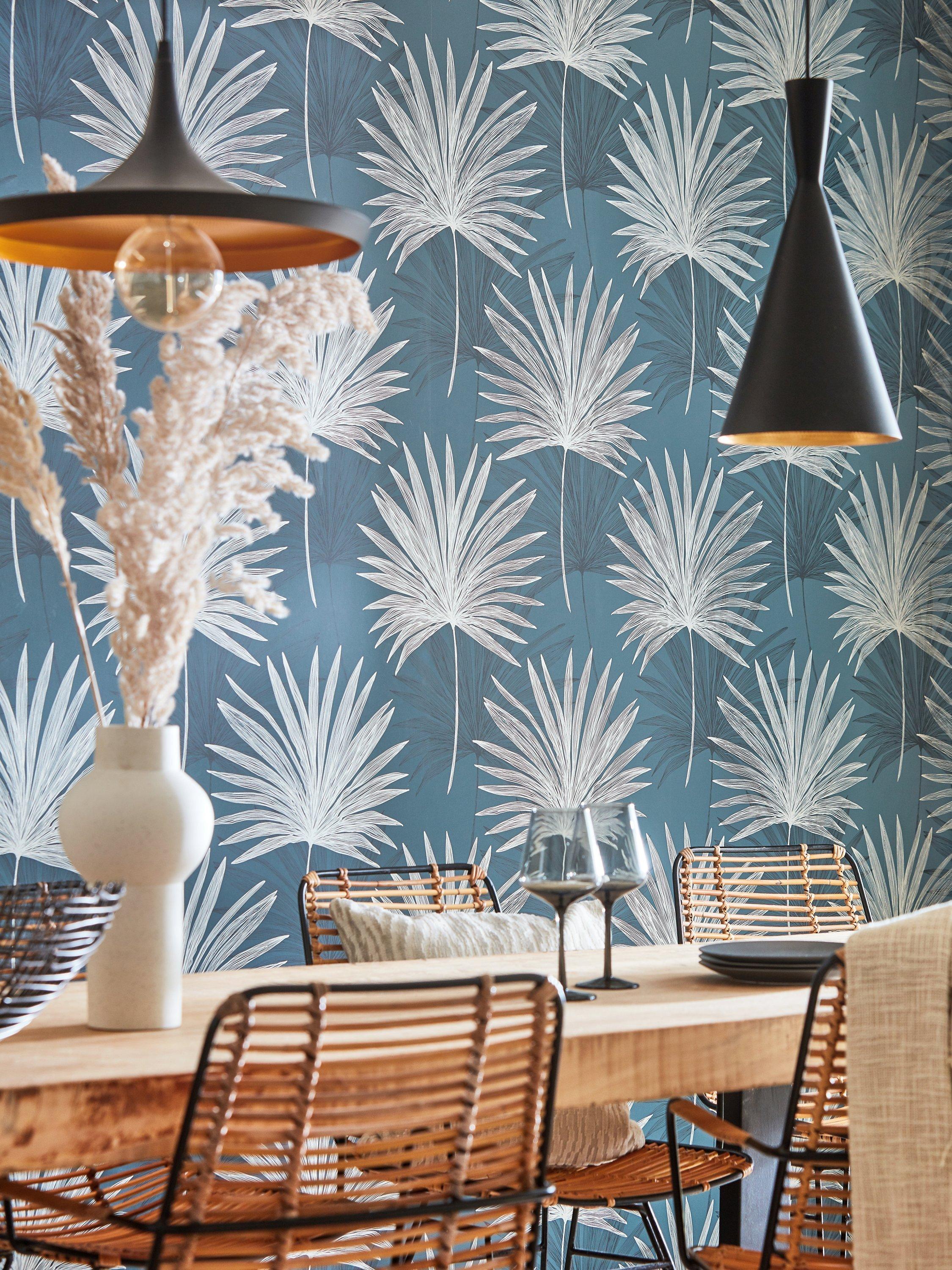 With a relaxed, hand-drawn look, large scale sketchy palms fan out across this rotary printed design.