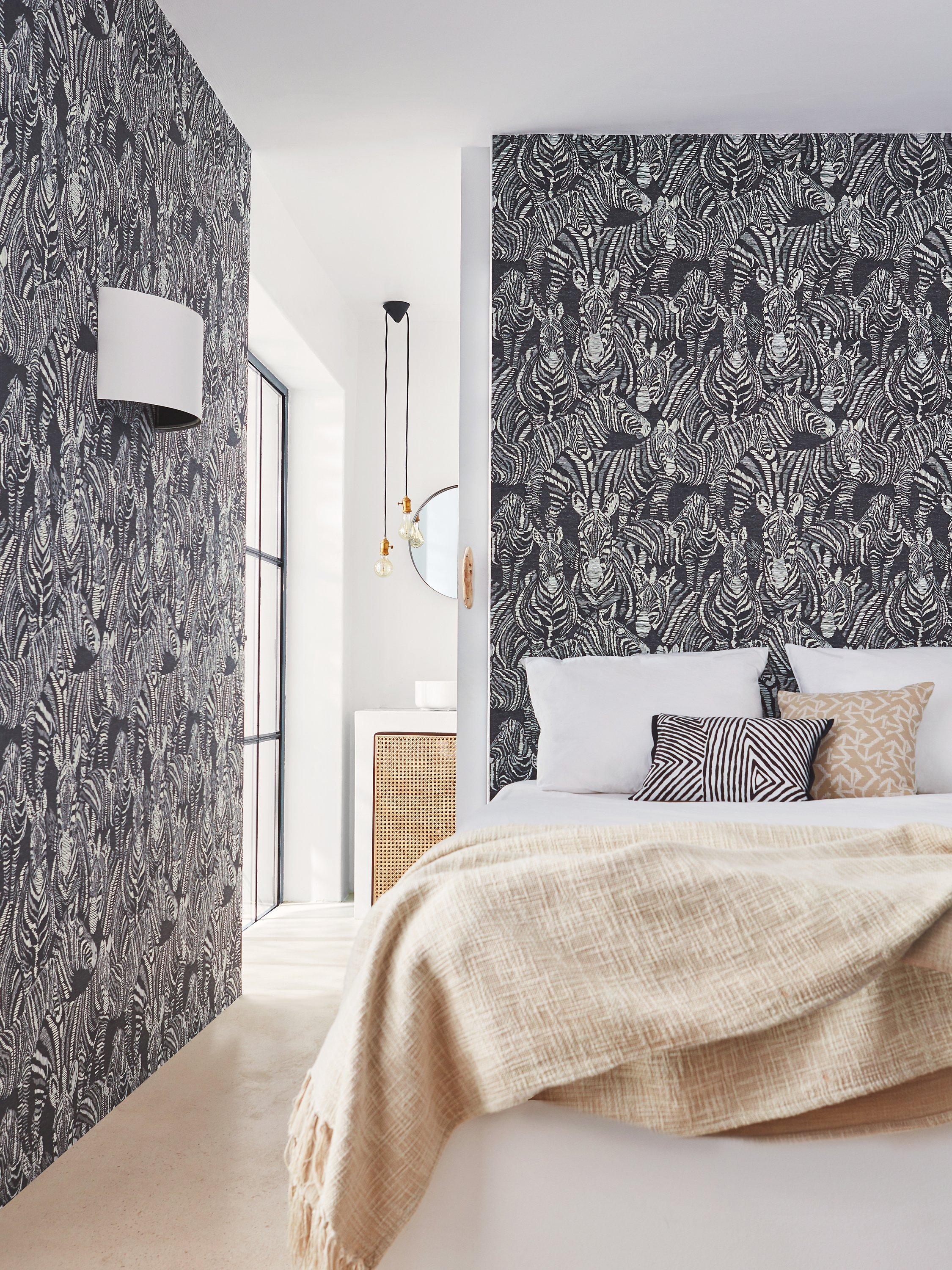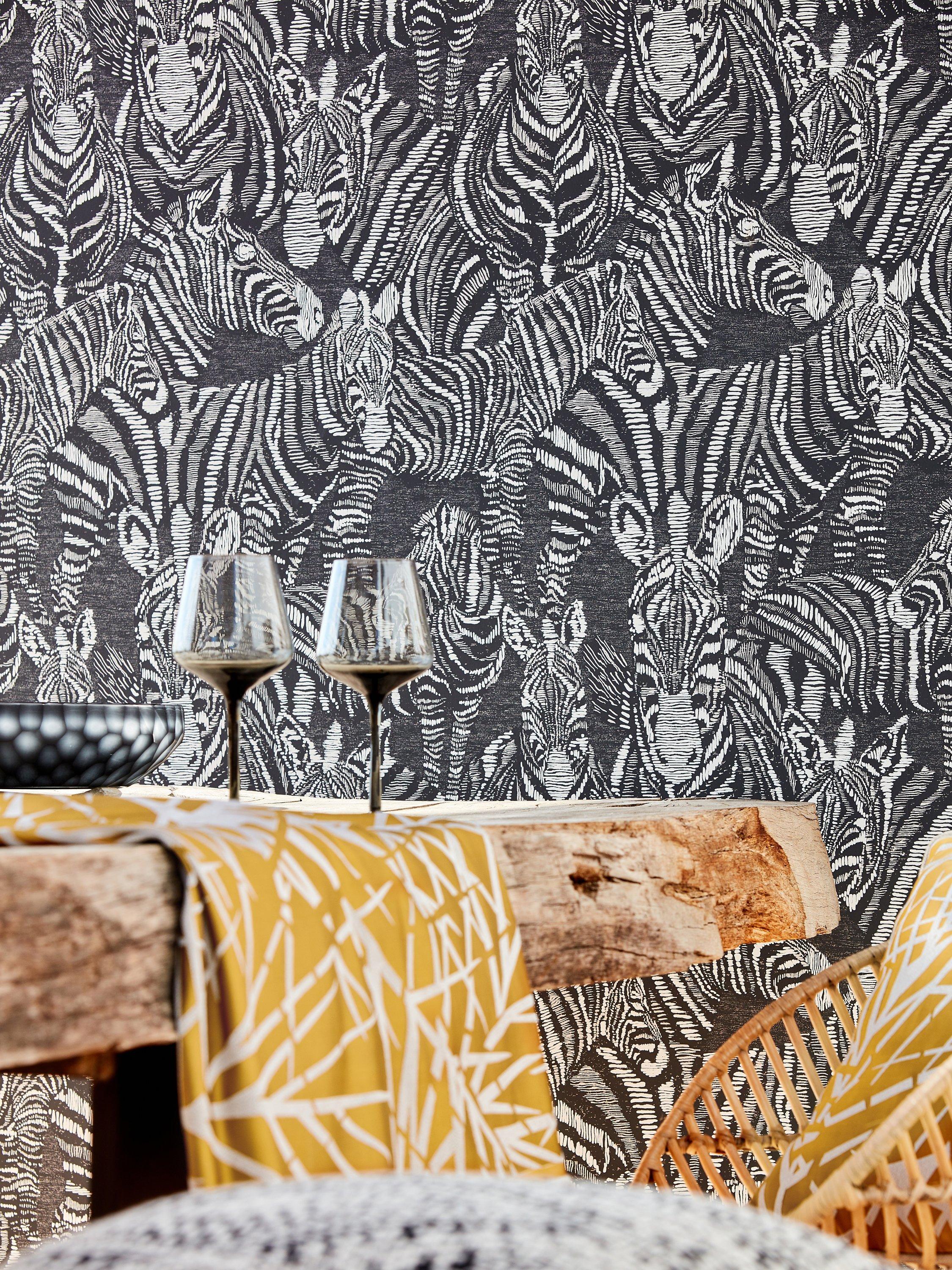 This dazzle of zebras brings its own unique style to contemporary interiors. Specialist inks emphasise the charming detail of the design, introducing a glamorous look to the home.