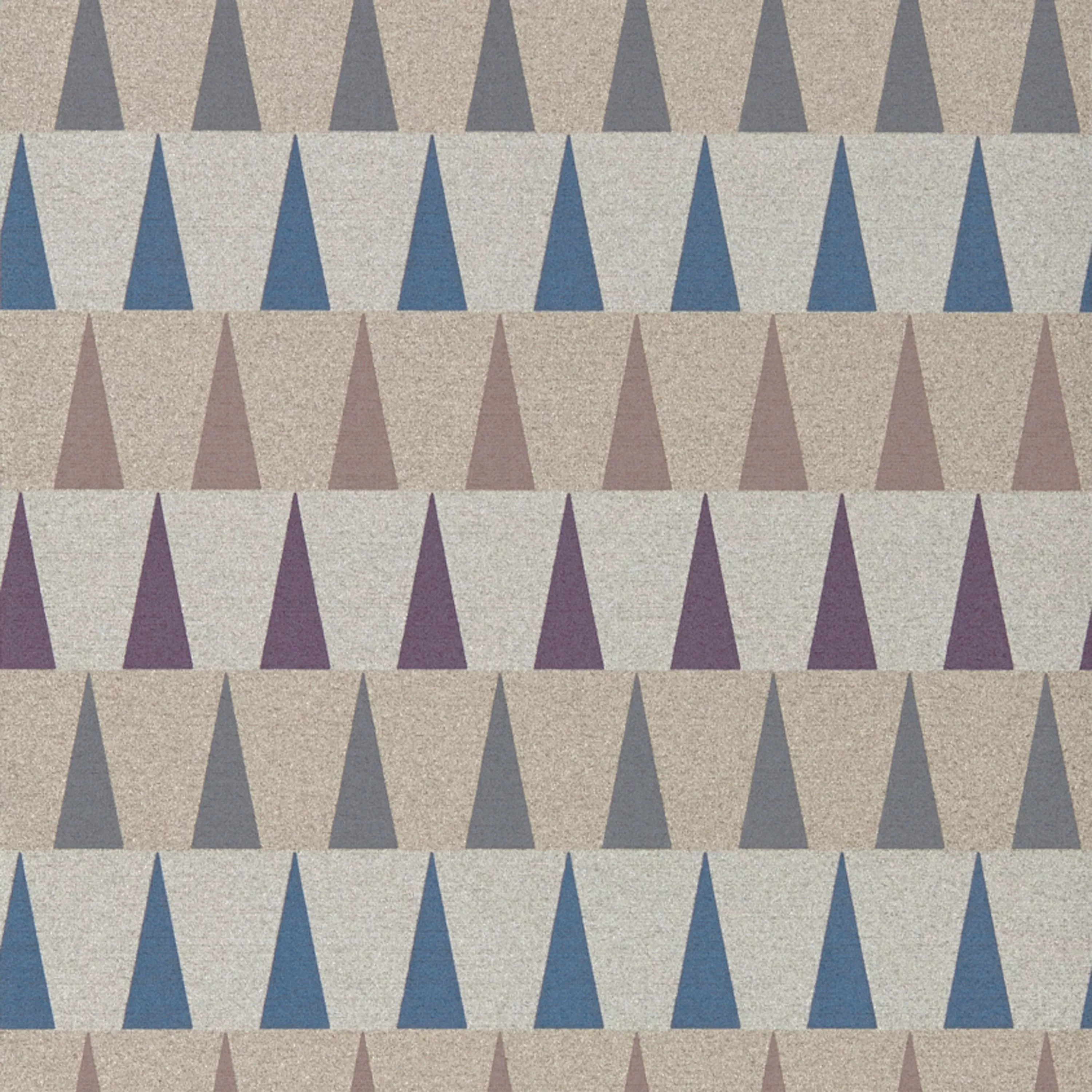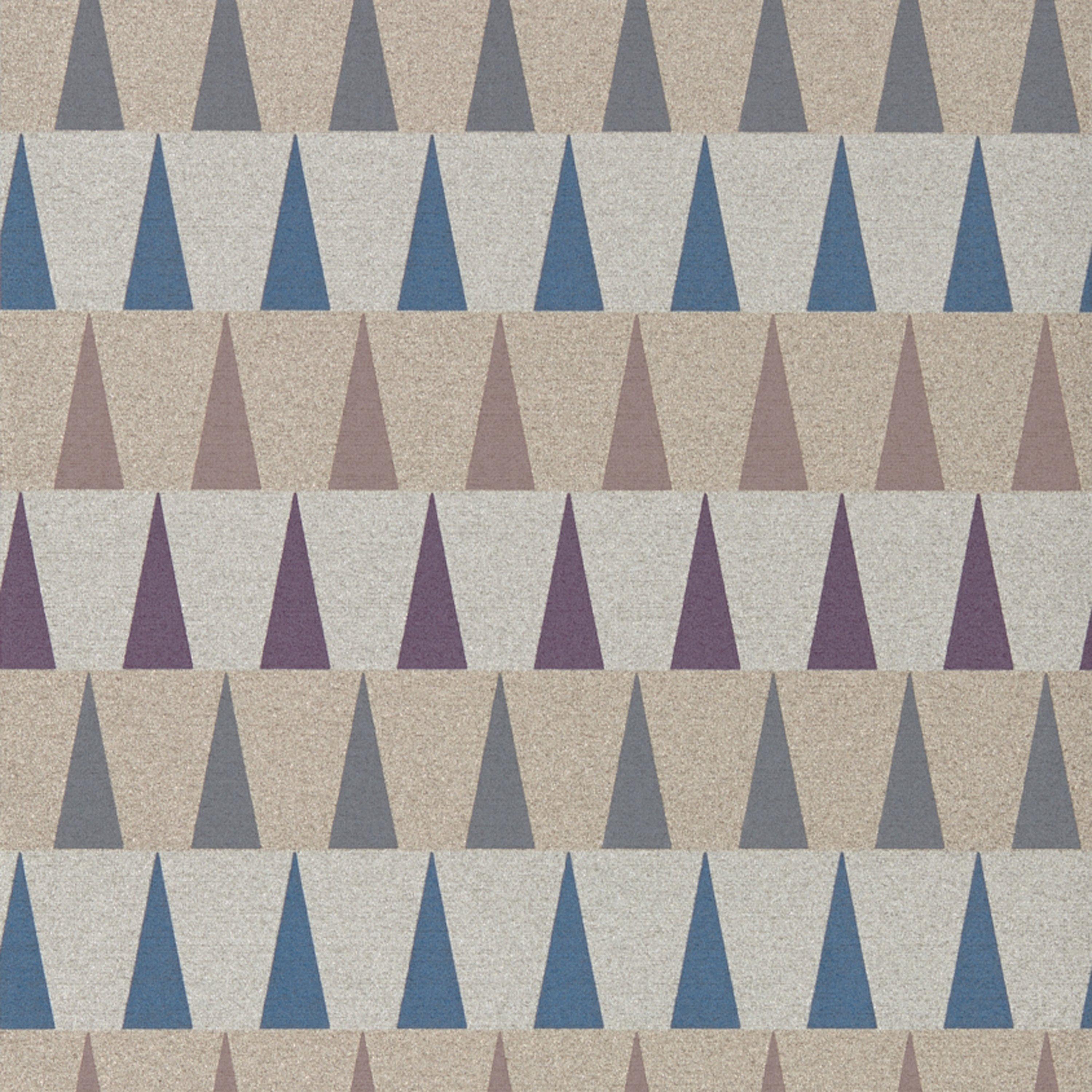 A contemporary geometric triangular design, this fashion-forward vinyl wallcovering is available on either a matte metallic or flush grey ground.