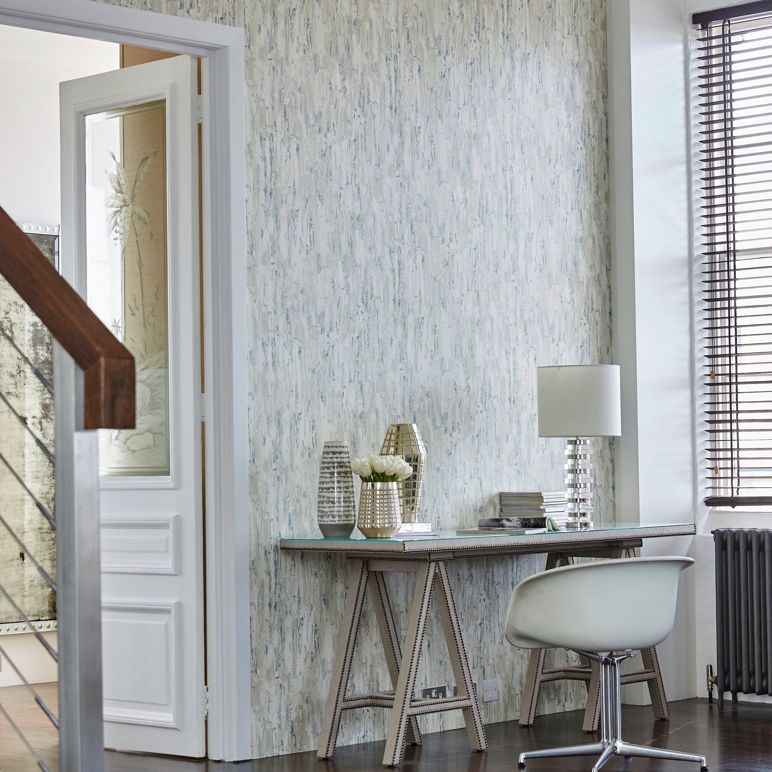 A free-flowing, layered brush-marked vinyl wallcovering.