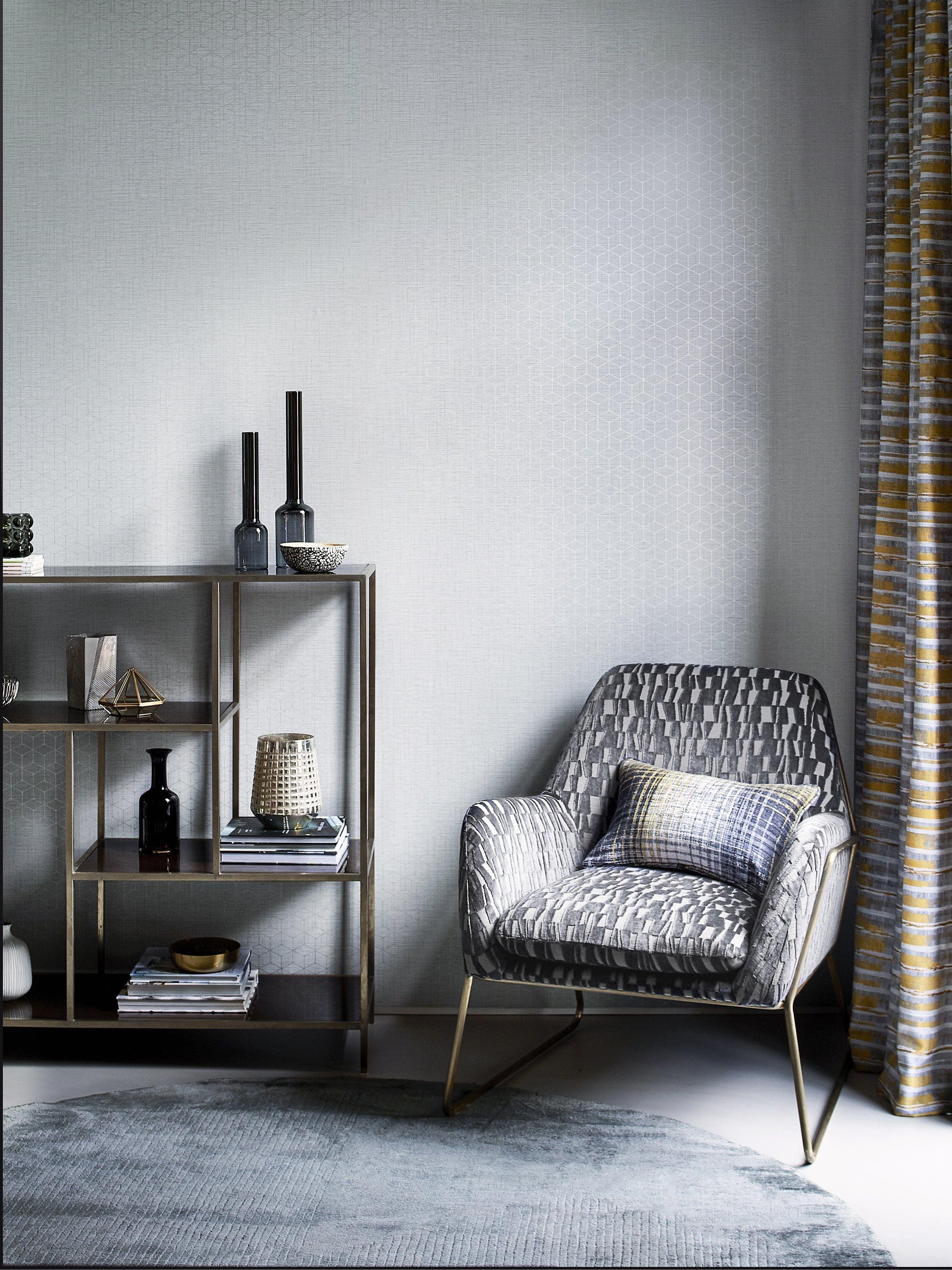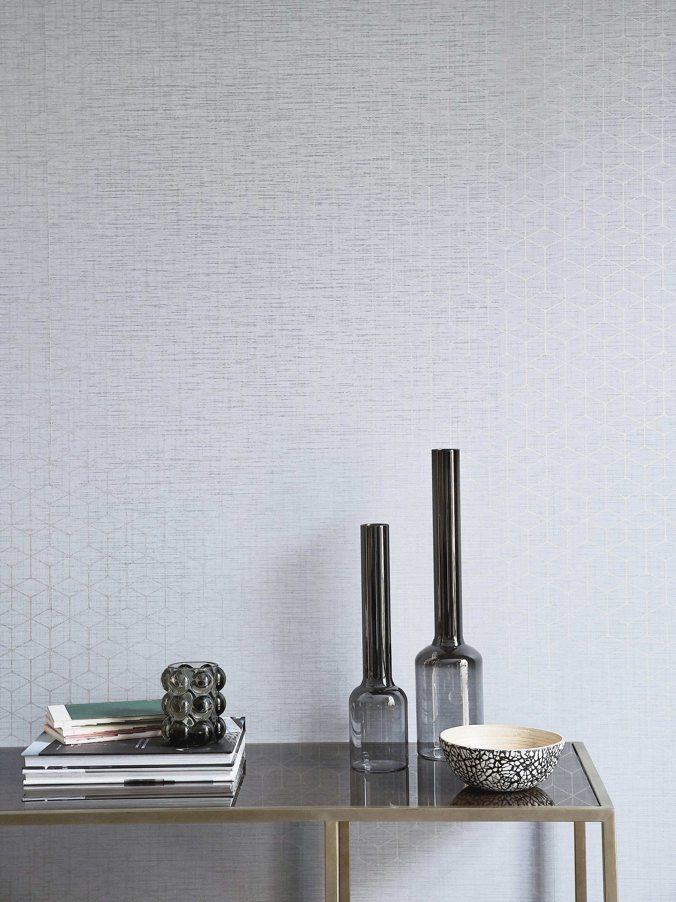 Cubes, diamonds or hexagons? Let this small scale geometric wallcovering trick your eye with its multitude of interlinking shapes, softly embossed with a metallic design.