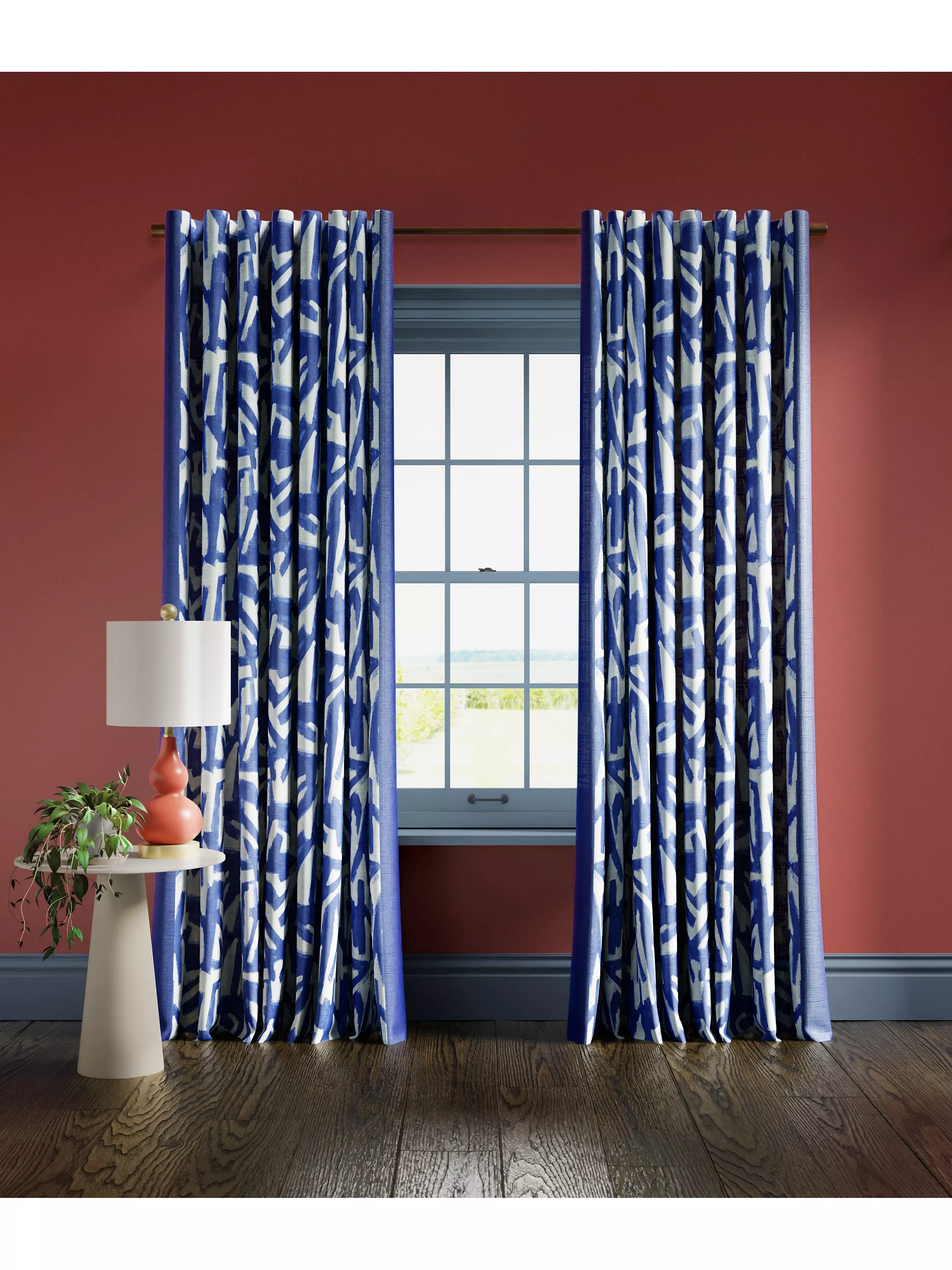 Digitally printed cotton-linen ready made curtain in Sophie Robinson Thicket design. Fully lined with daylight lining and multiway header.