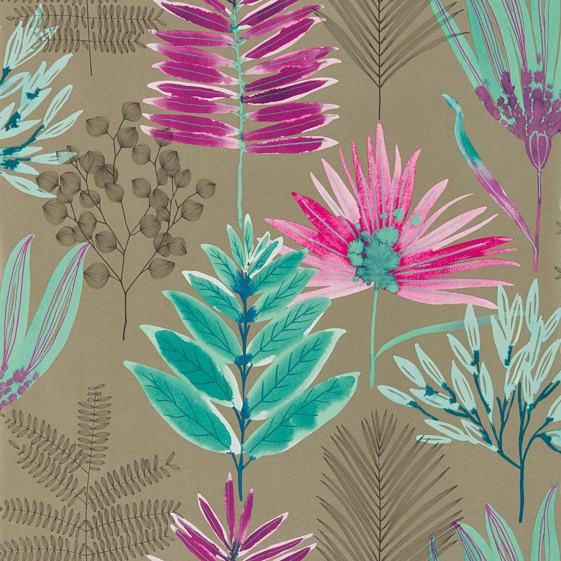 A botanical design with a combination of inkily-drawn leaves, foliage and finely drawn plants.