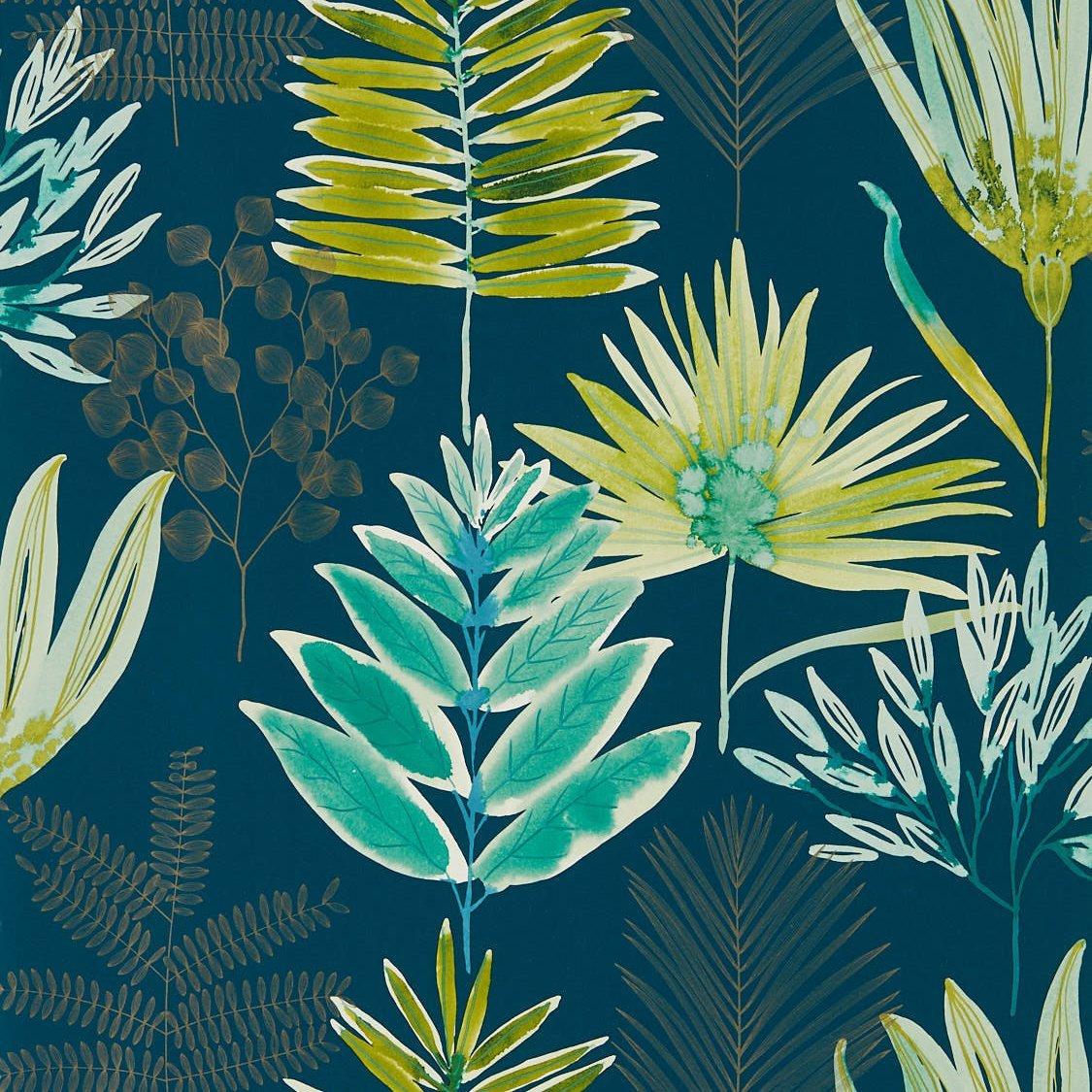 A botanical design with a combination of inkily-drawn leaves, foliage and finely drawn plants.