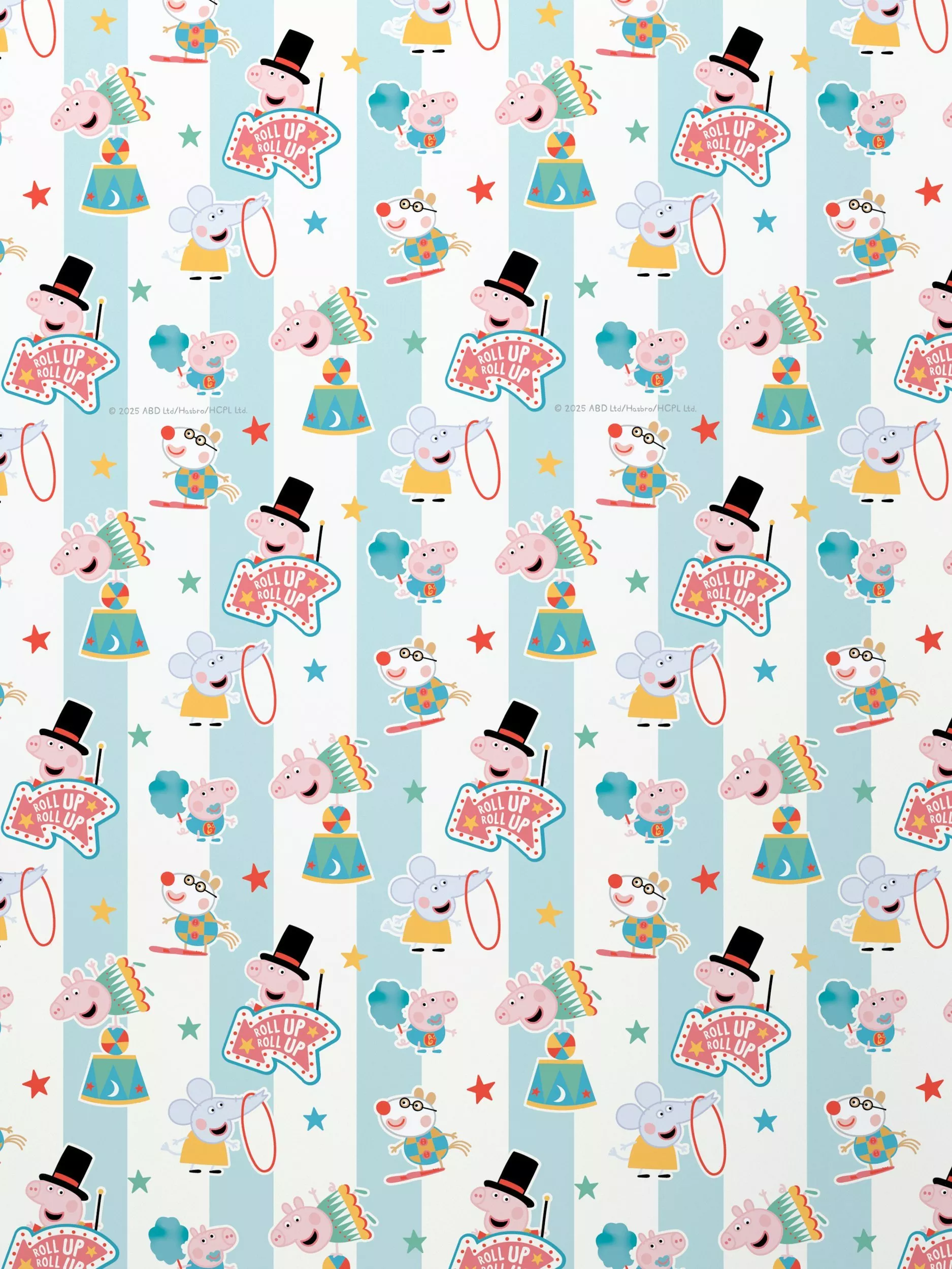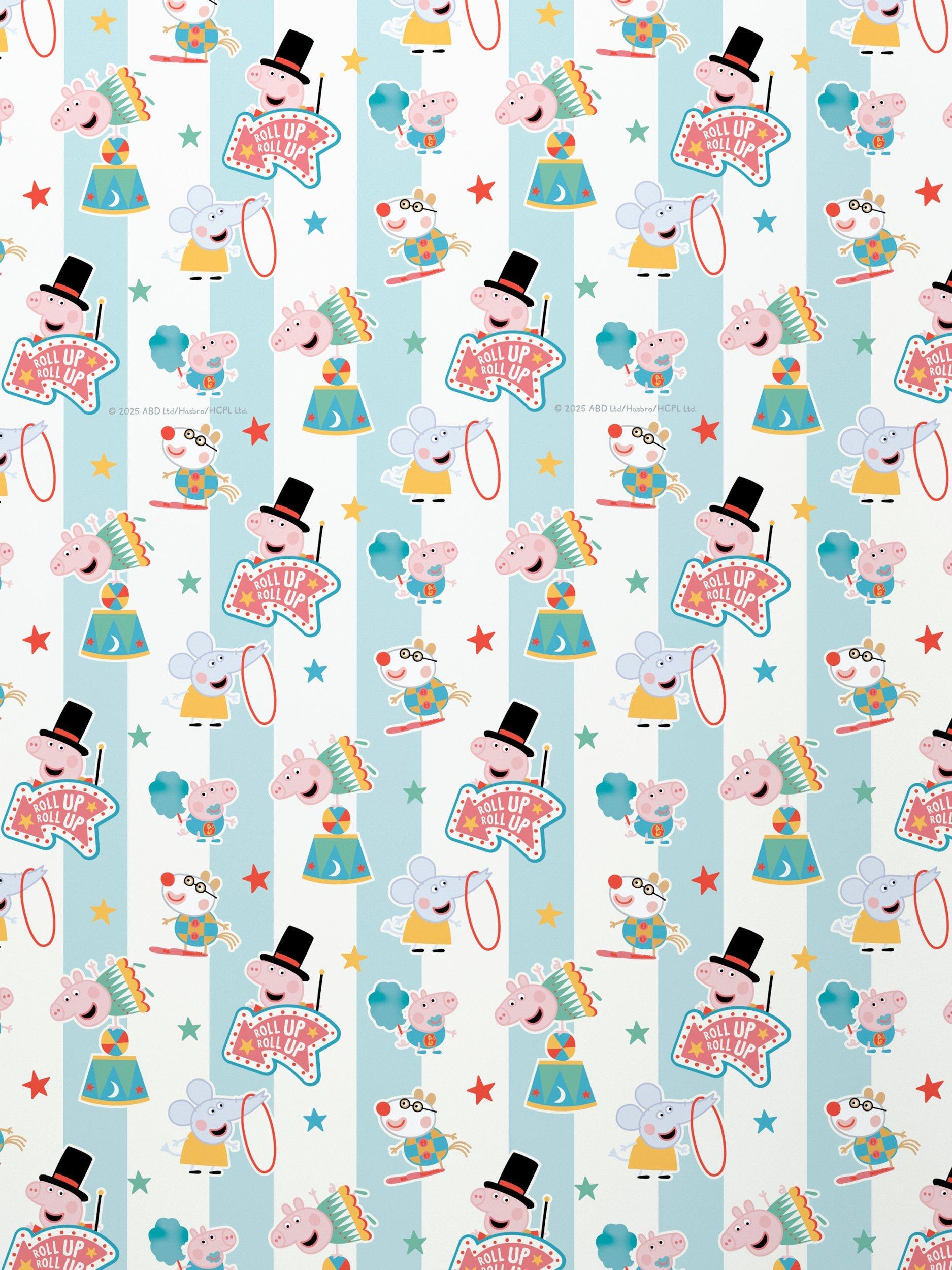 A fun and stripey circus-themed Peppa Pig wrapping paper.