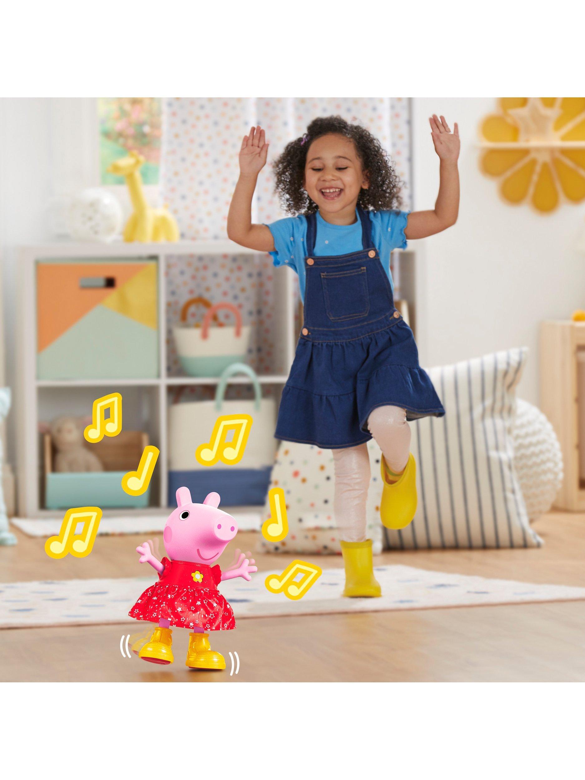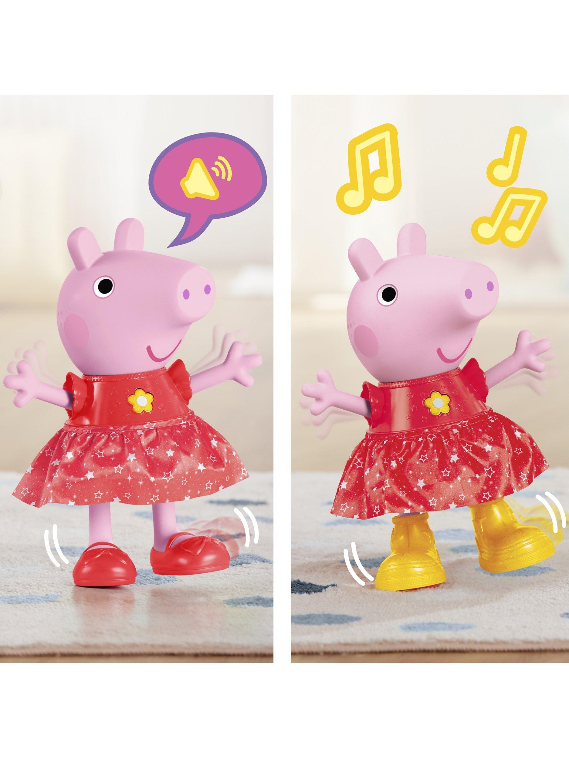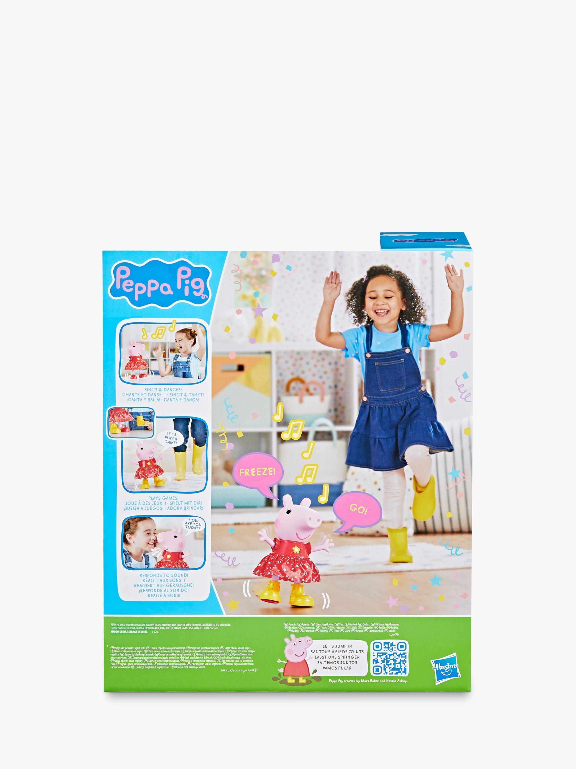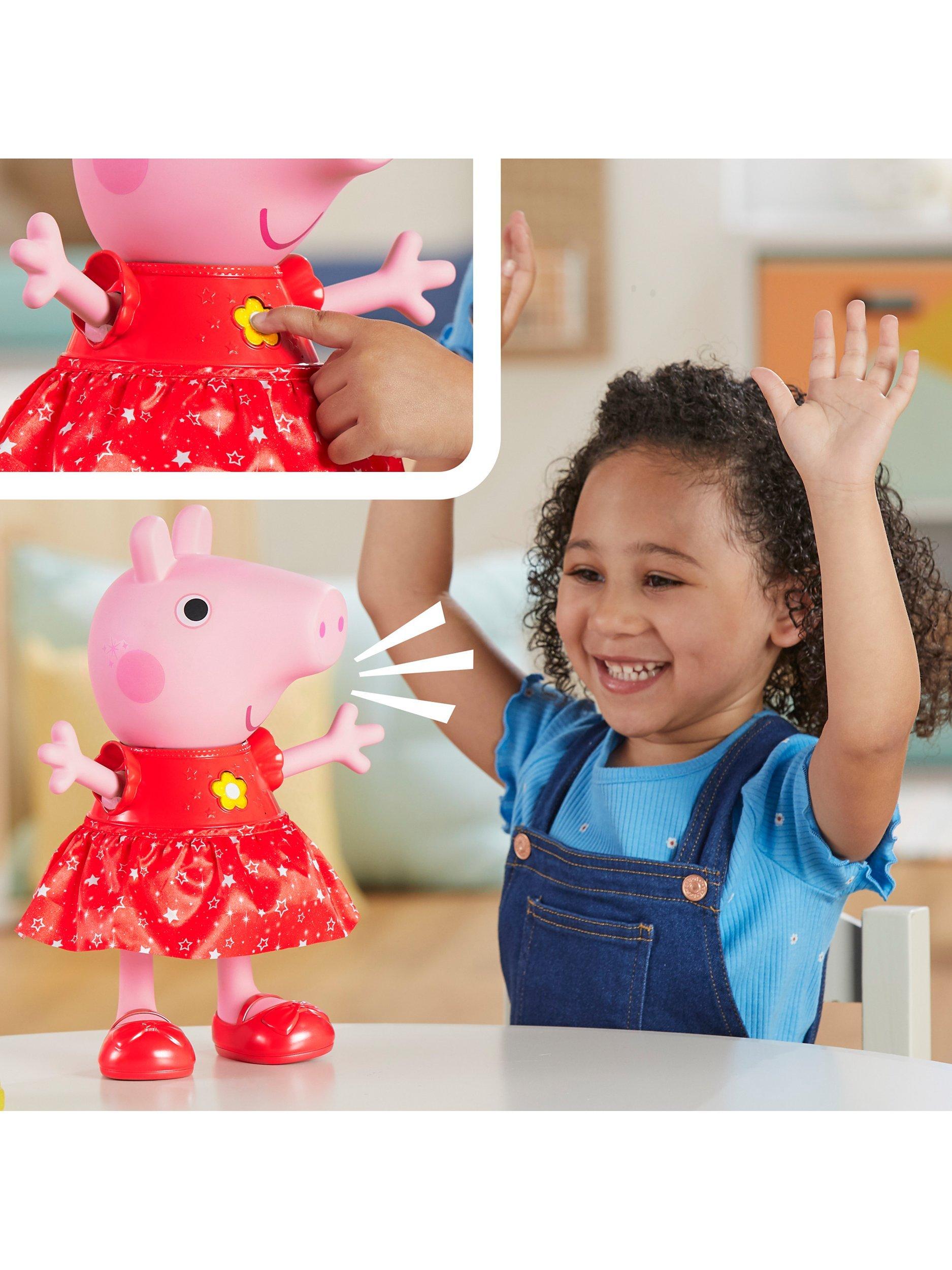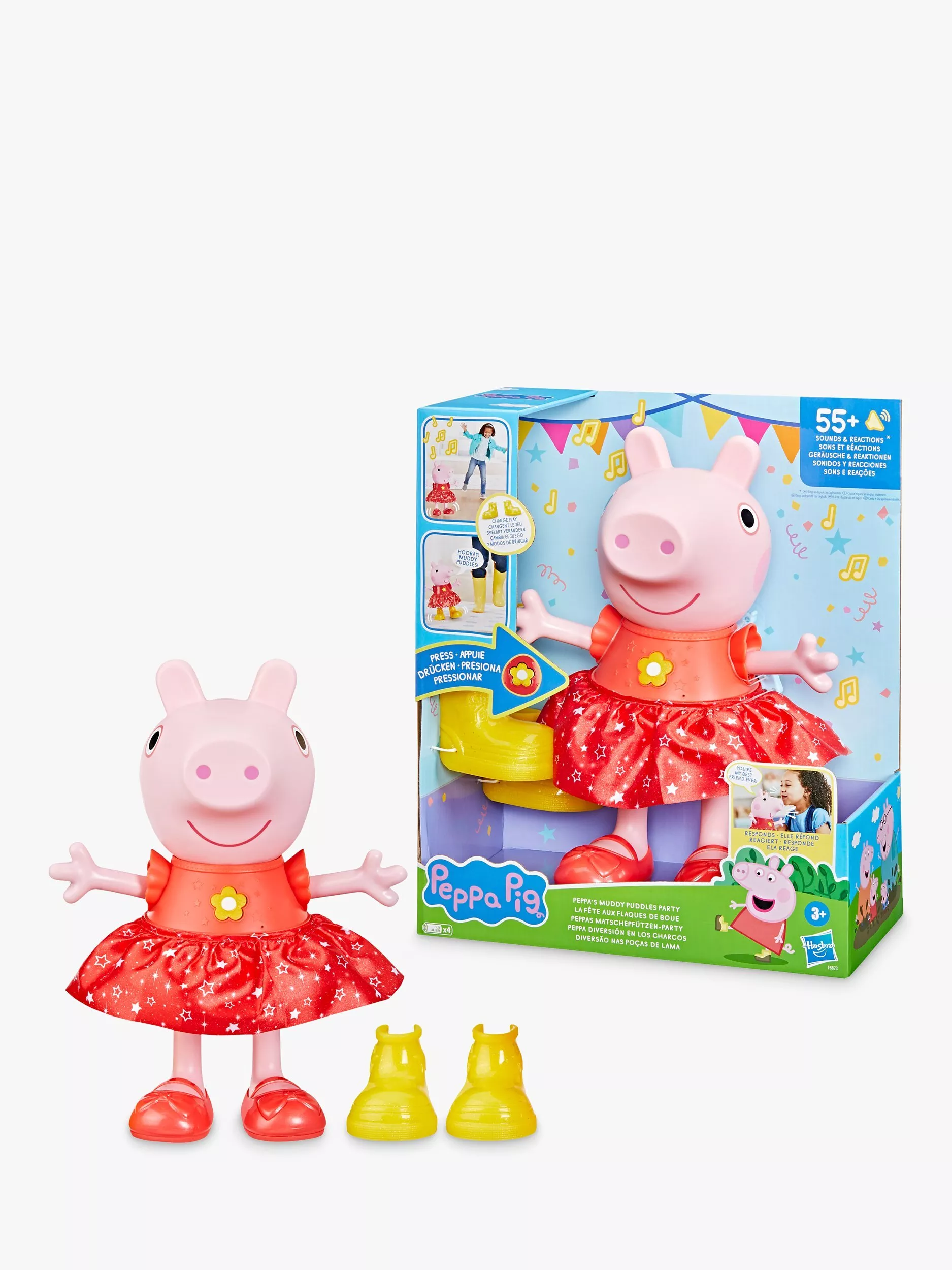 It's a Peppa Pig party, and little piggies are invited to join the fun with Peppa's Muddy Puddles Party doll! This interactive, talking, singing, dancing toy for kids 3 years and up will captivate little ones' imaginations and get them moving and grooving with their best friend, Peppa!