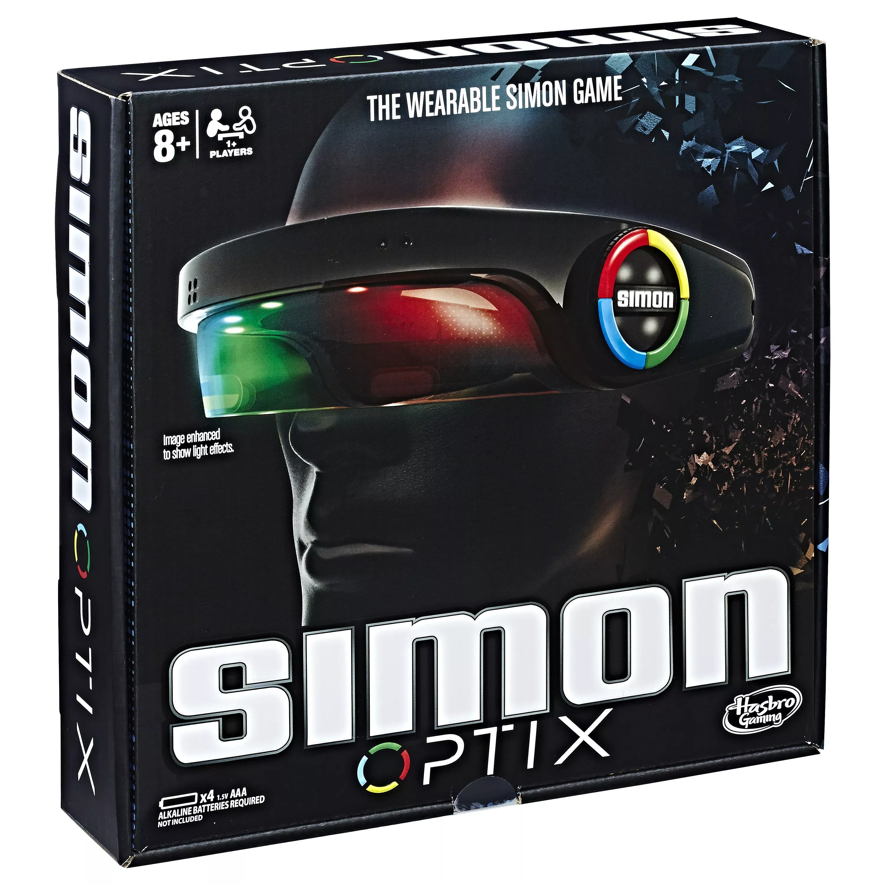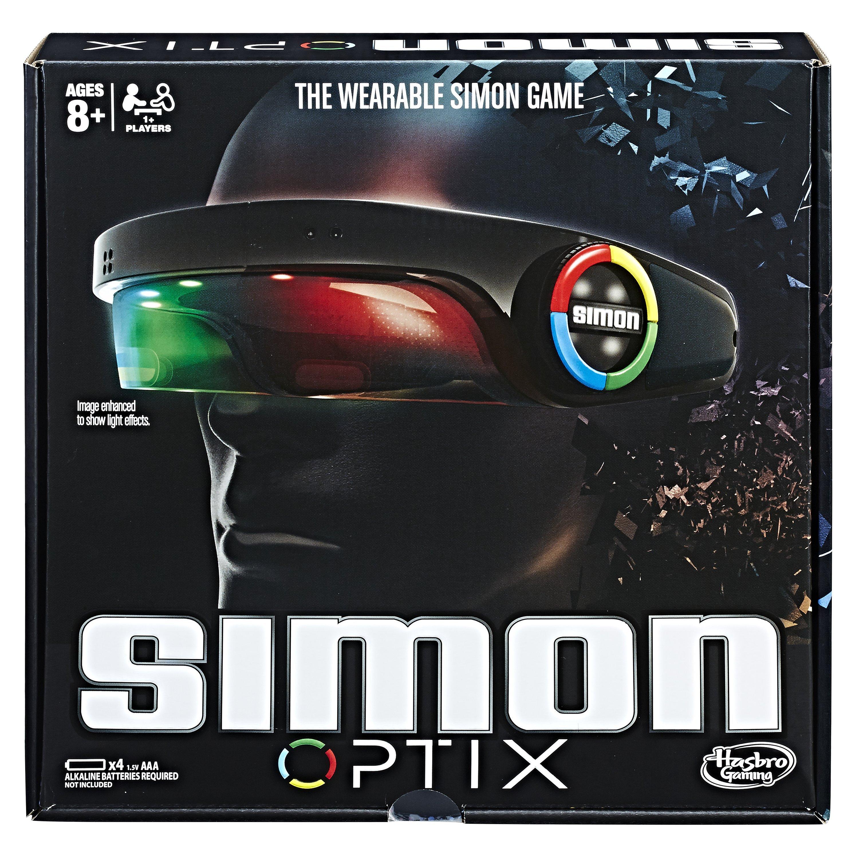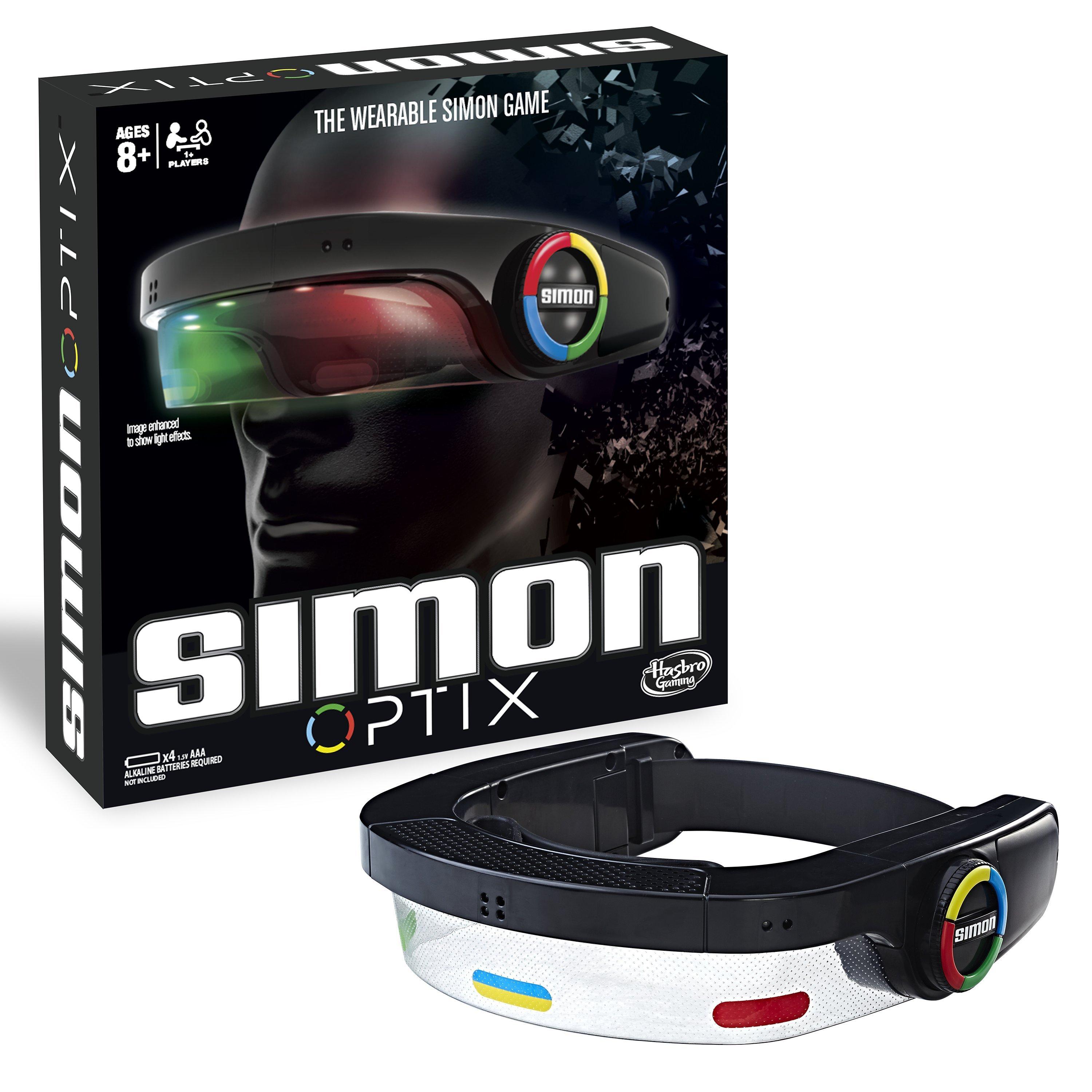 The Simon Optix game takes the Simon game to exciting new heights. Put on the headset and get ready to watch, remember, repeat! The innovative Simon Optix game is a wearable electronic game of lights and sounds in which players must repeat random sequences of lights by moving their hands in the correct order. The suspense builds as the sequence gets longer! Play solo or with friends in Sync Mode (requires additional headsets, sold separately). No matter which mode they play, kids can challenge themselves to beat their high score!