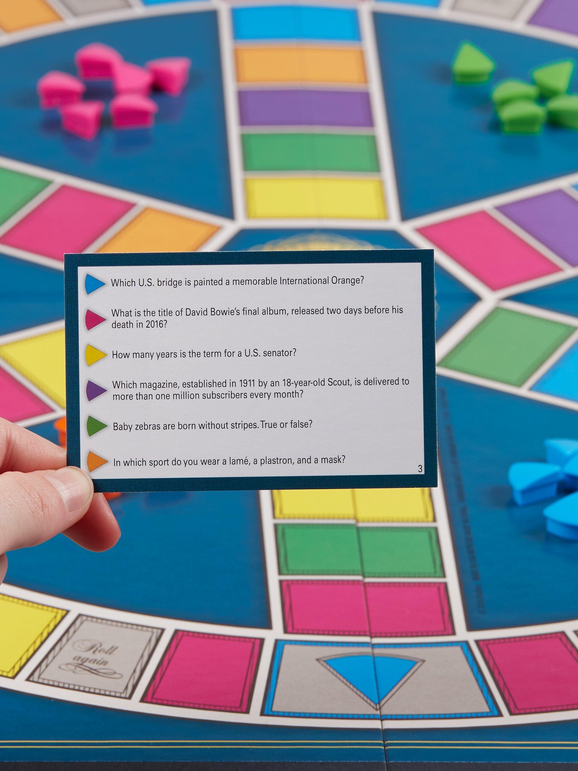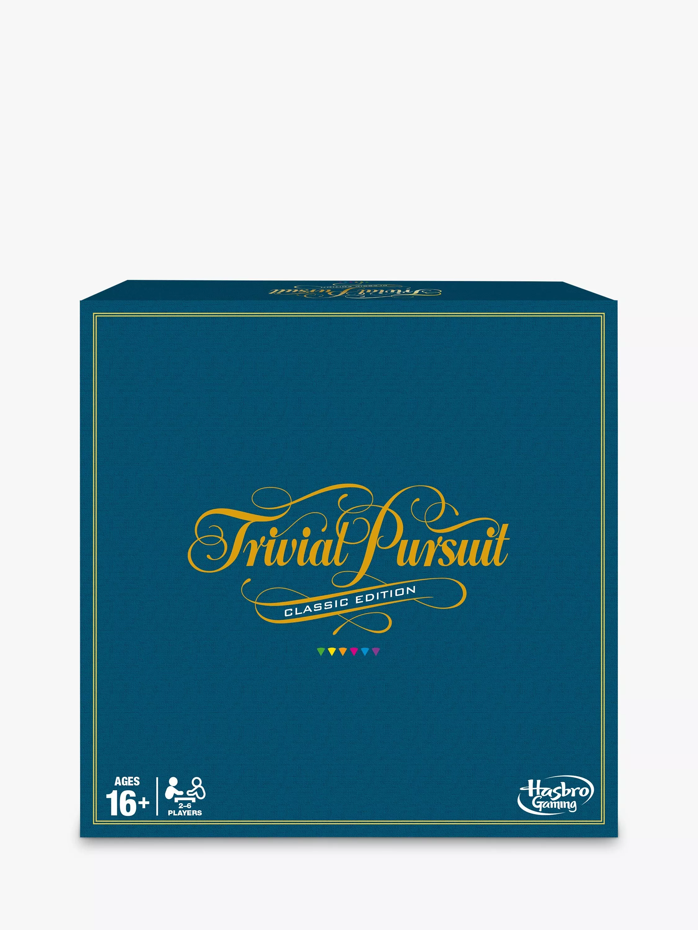 Gather your friends to play the trivia game that started It all! The Classic Edition of this Trivial Pursuit Game is the same gameplay you know and love, only with a 1980's retro appearance! Featuring classic gameplay and gameboard, this game contains 2,400 questions in 6 categories: Geography, Entertainment, History, Art and Literature, Science and Nature, and Sports and Leisure. Players move around the board answering questions. When a player lands on a category space, they'll earn the corresponding coloured wedge if they answer the question correctly.