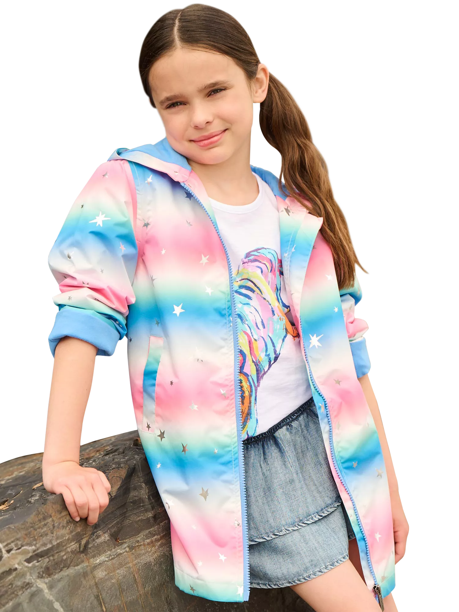 Turn dreary days dazzling with our waterproof Girls Star Glitter Swing Jacket! Crafted from polyester and designed to withstand any weather, this jacket will become a go-to for rainy days and fashion-forward outings.