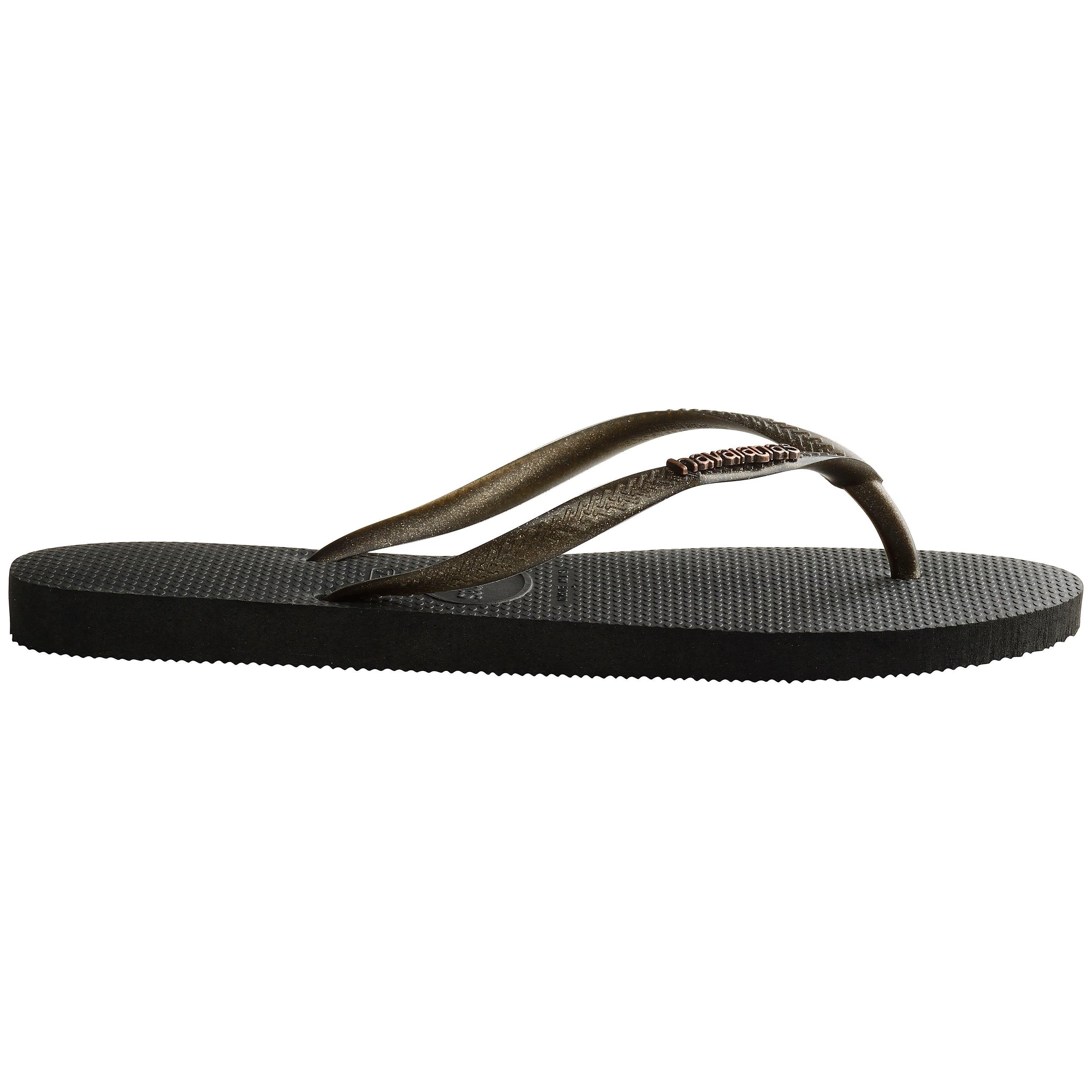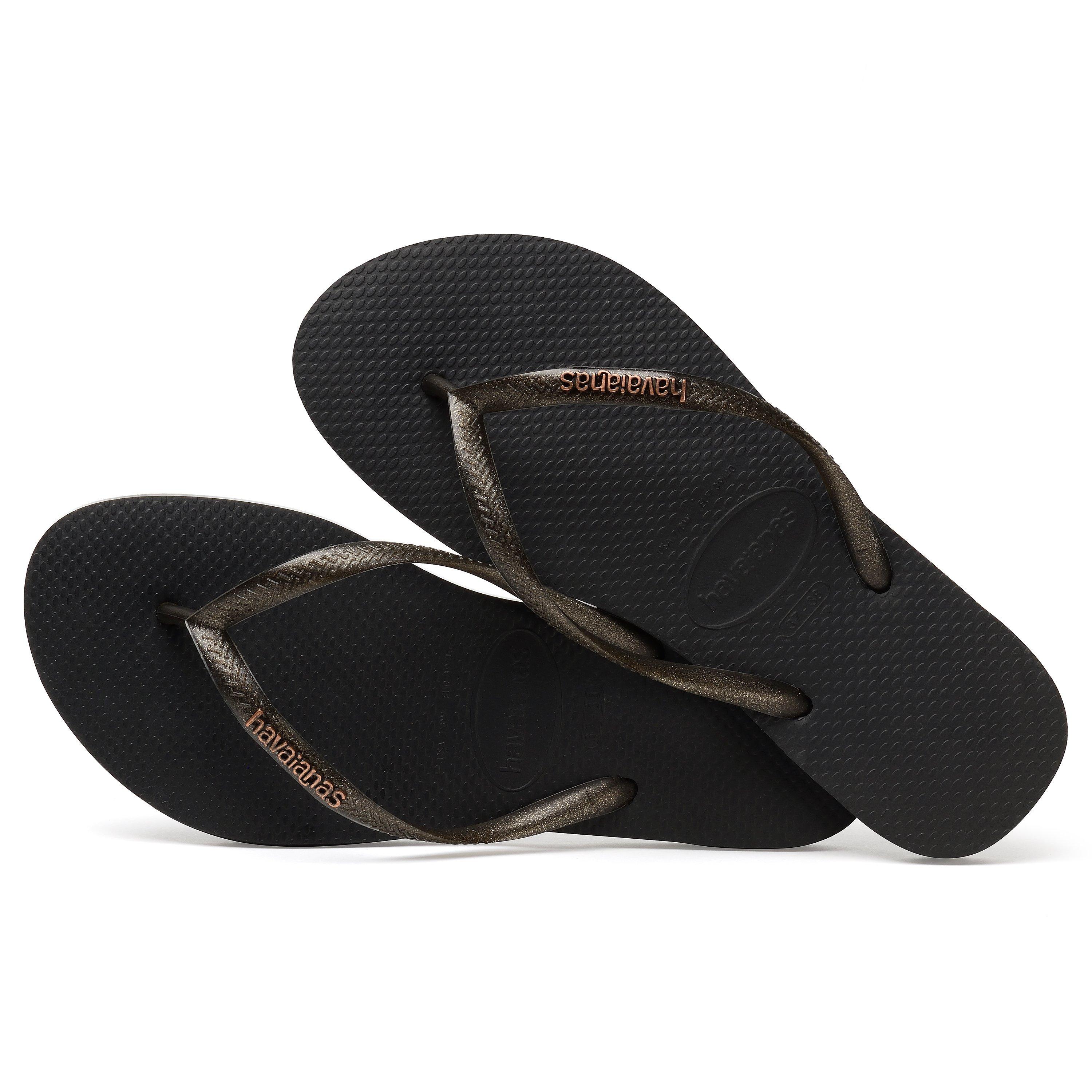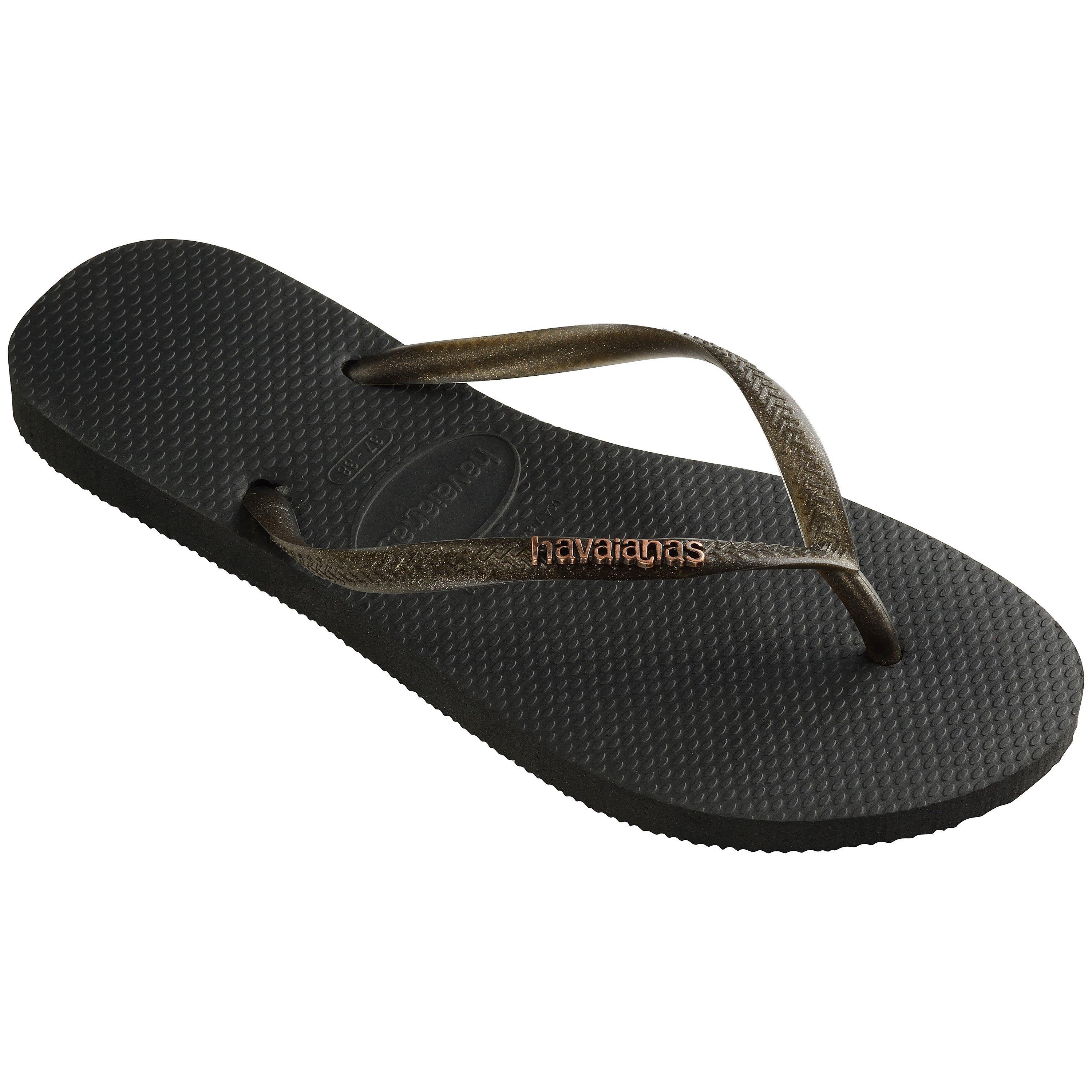 Opt for unprecedented comfort during the warmer months with these Slim Logo flip flops from Havaianas. Featuring a slim fit with a classic toe post design, sleek straps boasting a Greek key pattern and a rice grain pattern on top of the sole.