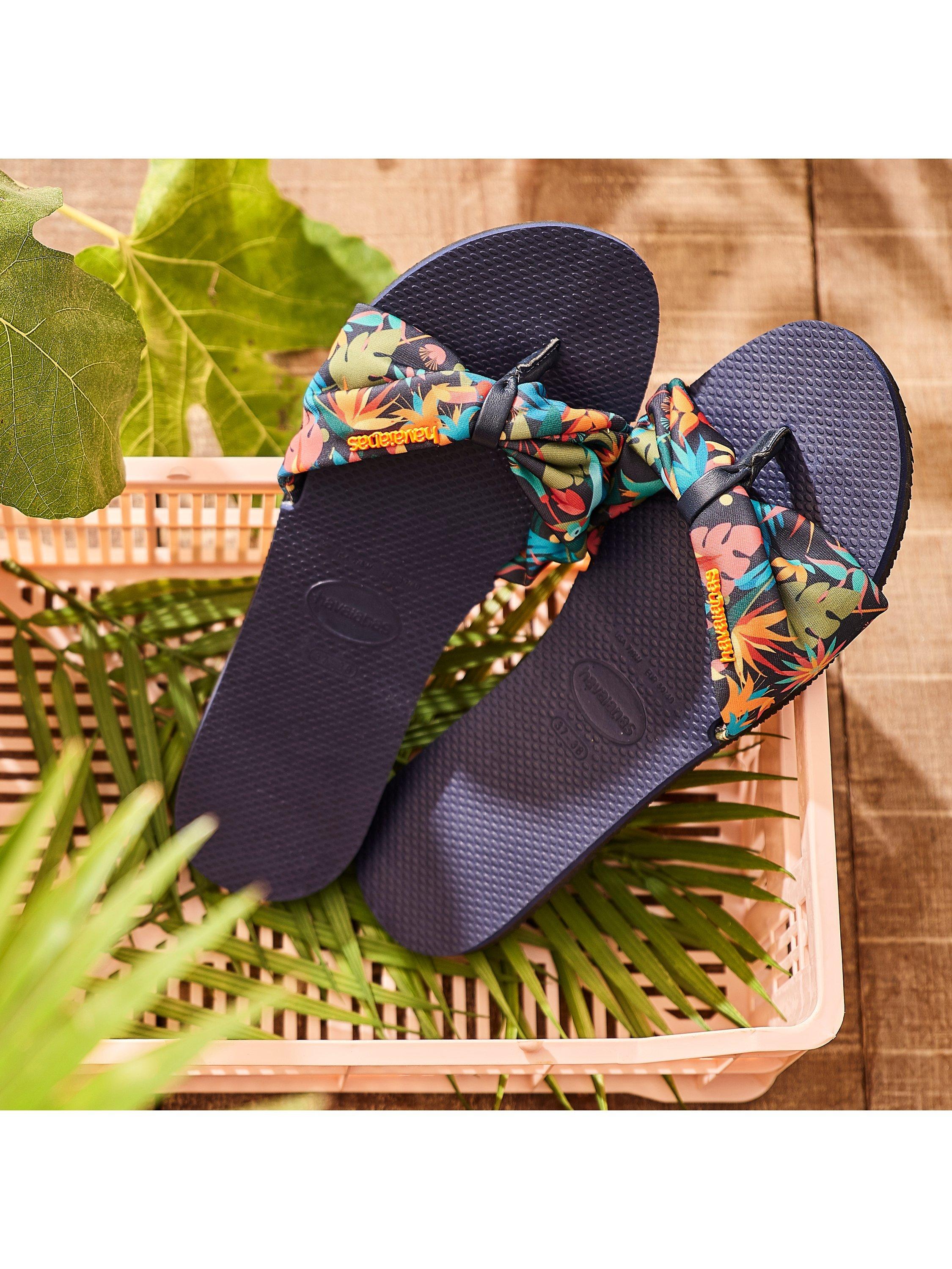 The Saint Tropez model is designed to be worn beyond the beach. A sophisticated style, that is also super comfortable. The bow-shaped upper is flattering on the foot, and the colourful prints and fabrics give you plenty of pedicure options!