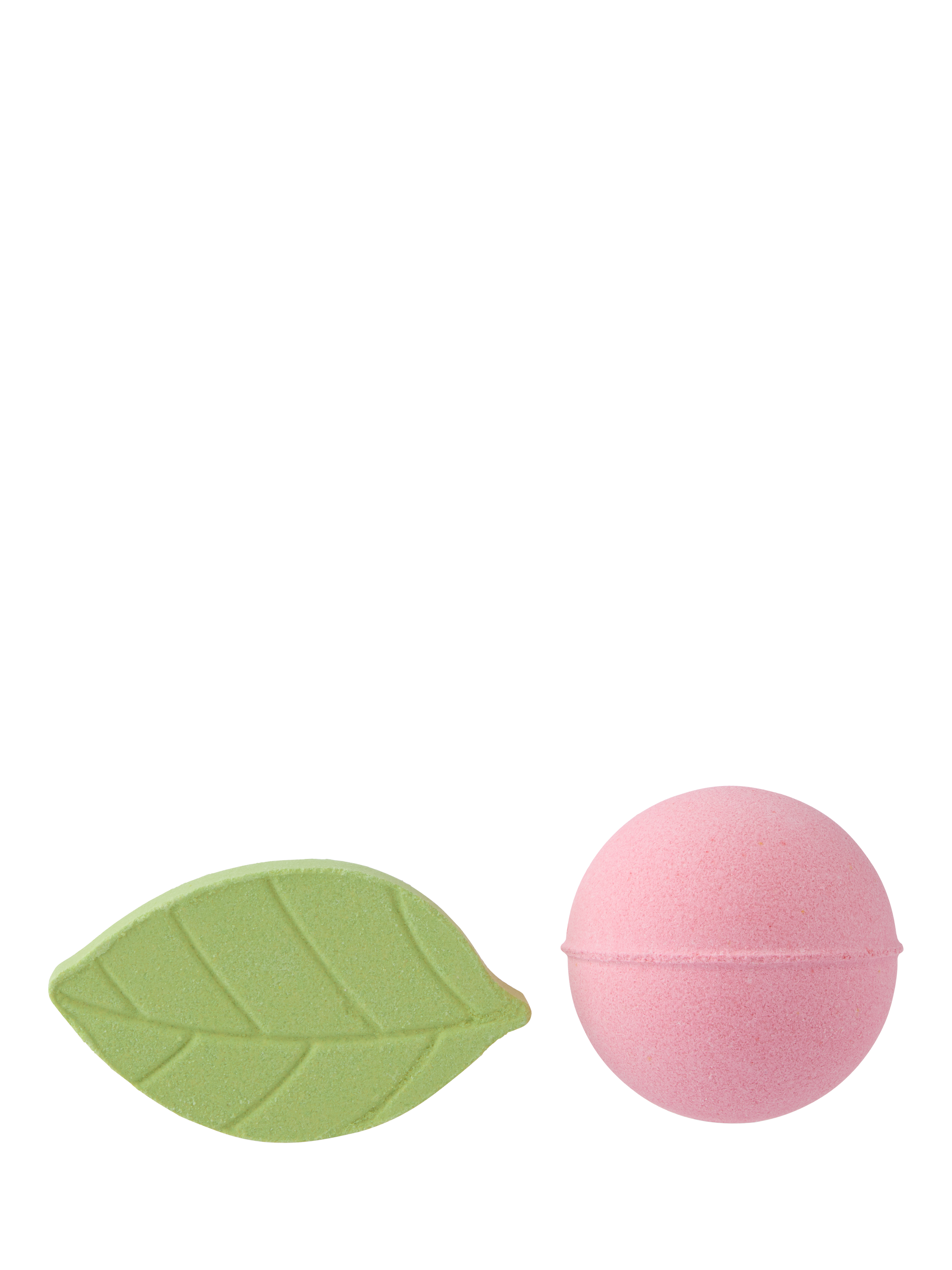 There’s a round, pink bath bomb and a smaller leaf shaped one. Two fragrant fizzers for two relaxing bathtimes. Pure, sweet pea magic is just moments away.