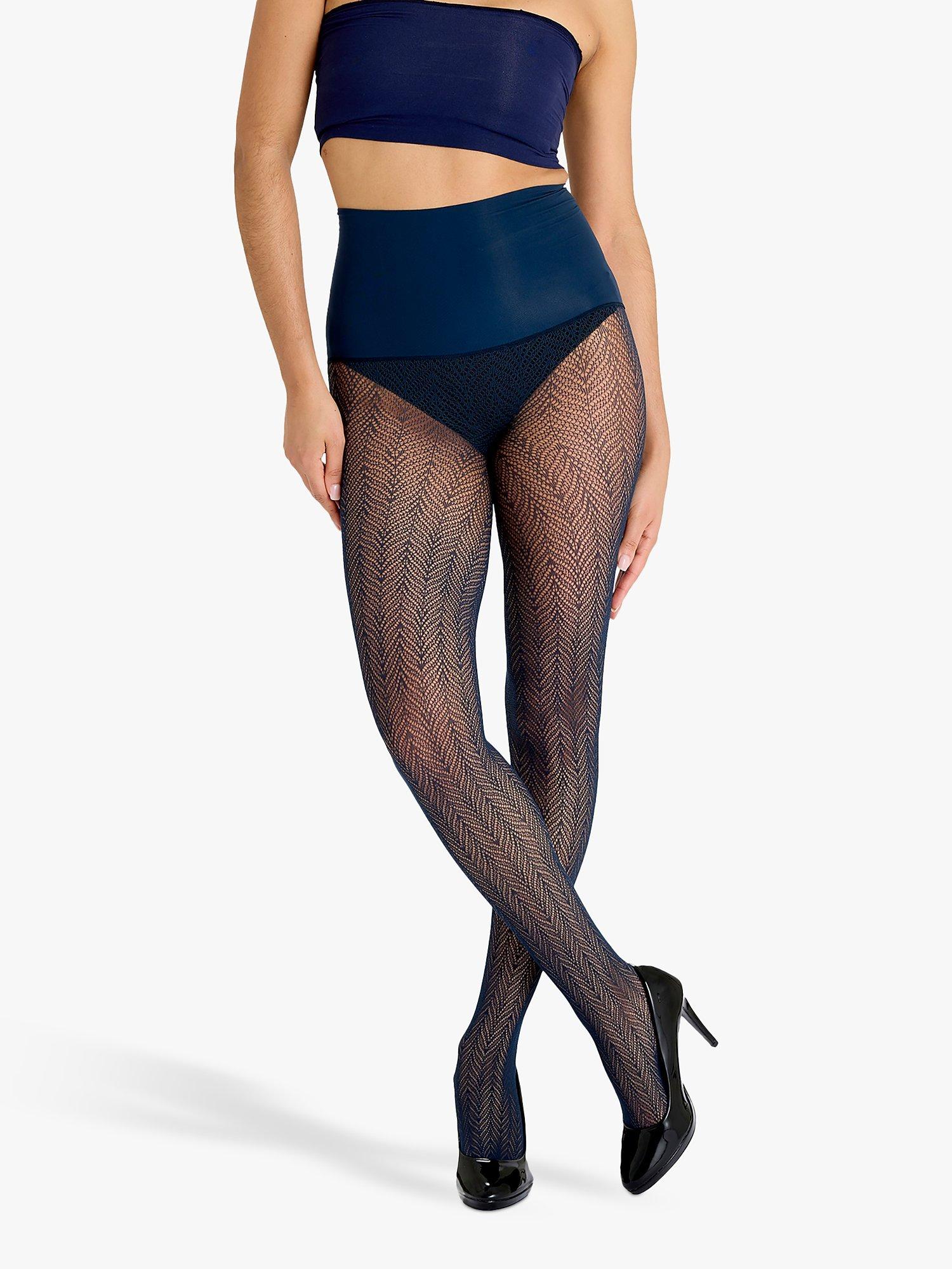 HeistHerringbone Fishnet Tights, Midnight Navy