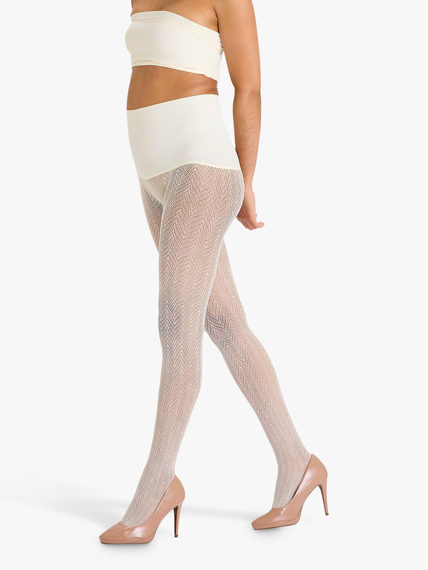 The must-have design of the season. These statement herringbone fishnet tights help to elongate the legs. Flattering and easy to wear from day to night. Made from a sustainable recycled yarn that combines softness with strength and our high-waist design for ultimate comfort.