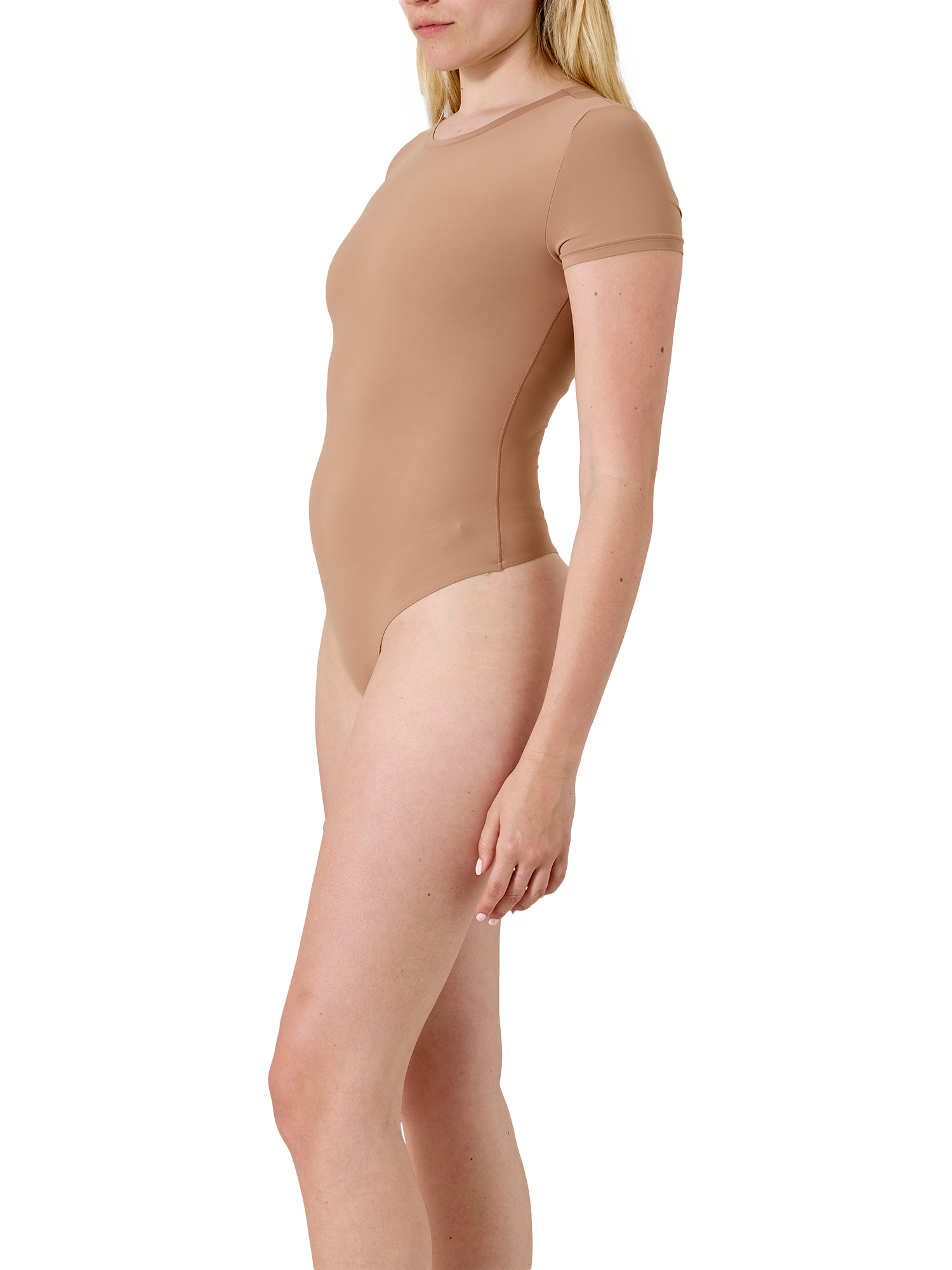 Ultra soft, double-layered fabric gives way to a beautiful T-Shirt Bodysuit silhouette, that moves and feels like a second skin. The simplicity and versatility of this core Bodywear essential make it ideal for wearing as a base layer in colder months, but also as a key foundation piece for any wardrobe.