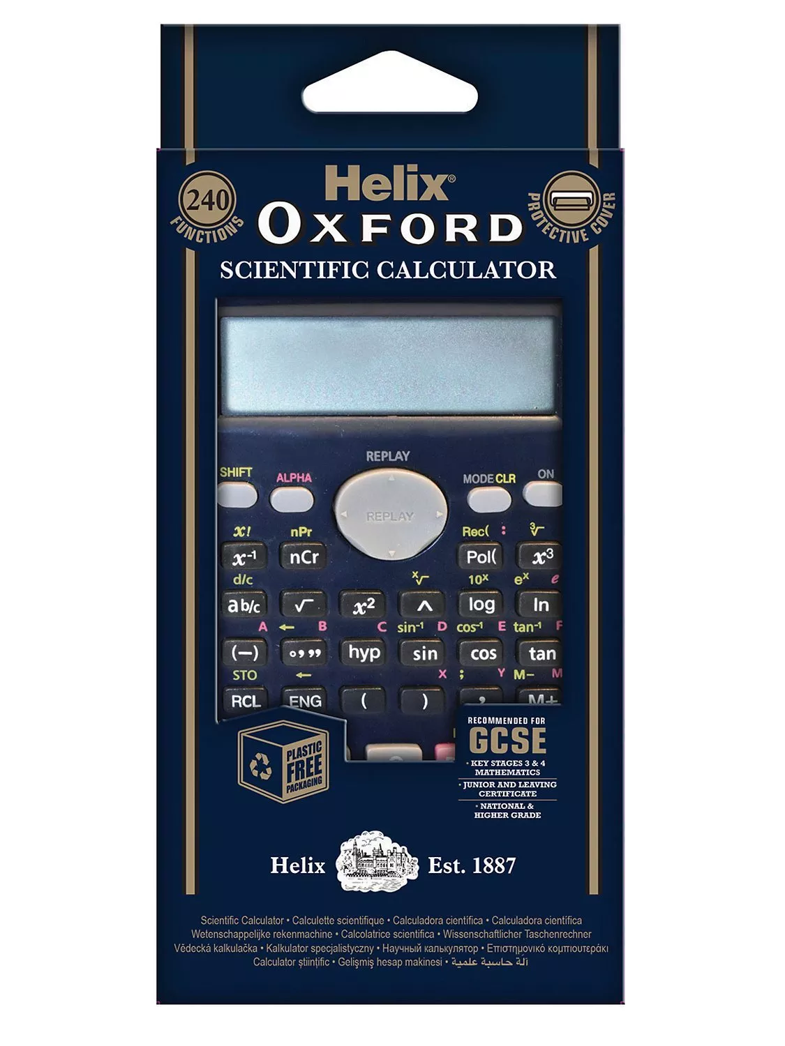 Suitable for basic and scientific calculations. Ideal for both key Stage 3 & 4 Mathematics. The two-line display makes it possible to view both the calculation formula and its result at the same time. Features: 240 functions, 2 line large display, Shows 10 digits + 2 digit exponents, Auto power off. Hard protective sliding cover, Durable, plastic keys, and replaceable batteries (2 x LR44)