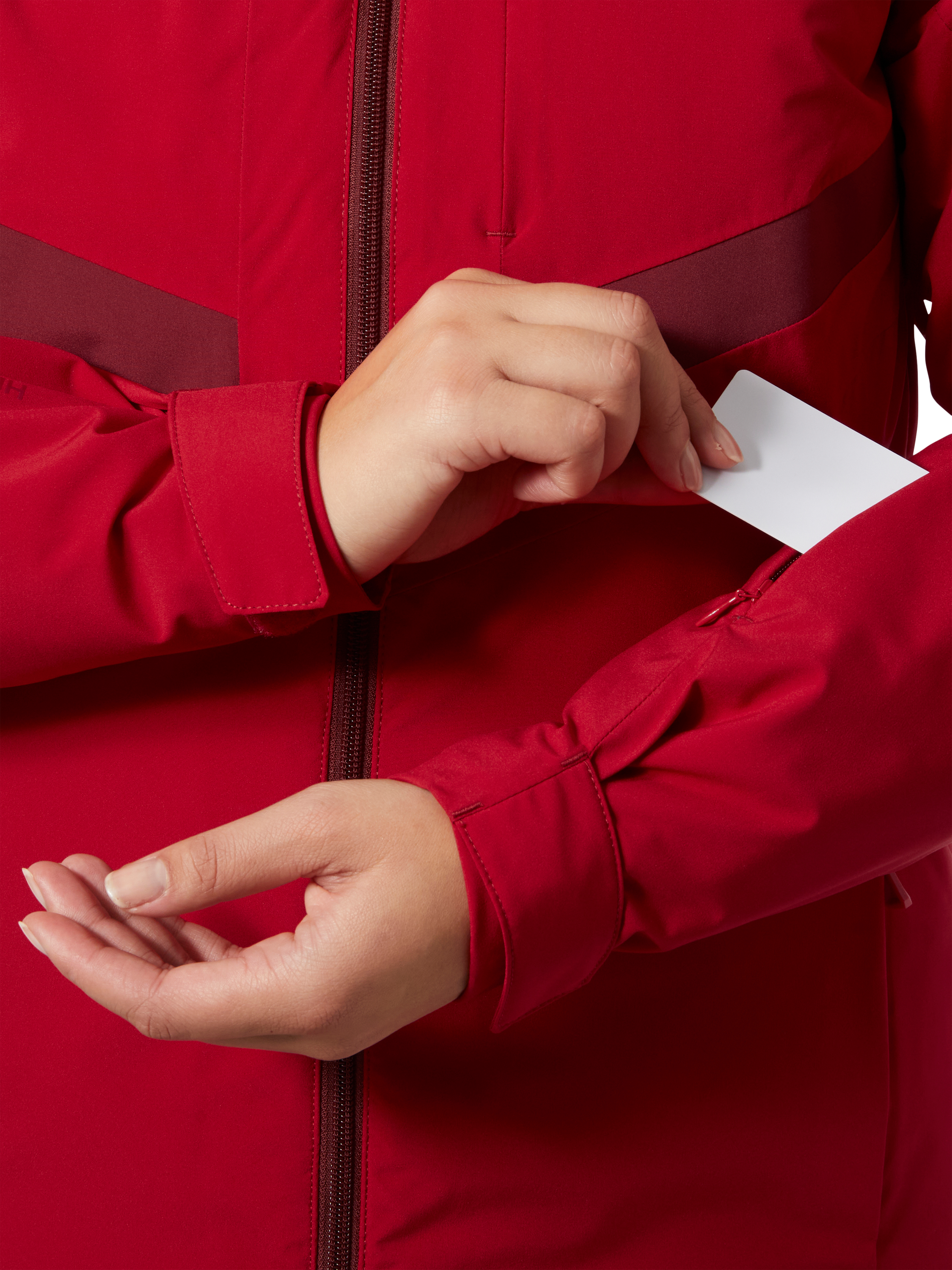 Hit the slopes with protection and style in the refreshed Edge 3.0 Ski Jacket. It’s built with waterproof/breathable and windproof HELLY TECH® Performance technology and features blowable insulation for efficient warmth. A chest pocket with a low-profile zipper gives this jacket a streamlined look. Handy ski features include RECCO® safety reflectors, a LIFE POCKET™ to preserve phone battery in the cold, an adjustable powderskirt, and a ski pass pocket. Wrist gaiters and ventilation zips enhance comfort and functionality on each run. This jacket is a certified bluesign® product.