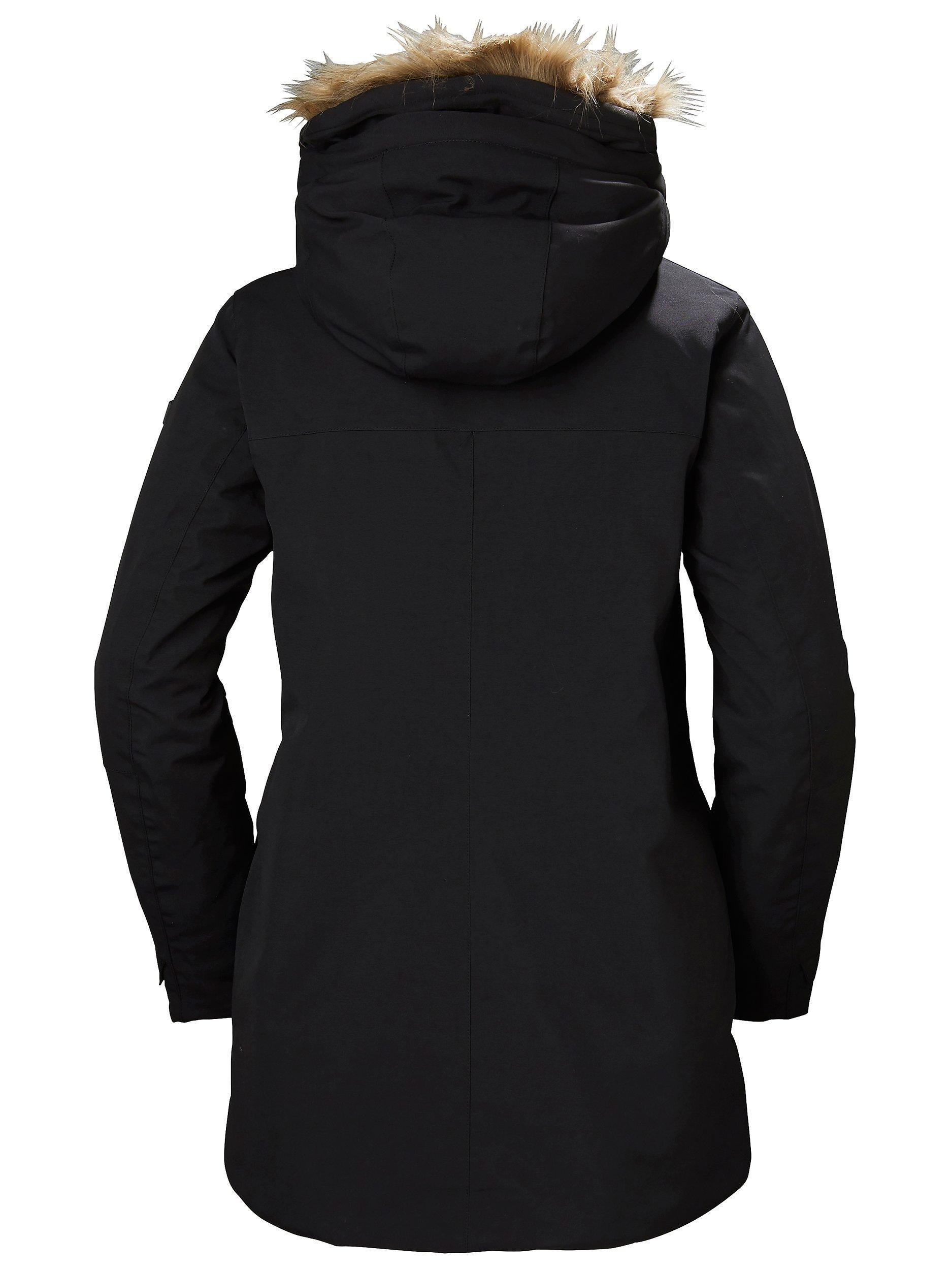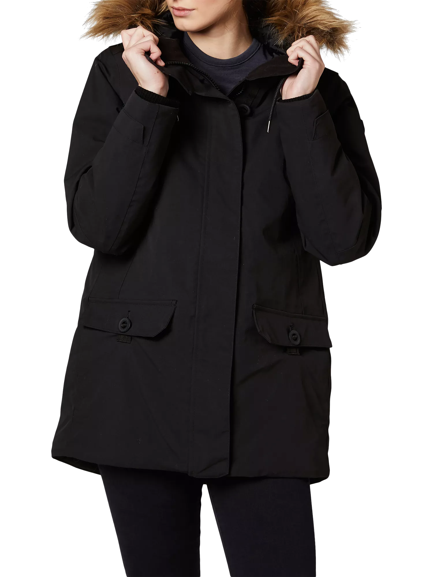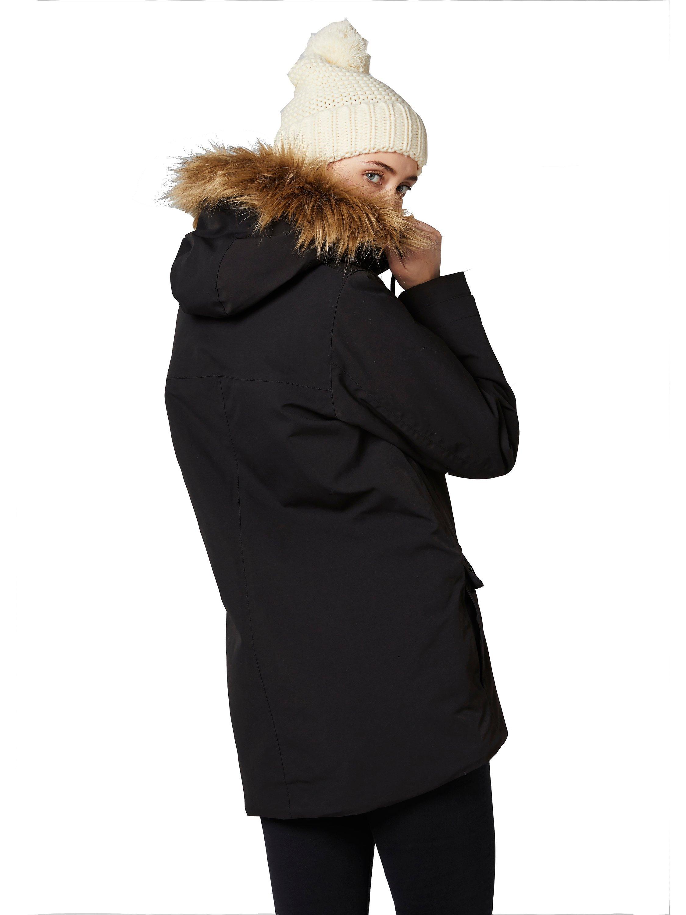 - Adjustable hood with zip-off faux fur