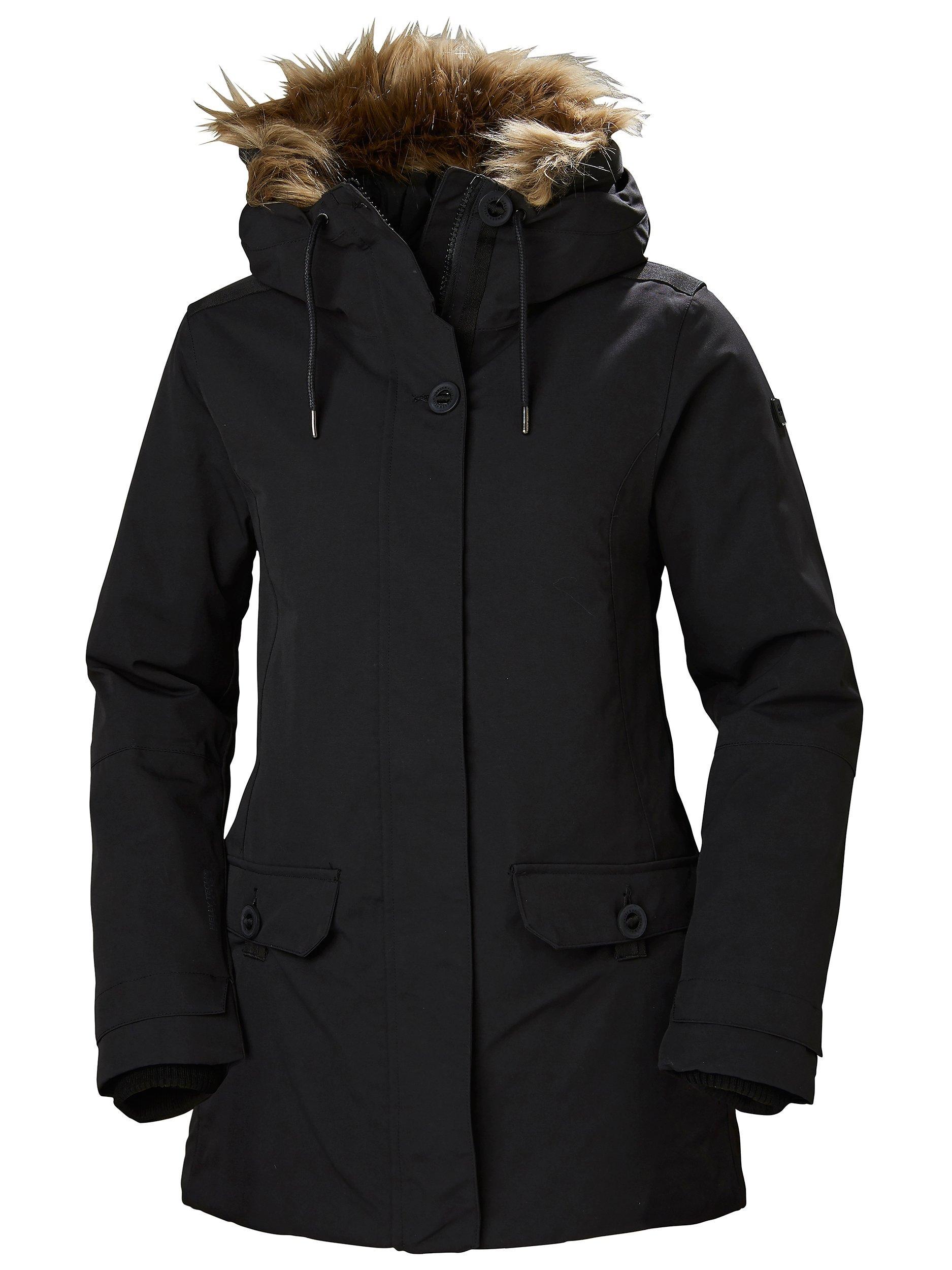 Stylish as well as functional, this coat has a detachable faux-fur trim on the hood and features warm Primaloft® Black Eco insulation to trap body heat.