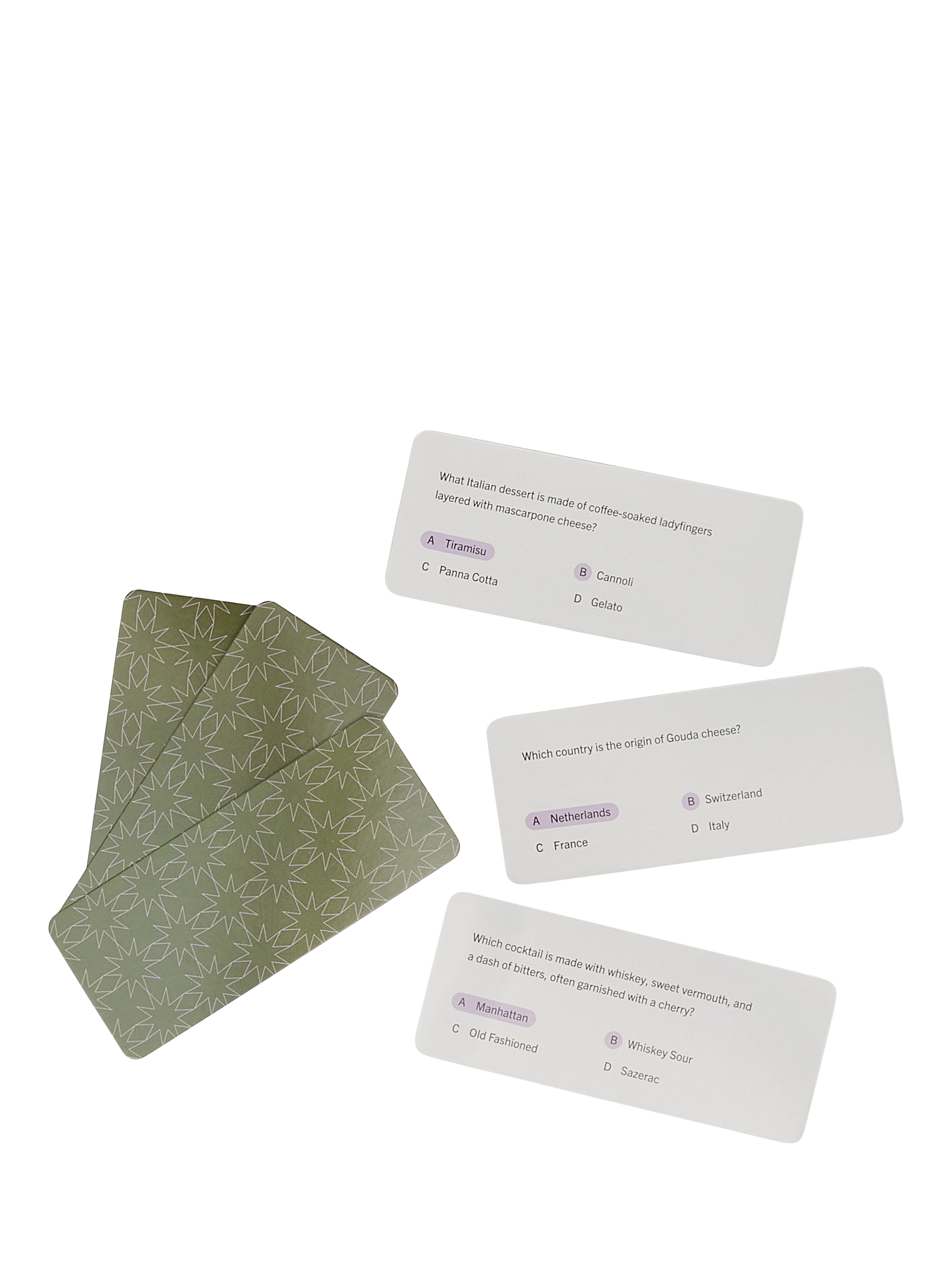 How good is your general knowledge? Challenge friends and family with a wide range of topics. This cocktail hour trivia game is great for solo or group play.