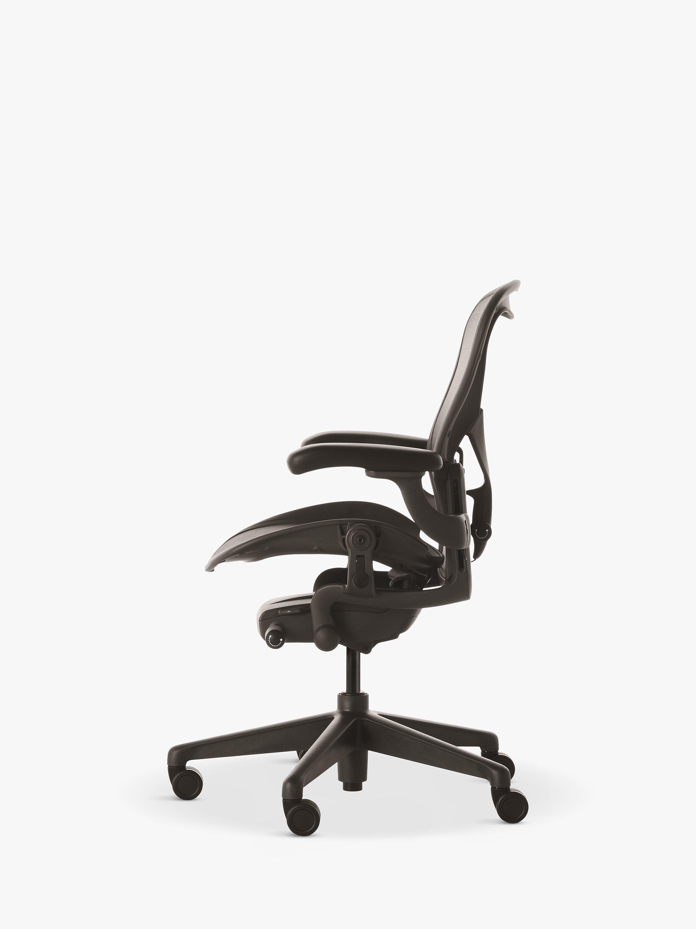 Herman Miller's Aeron office chair is designed to meet the needs of today's work, workers and work environments. Co-designed with industrial designer Don Chadwick, and using the latest research around the science of sitting, this innovative and ergonomic chair fully accommodates the widest possible range of activities and postures people adopt while working. The chair back and seat are linked, and tilt simultaneously at different ratios as you lean back to provide responsive support for your lower back. It's also easily adjustable, from intense forward-facing focus to a more relaxed, contemplative recline.