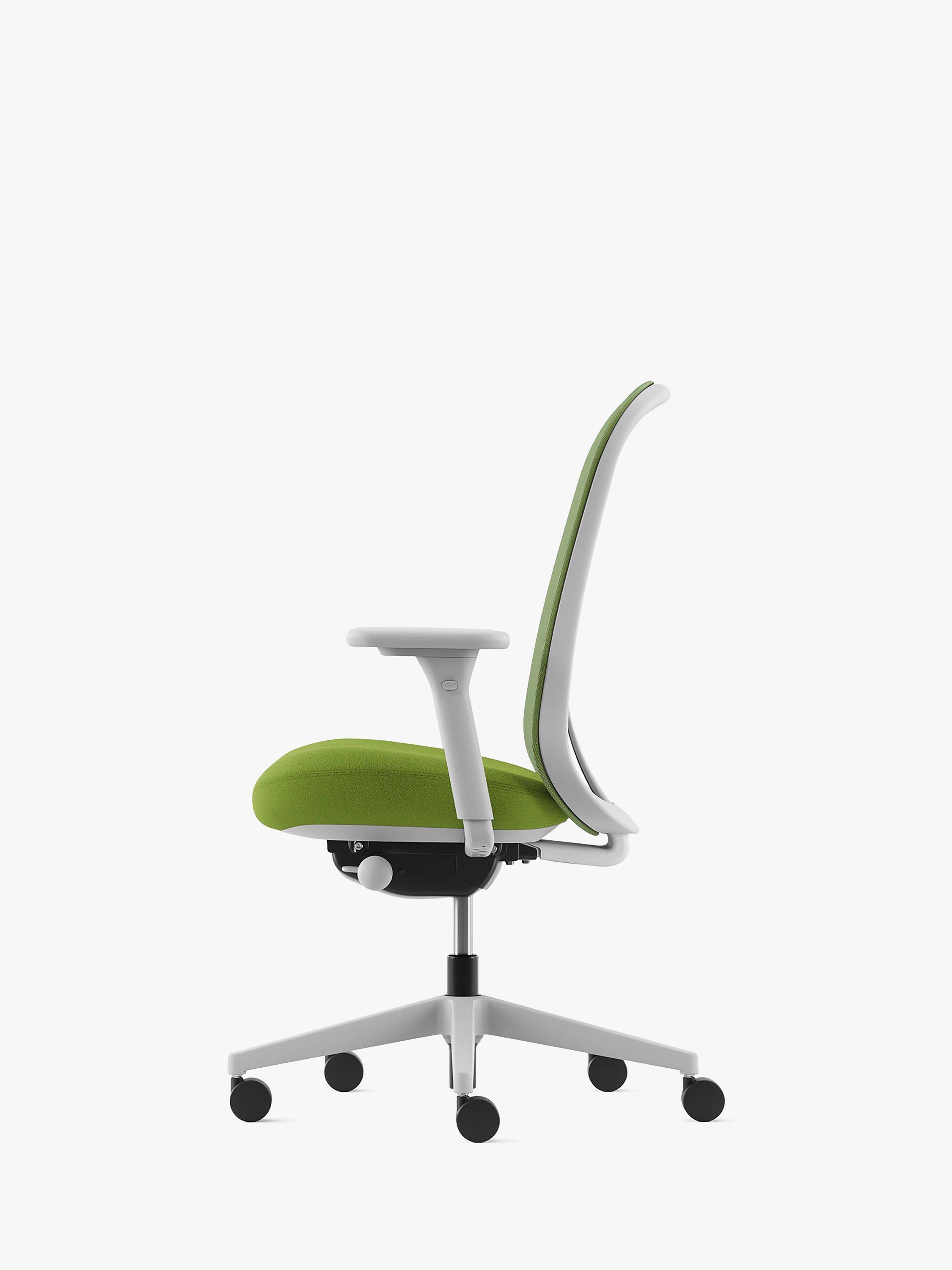 A fully synchronised tilt in the backrest enables balanced motion through a range of posture changes, so this chair tailors itself to each user. The seat swivels and is height-adjustable and the armrests can also be adjusted in height. The castors are also suitable for all floors and offer smooth, easy movement around your workspace.