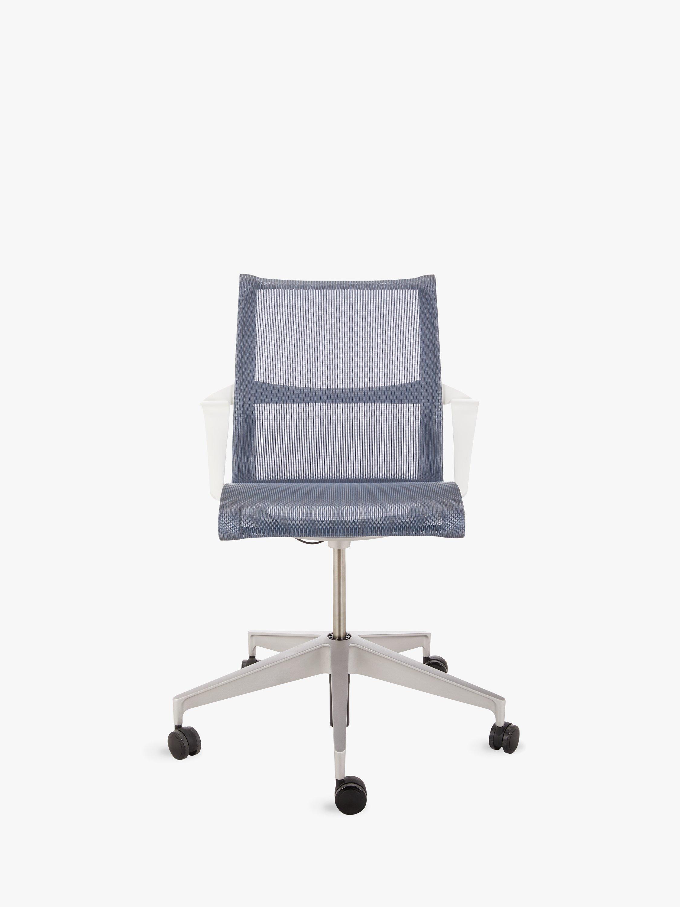 With a number of awards, including Best Sustainable Design Solution, the Setu chair provides comfort for any situation. The Kinematic Spine bends and flexes as you do, while the elastomeric fabric conforms to your contours to keep you comfortable and supported. Rather than having adjustment levers, Setu enjoys a buoyant design that allows it to move and conform to your body simply by responding to your weight as you sit.