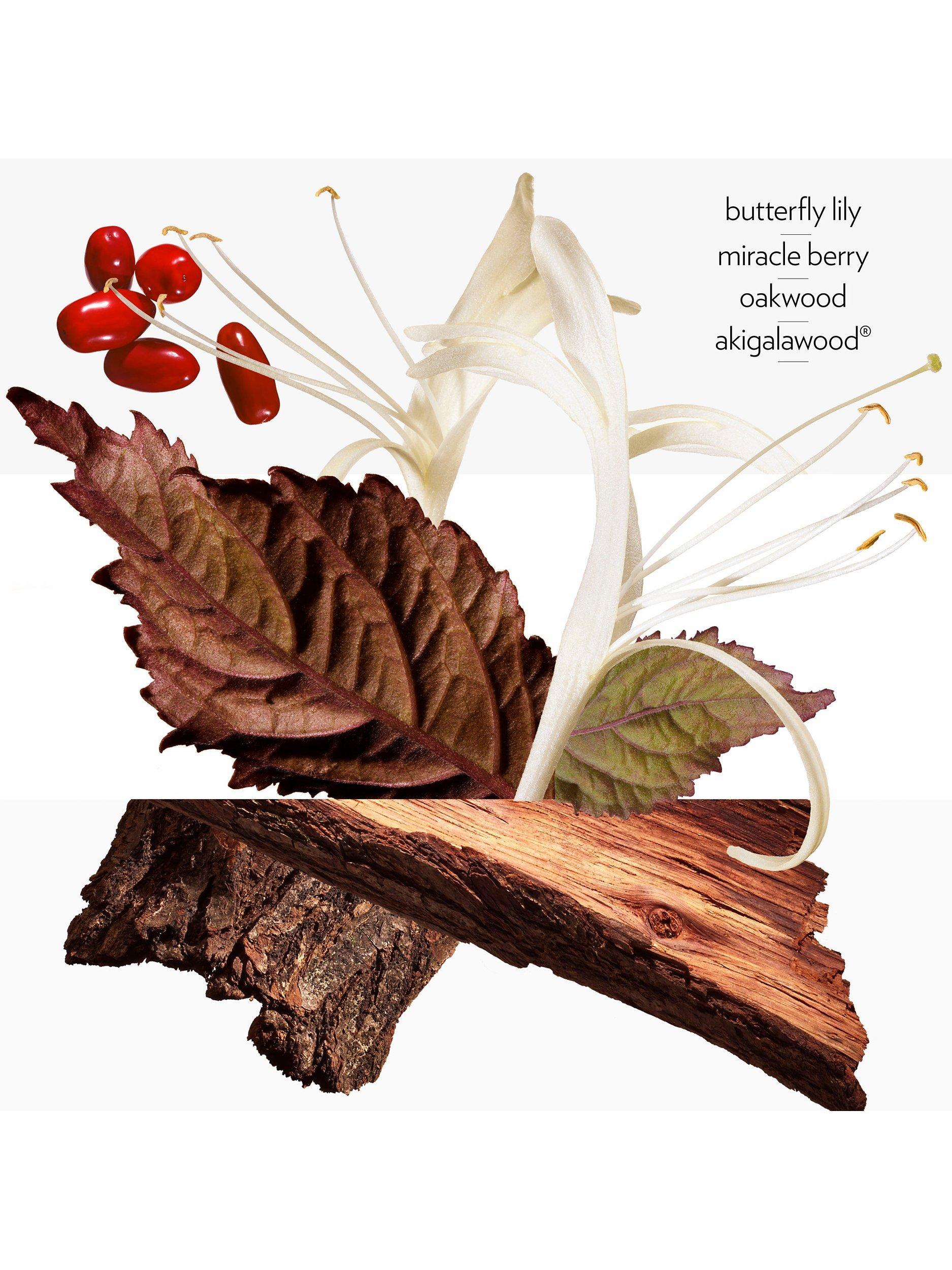 The intoxicating signature of the butterfly lily is intertwined with the delicacy of the miracle berry. The warm trail of oakwood and the depth of patchouli underline the magnetic uniqueness of the composition.