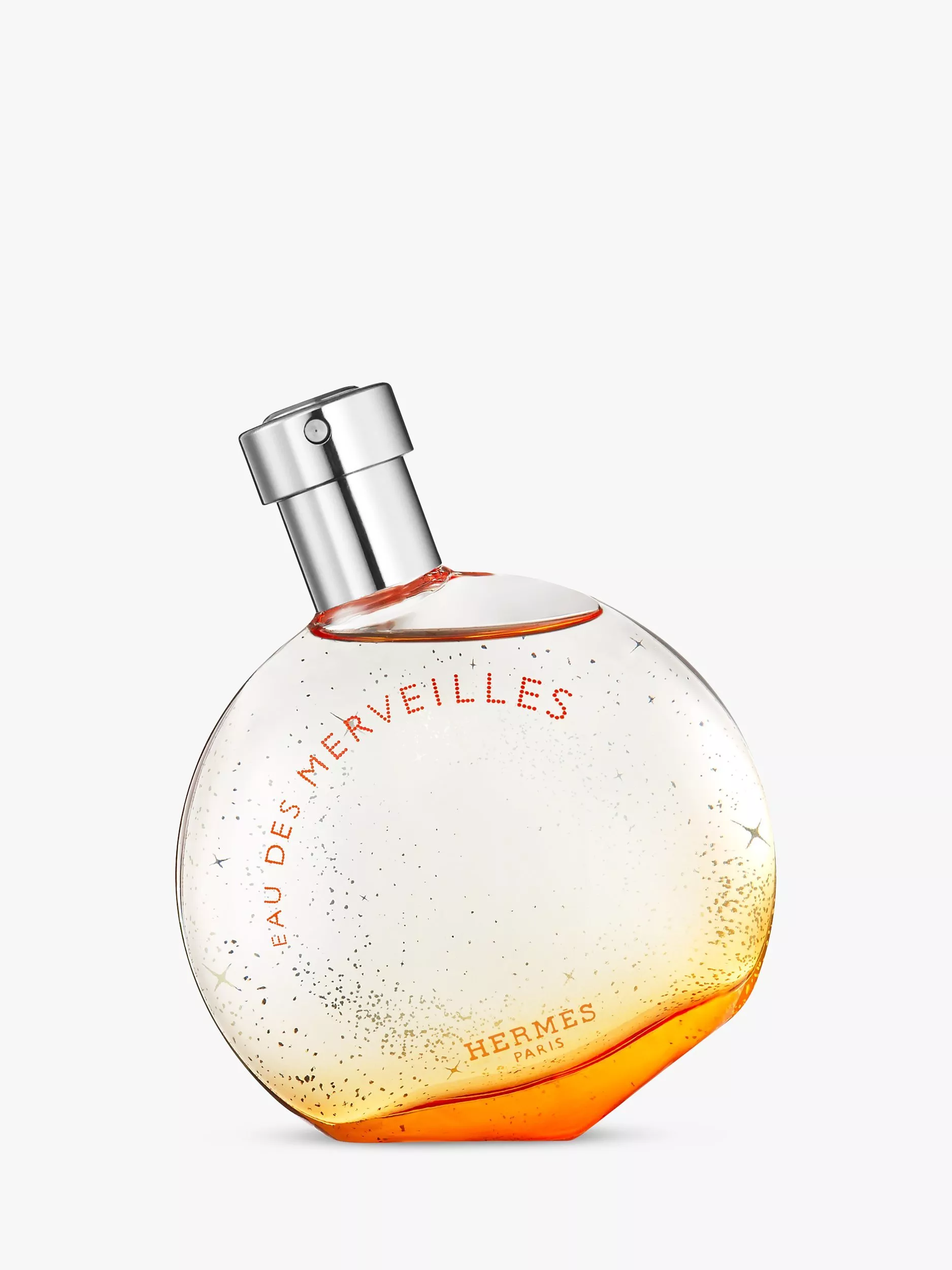 Designed by Serge Mausau, the star-spangled magnifying-glass bottle twinkles with an orange light. The cap is engraved with the house’s seal, the “clou de selle”.