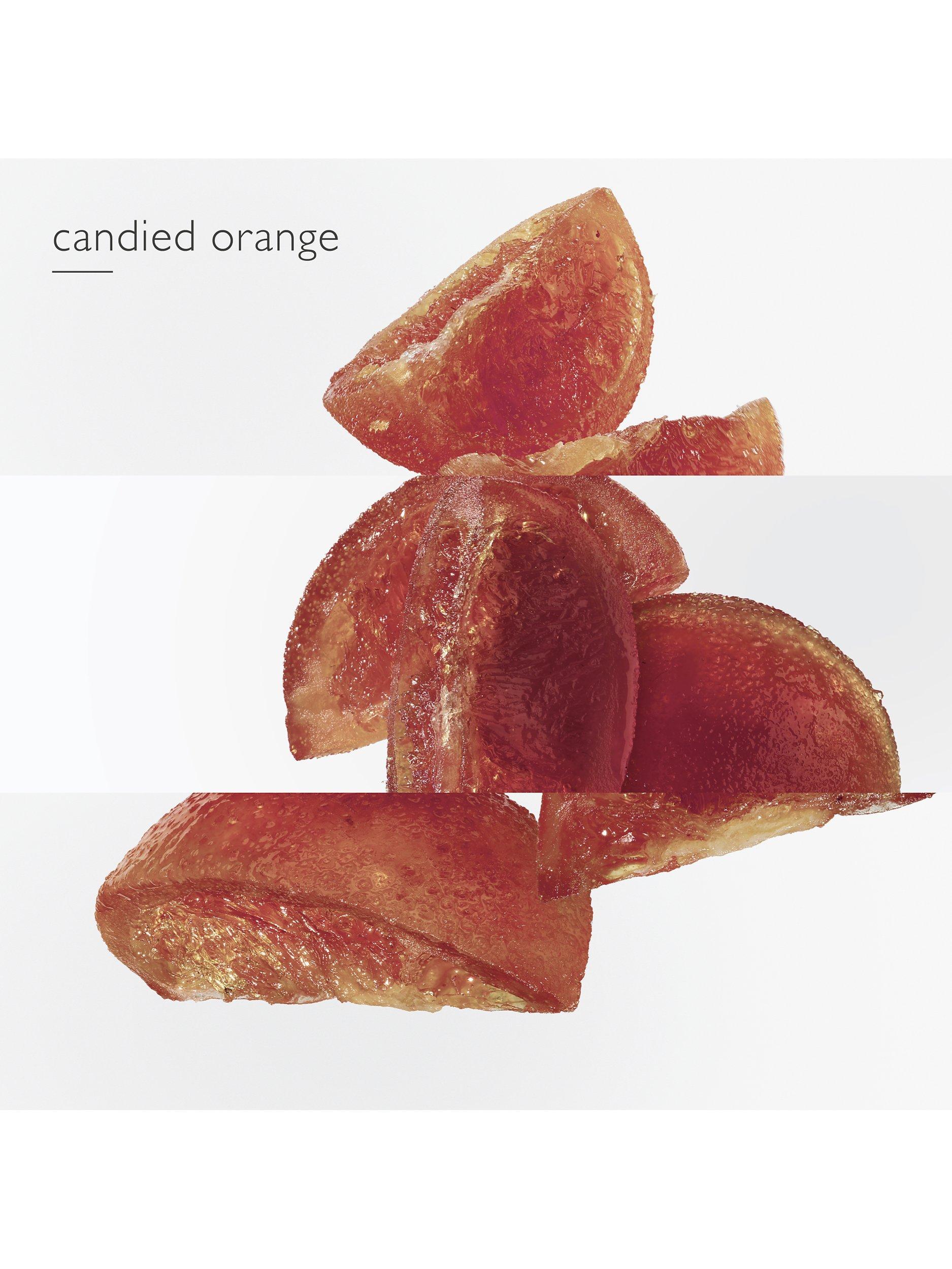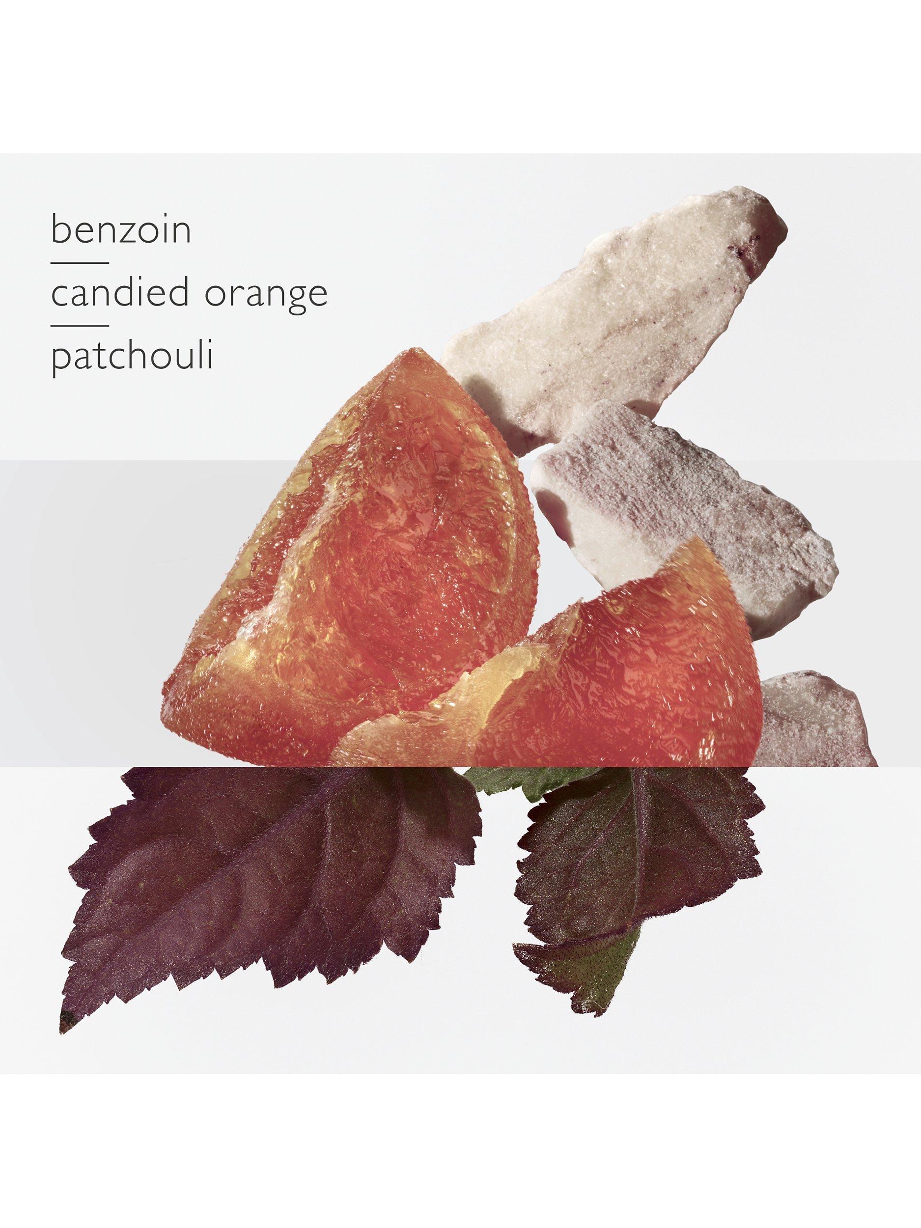 With a woody and amber fragrance, the Eau de Parfum combines gourmet candied orange, enveloping benzoin and deep patchouli.