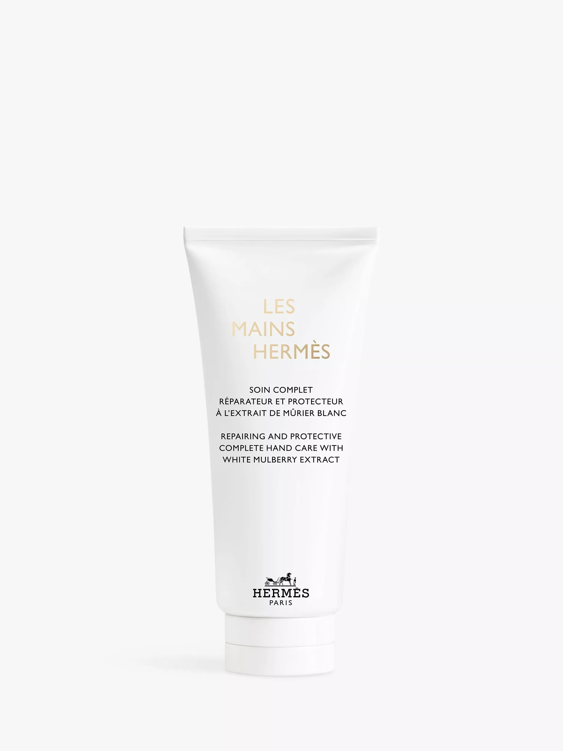 Les Mains Hermès repairing and protective complete hand care cream has a balm-like texture that hydrates the skin without greasiness for exceptional everyday care. Its tube, which is pure and refined in design and generous in size, allows you to take care of your hands wherever you go and whatever the season.