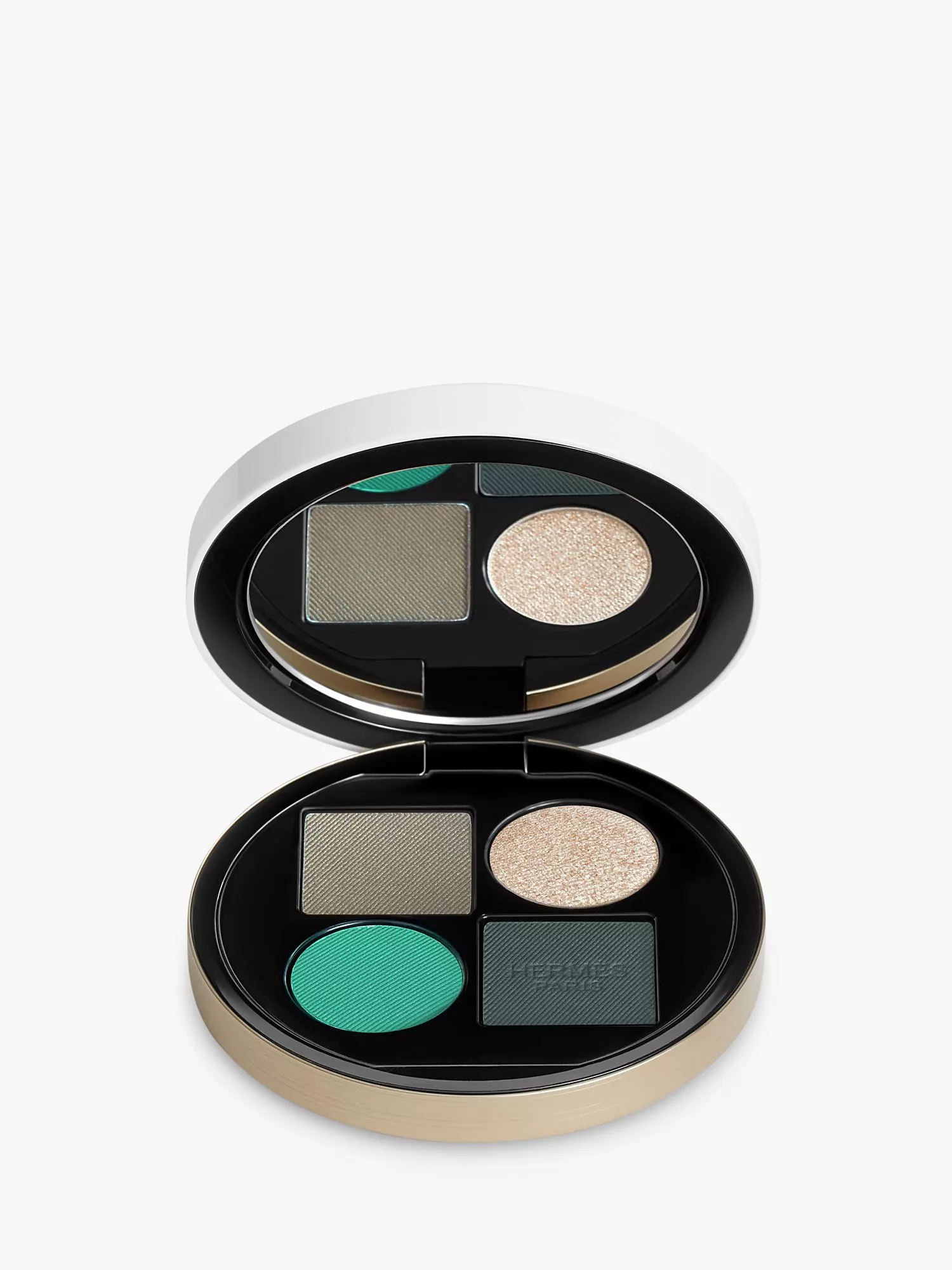 Six colour palettes offer multiple possibilities of expression for a natural, intense, and sophisticated look. Each quartet is composed of a graduated trio of powders enlivened by a fourth, stronger and more surprising colour. All can be used alone or combined to create a subtle harmony or blend of shadows.