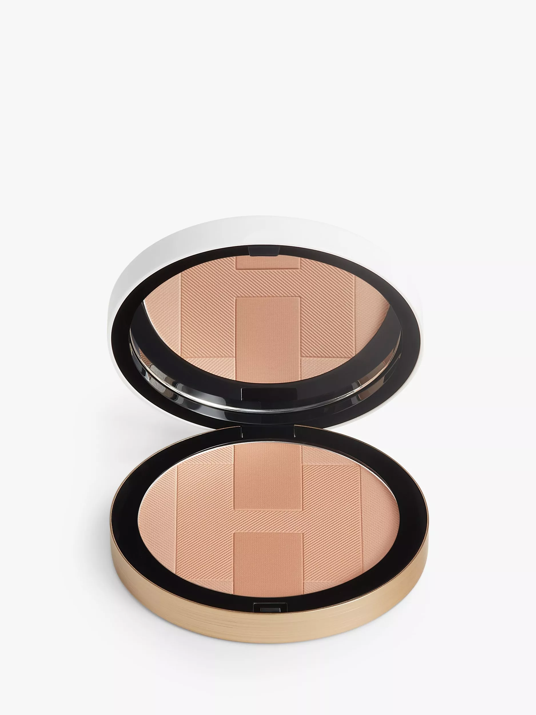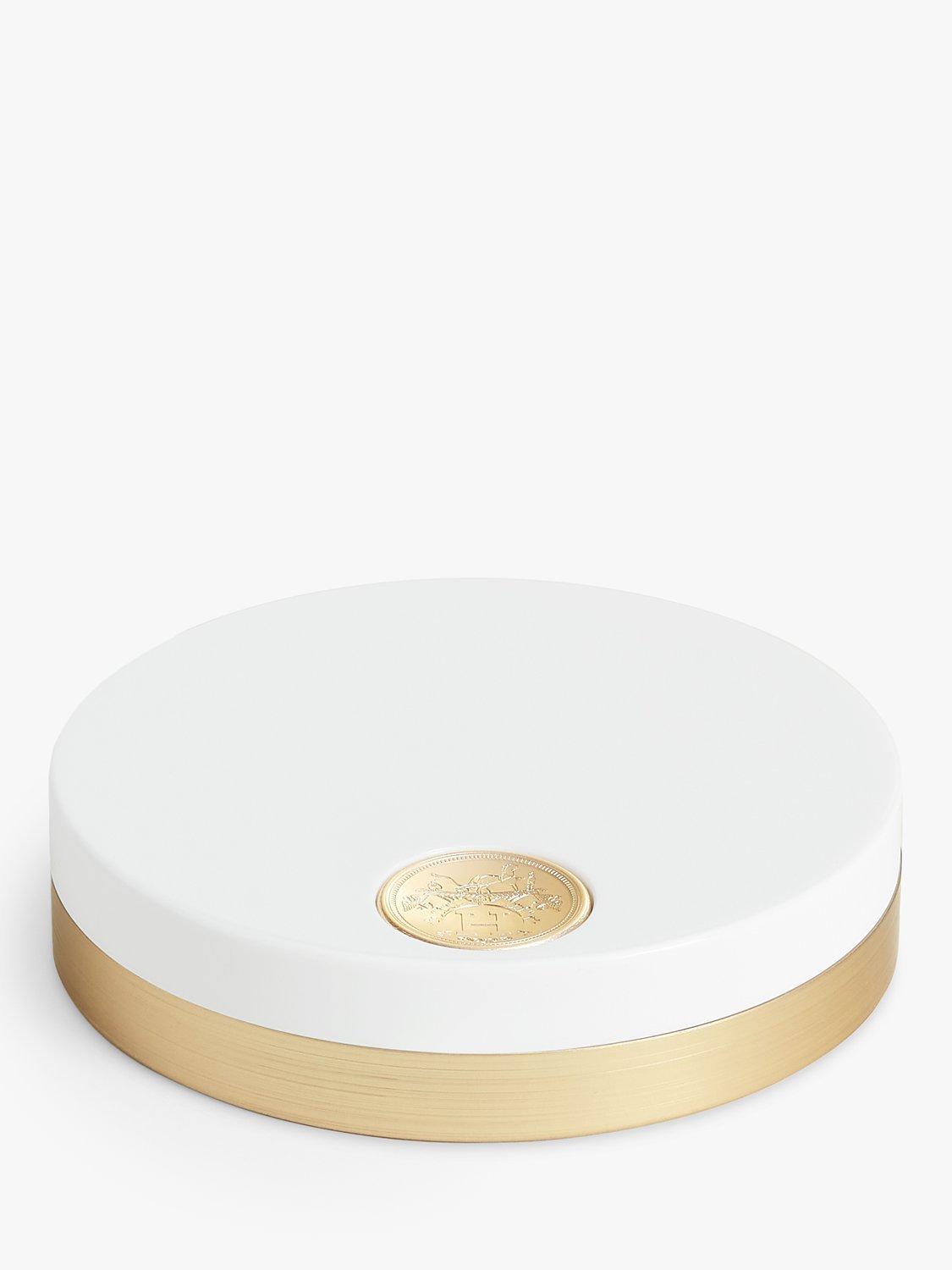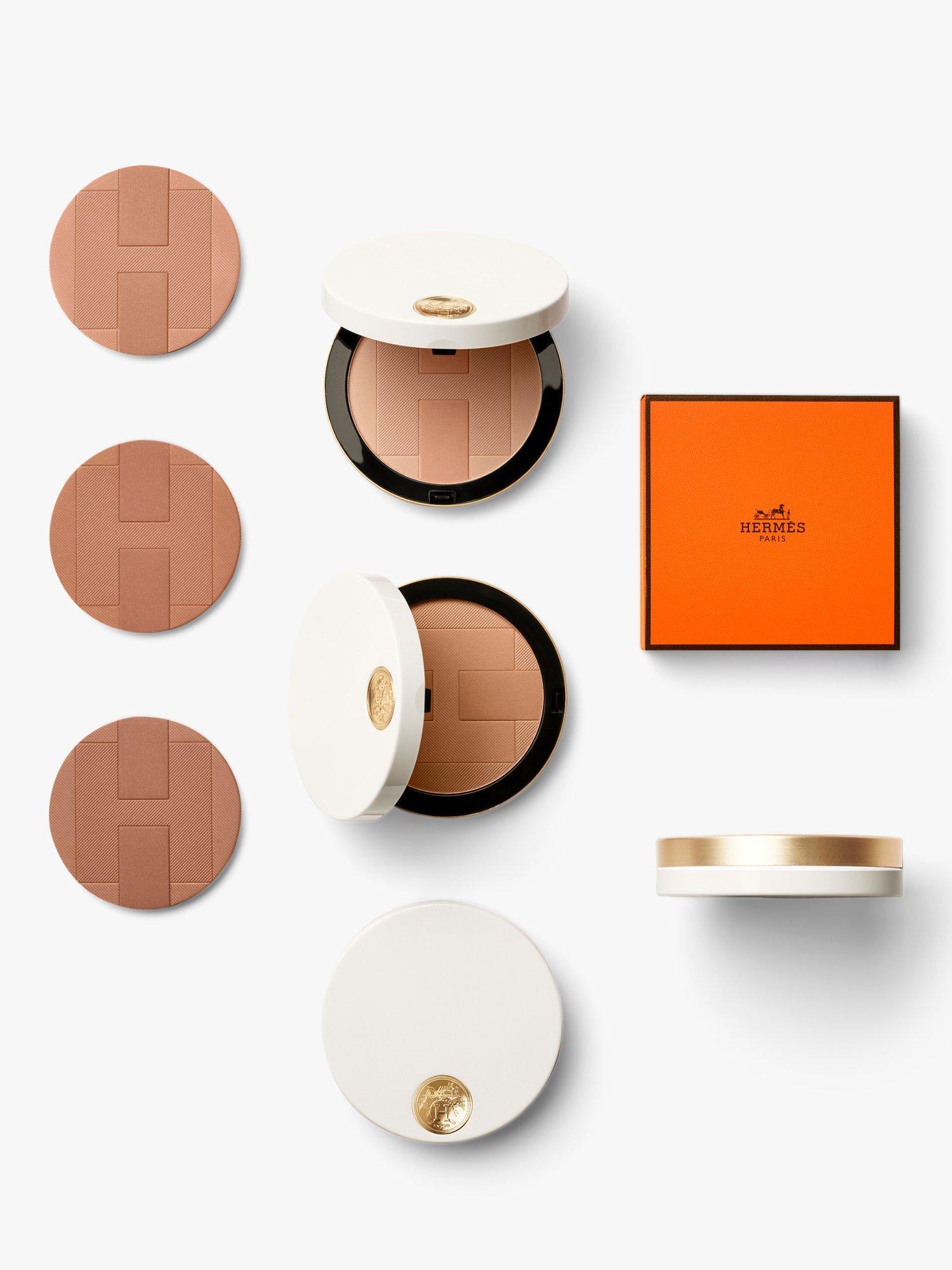 With its round case, this white and gold disc of light designed by Pierre Hardy is remarkable for its generosity. The compact powder bears a pattern of fine lines evoking silk twill, overlaid by the emblematic H passant motif. This Art Deco-influenced graphic signature was created in the mid-1920s for Hermès the saddler. The H is as functional as it is aesthetic, and offers three levels of intensity for a single shade, the vertical band being the darkest and the background the lightest.