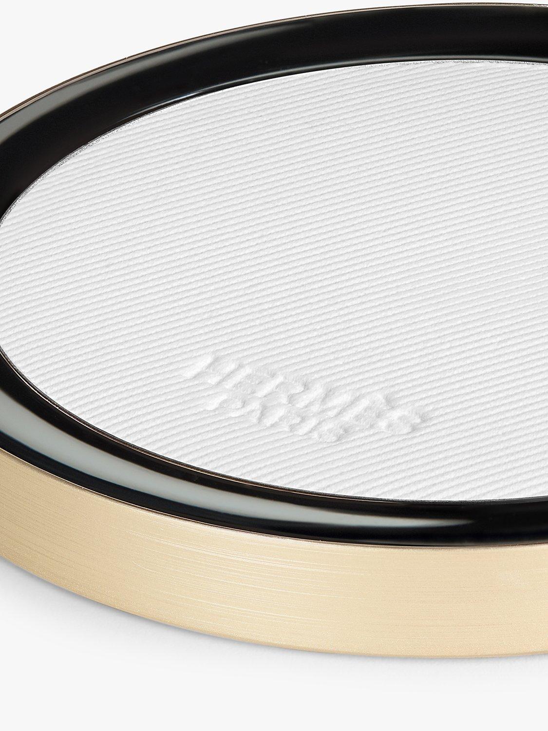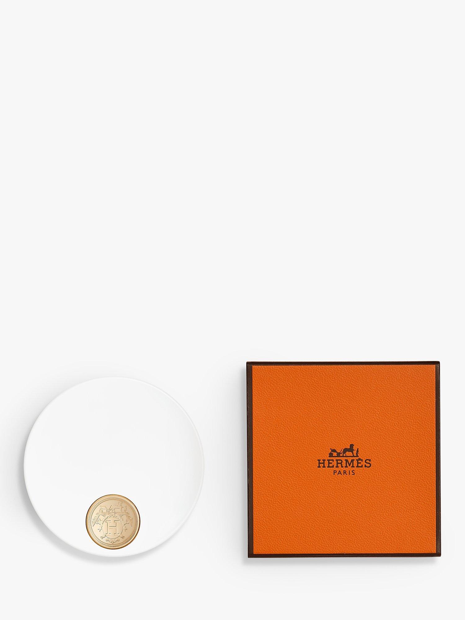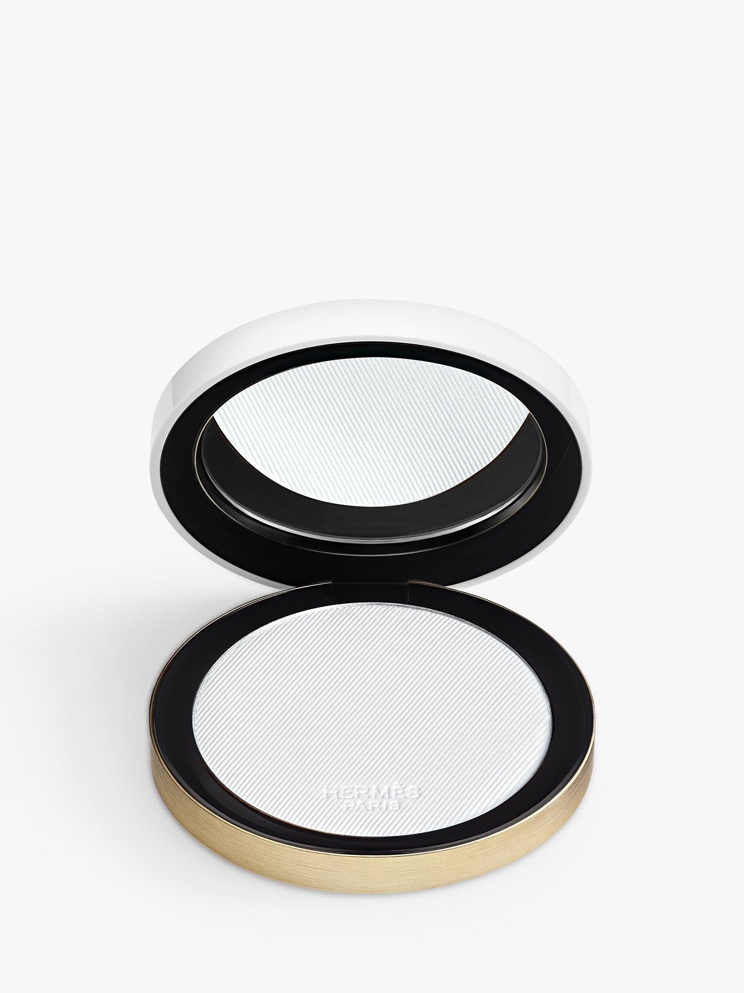 Object: Its round case with off-centre mirror is a disc of light in white and gold designed by Pierre Hardy. A lightweight object, it was created for use on the go. Slipped into its orange box, it is a pure Hermès object.