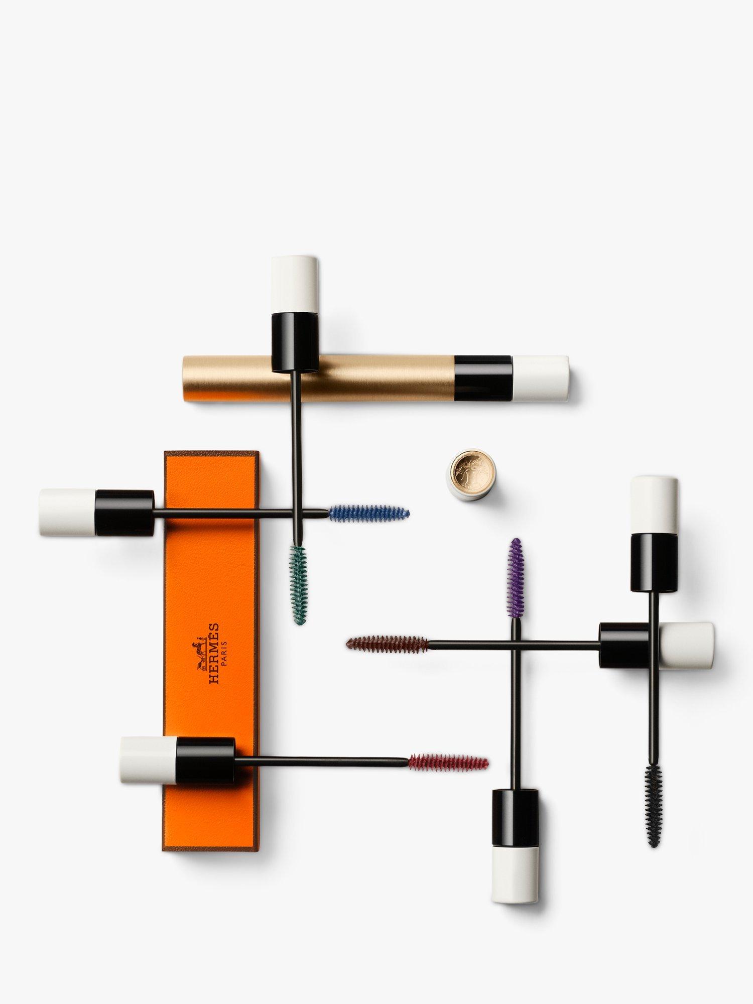 This refined and slender object holds an ultra-fine technical wand composed of plant fibres derived from the castor bean. Its shape forms a subtle H, creating reservoirs in the sides that deposit just the right amount of product on the lashes. True objets d’art designed by Pierre Hardy, each mascara is packaged in an orange box, a house signature.