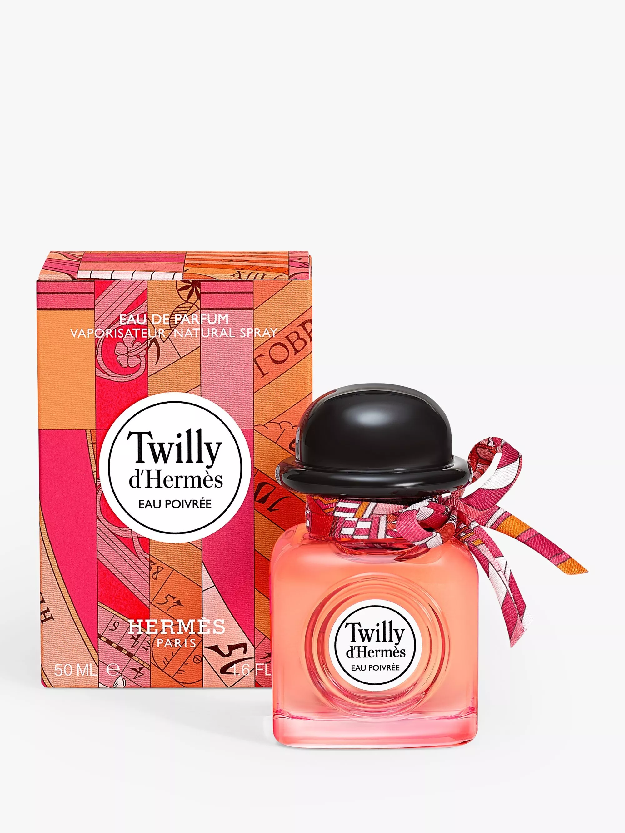 Designed by Florence Manlik, the lantern-shaped bottle has a square silhouette and reddish-pink colour. A unique, hand-tied silk ribbon playfully embellishes it. Its 30ml format allows you to diffuse the fiery spirit of the Hermès girls with Twilly Eau Poivrée wherever and whenever you want.
