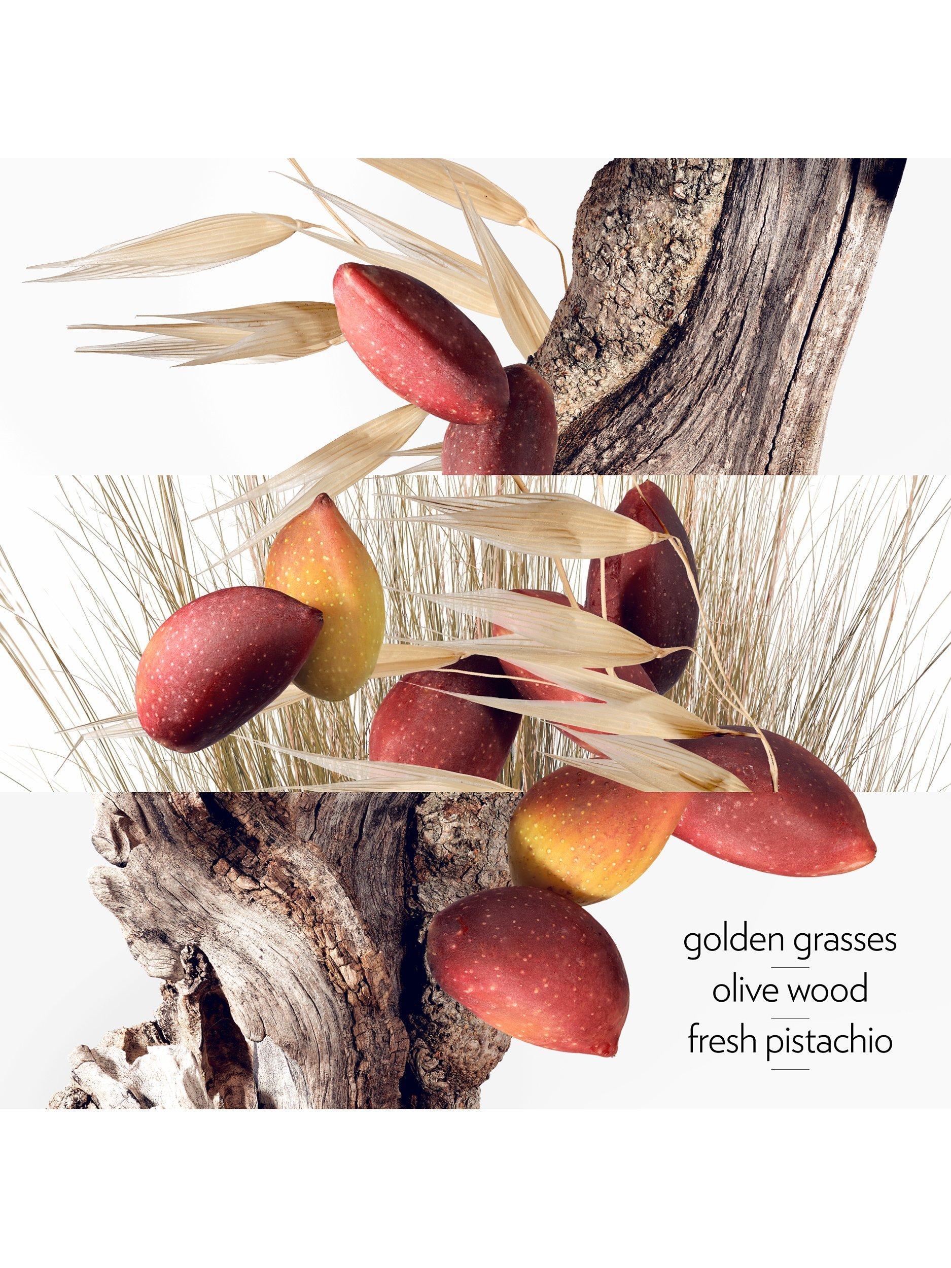 A citrus and woody fragrance, Un Jardin à Cythère Eau de Toilette combines enveloping notes of grasses with the strength of olive wood and the tenderness of fresh pistachio.