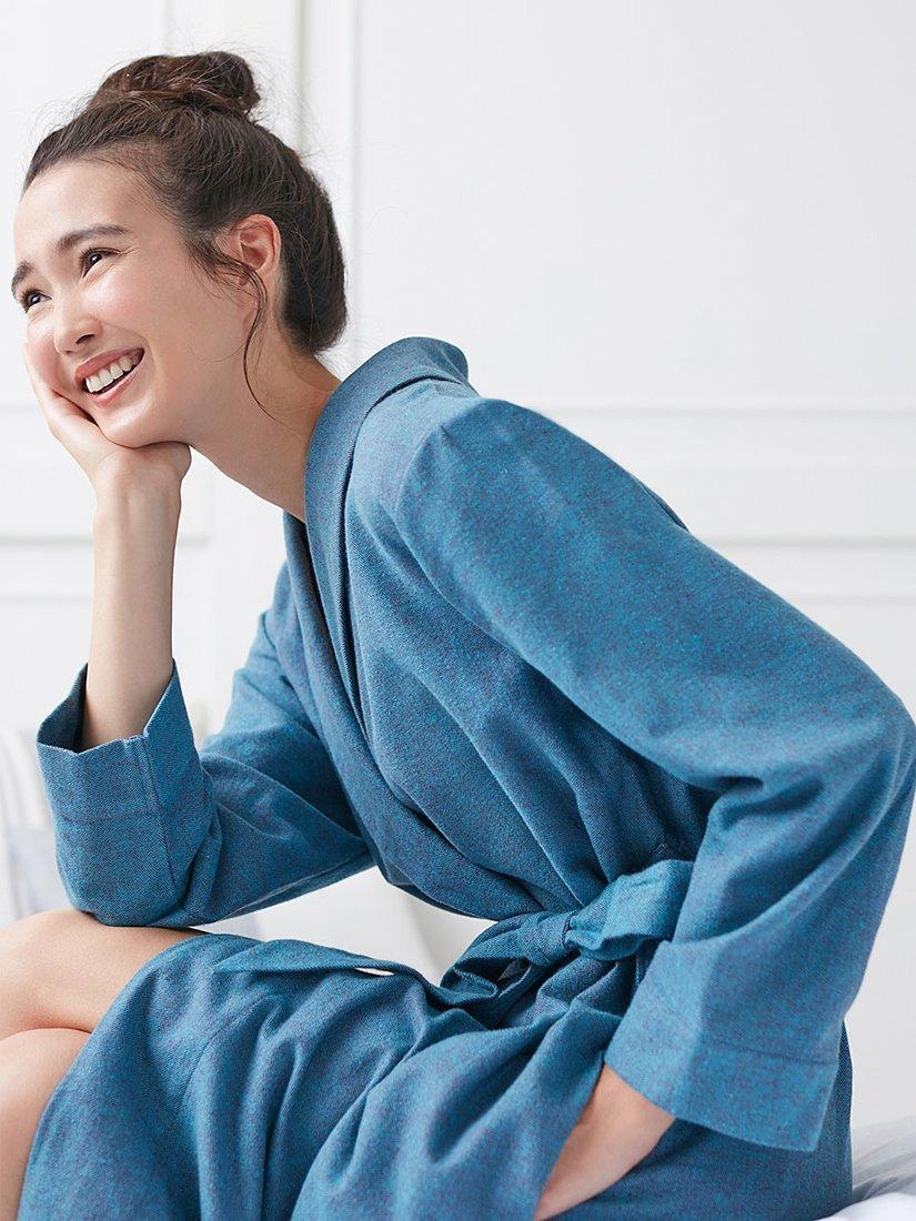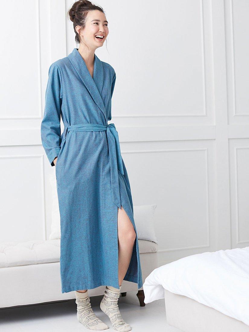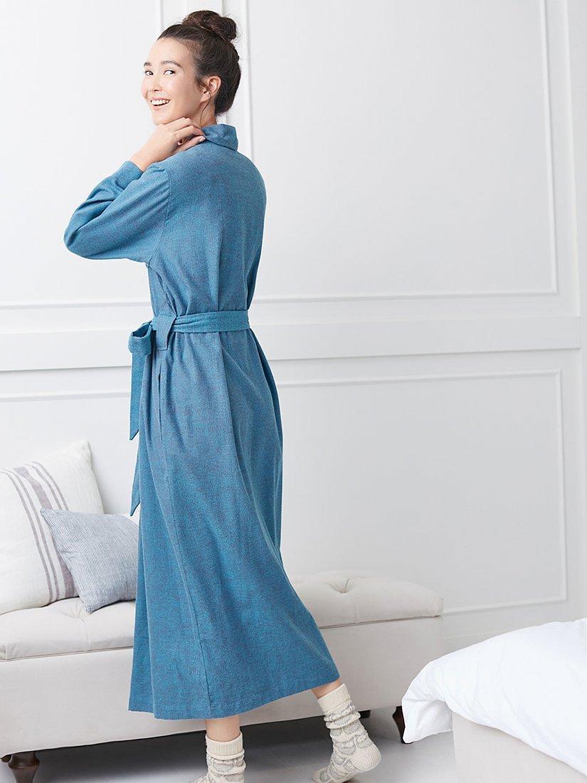 Wrap up in this soft, warm, brushed two-fold flannel dressing gown from British Boxers. A cosy classic, it's the fabric that makes this robe so special, the fibres in the cloth are initially dyed to the brand's own colour specification, then brushed repeatedly to make them super soft. Finally, they are woven with skill to the in-house design. There are two useful hidden pockets at the side, inside ties and the robe fastens with a matching belt.