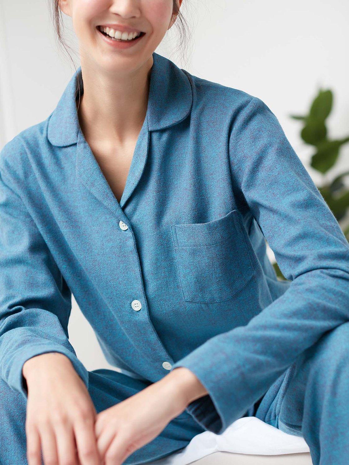 Made from brushed cotton for a super-soft and cosy handle, these British Boxers pyjamas are finished with a traditional jacket with a rounded collar and a handy breast pocket. Perfect for nighttime wear and lazy Sundays, the set is complete with matching trousers that boast a tie waist for optimum comfort and fit.