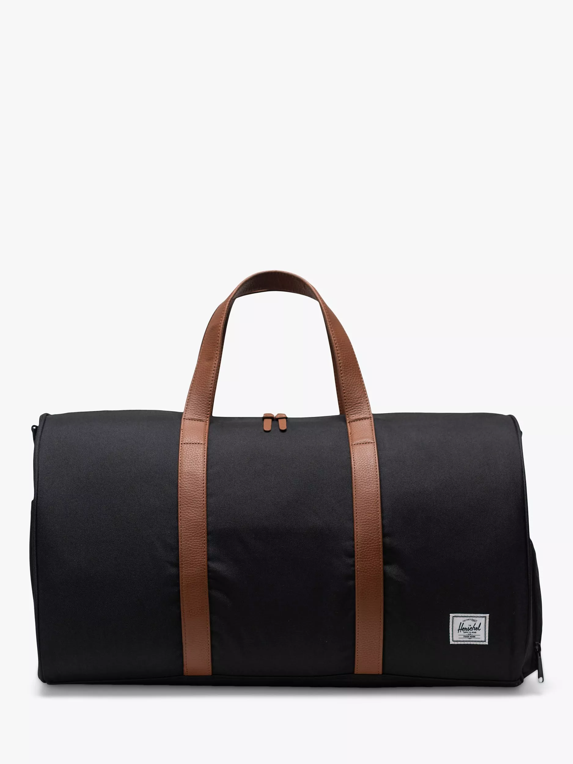 - Low-profile vegan leather handles