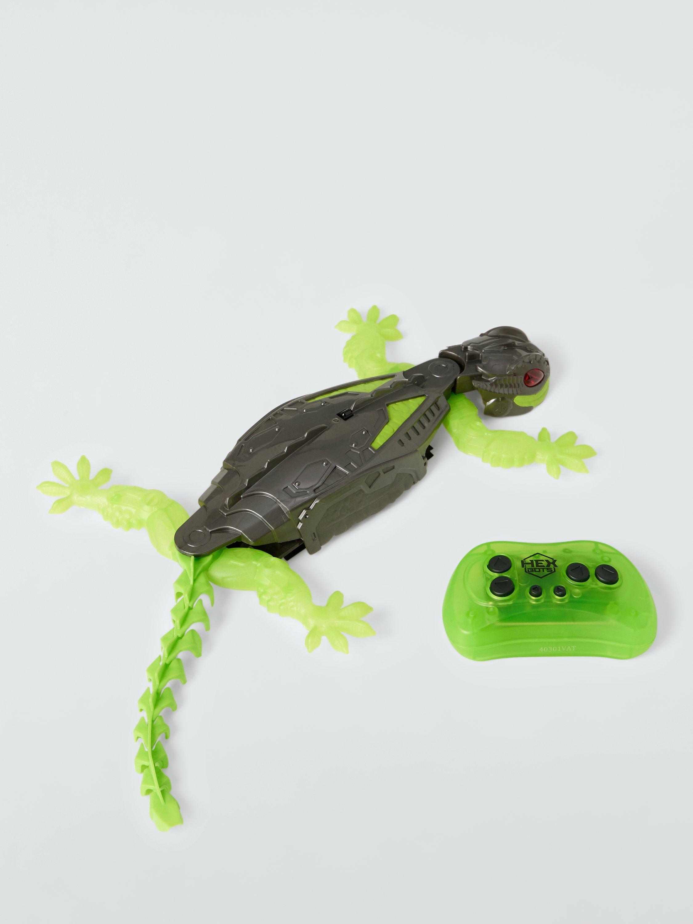 Creep out friends and family with the HEX BOTS Wall Crawler Gecko! This hyper-realistic robot toy lizard is guaranteed to get a scream out of anyone afraid of creepy crawly insects or bugs! Watch as your Gecko scurries across the floor and scales up walls, just like a real gecko! A full function remote control allows for intuitive play as you can control it just the way you want, and LED light eyes make the Wall Crawler Gecko stand out in the dark! The body is made of hard plastic, with silicone for the limbs and tail! These RC toys come with a range of 25 ft (8 m), and 1 USB Cable is included so you can have endless fun with the HEX BOTS crawling toys! Requires 2 AAA Batteries which are not included.