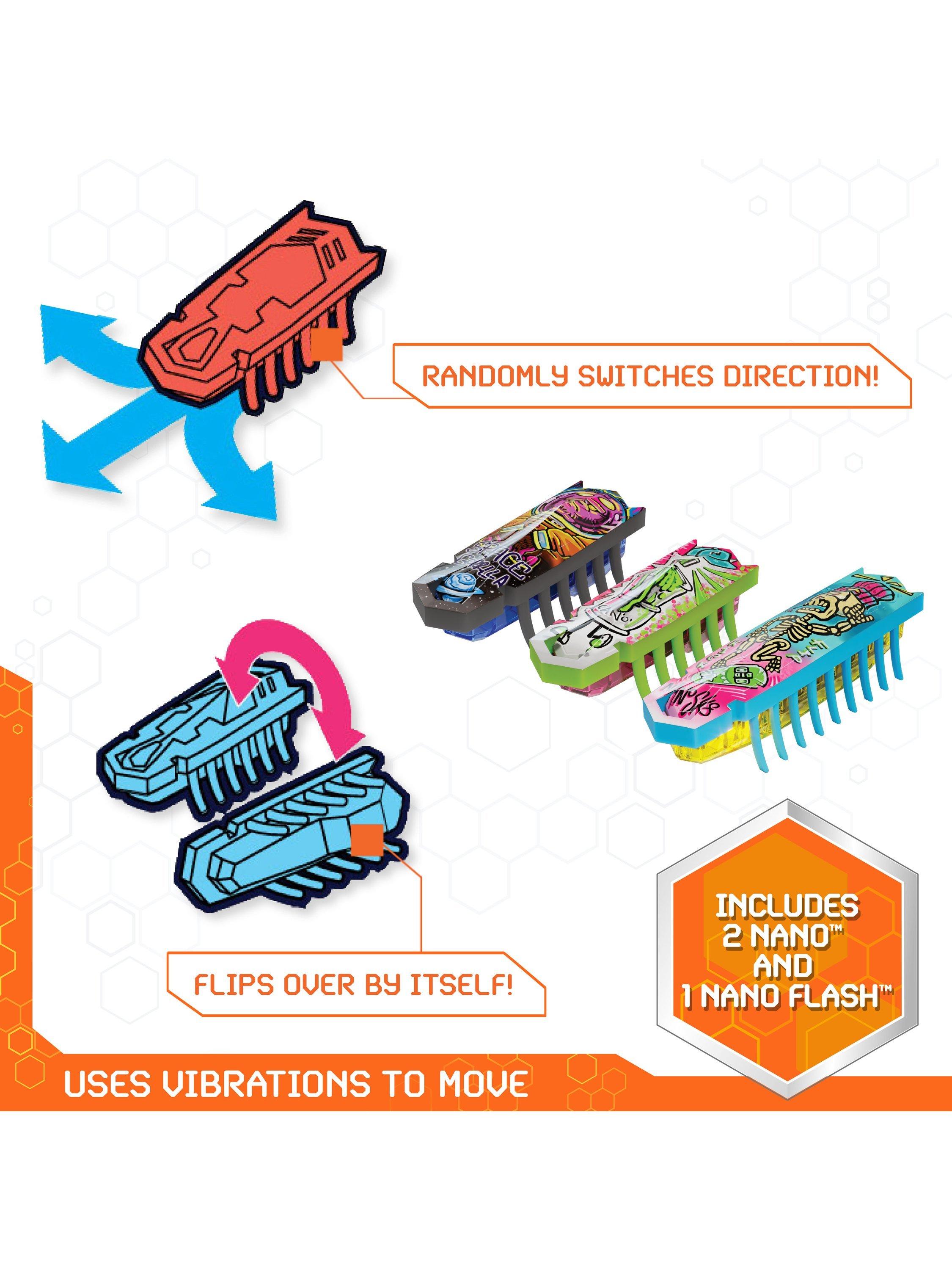 Discover the power of vibration technology as your nanos bounce off the walls with HEXBOTS Nano Land. This mix and match construction toys play set includes the latest, fastest Nano yet: Flash Nano, two HEXBOTS Nanos, and flexible jelly walls to build imaginative playgrounds, racetracks and more.