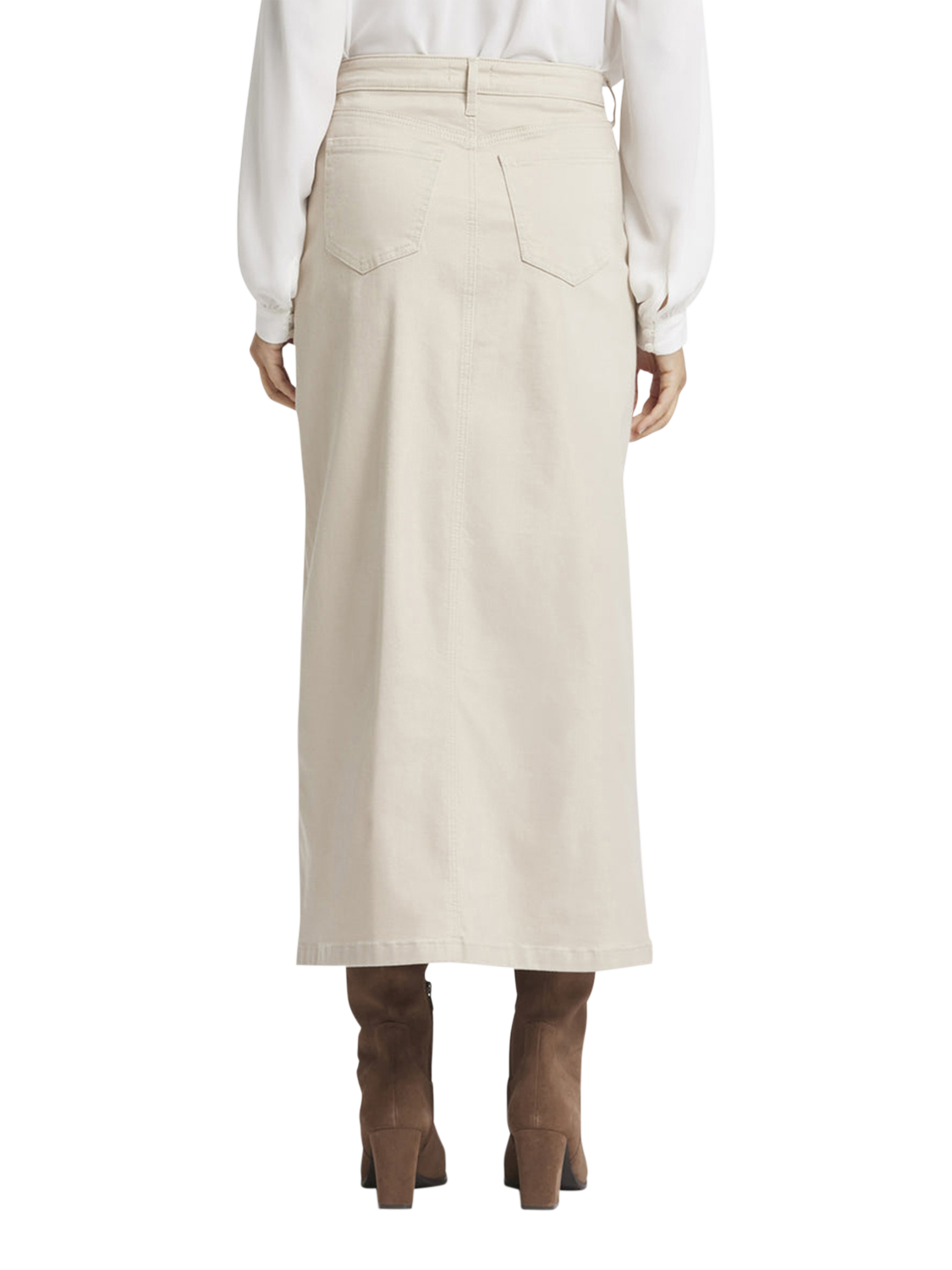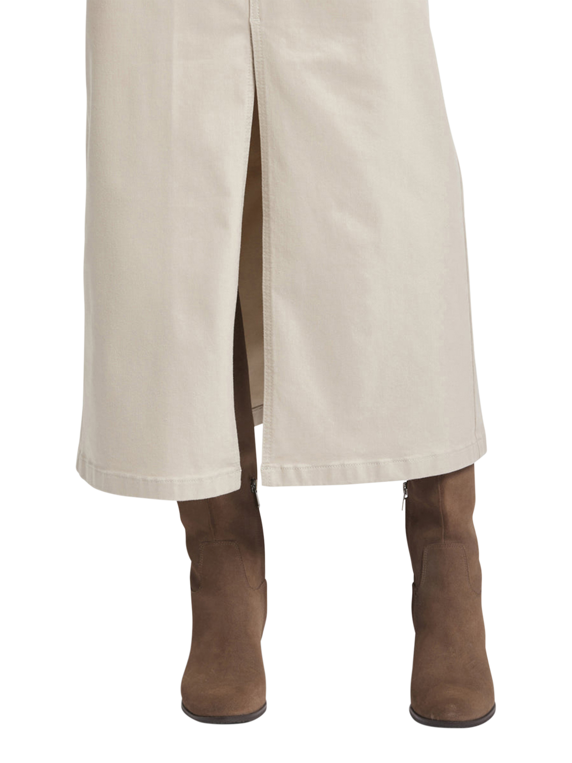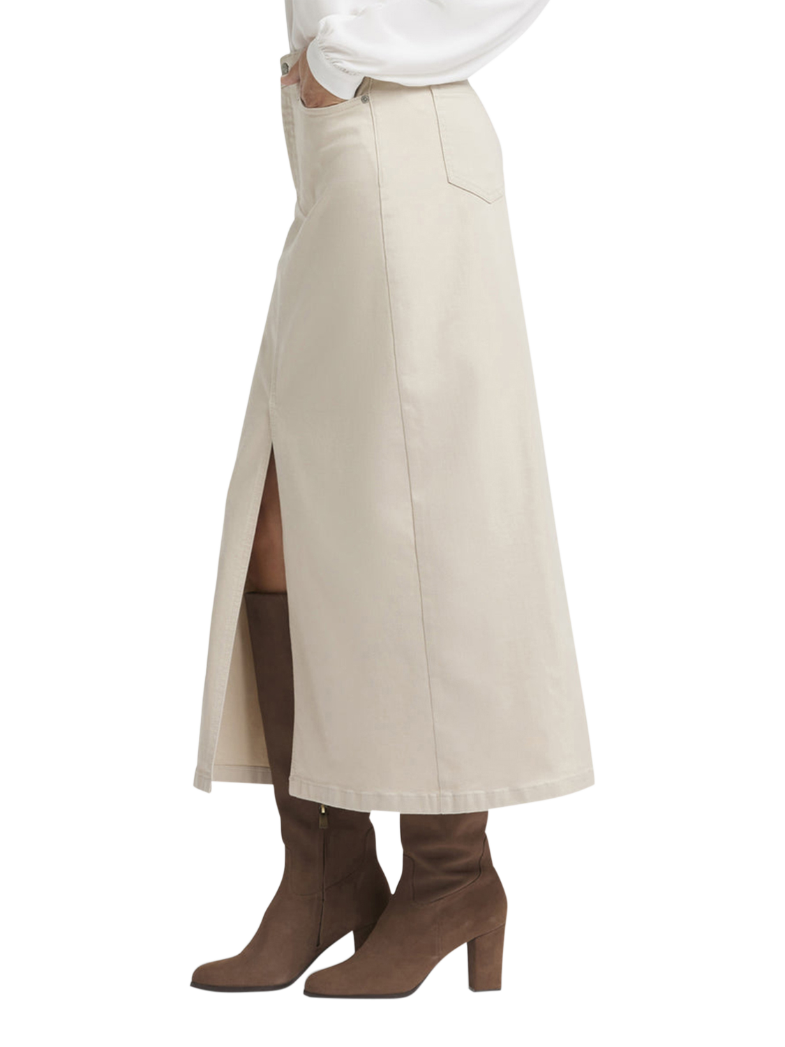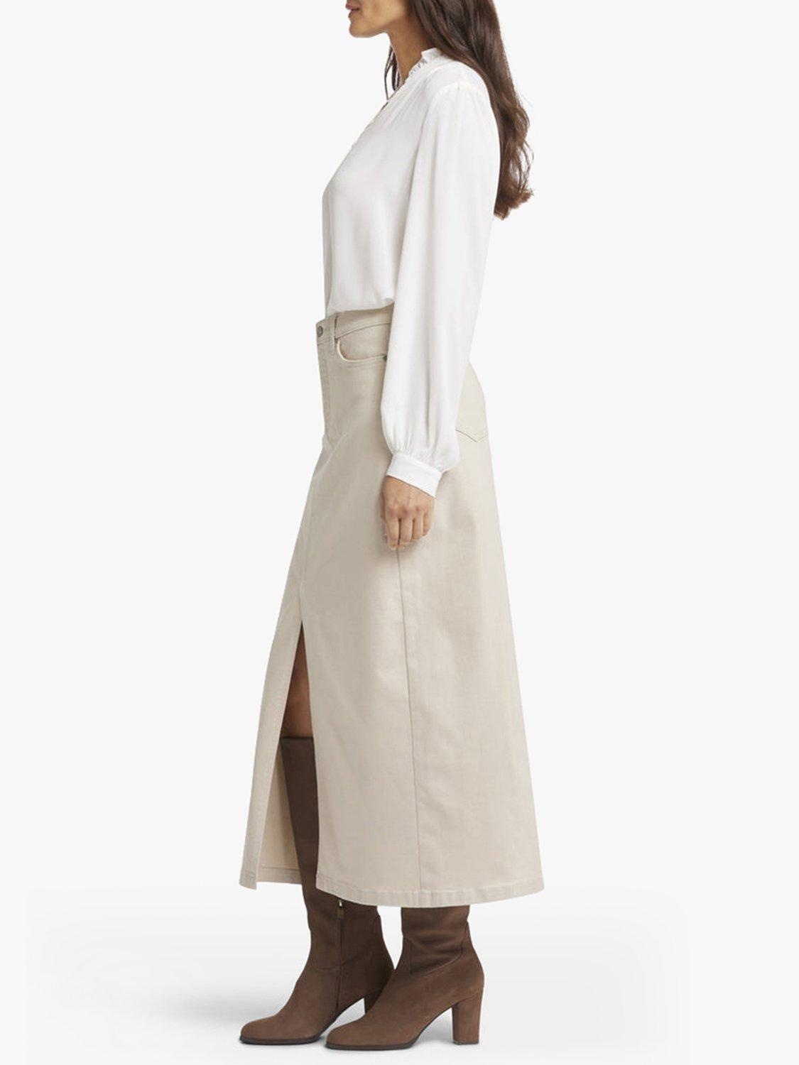 NYDJ's High Rise Long Skirt is a classic wardrobe staple that you'll get endless wears out of all season long. Our signature Lift Tuck® Technology provides just the right amount of support for a smooth, flawless figure—all thanks to an innovative, proprietary slimming panel with a patented criss-cross design. Finished with five-pocket styling, zip fly, button closure and center front slit for ease of movement. This skirt is made with earth-friendly methods that result in reduced consumption of water, chemicals and/or energy.