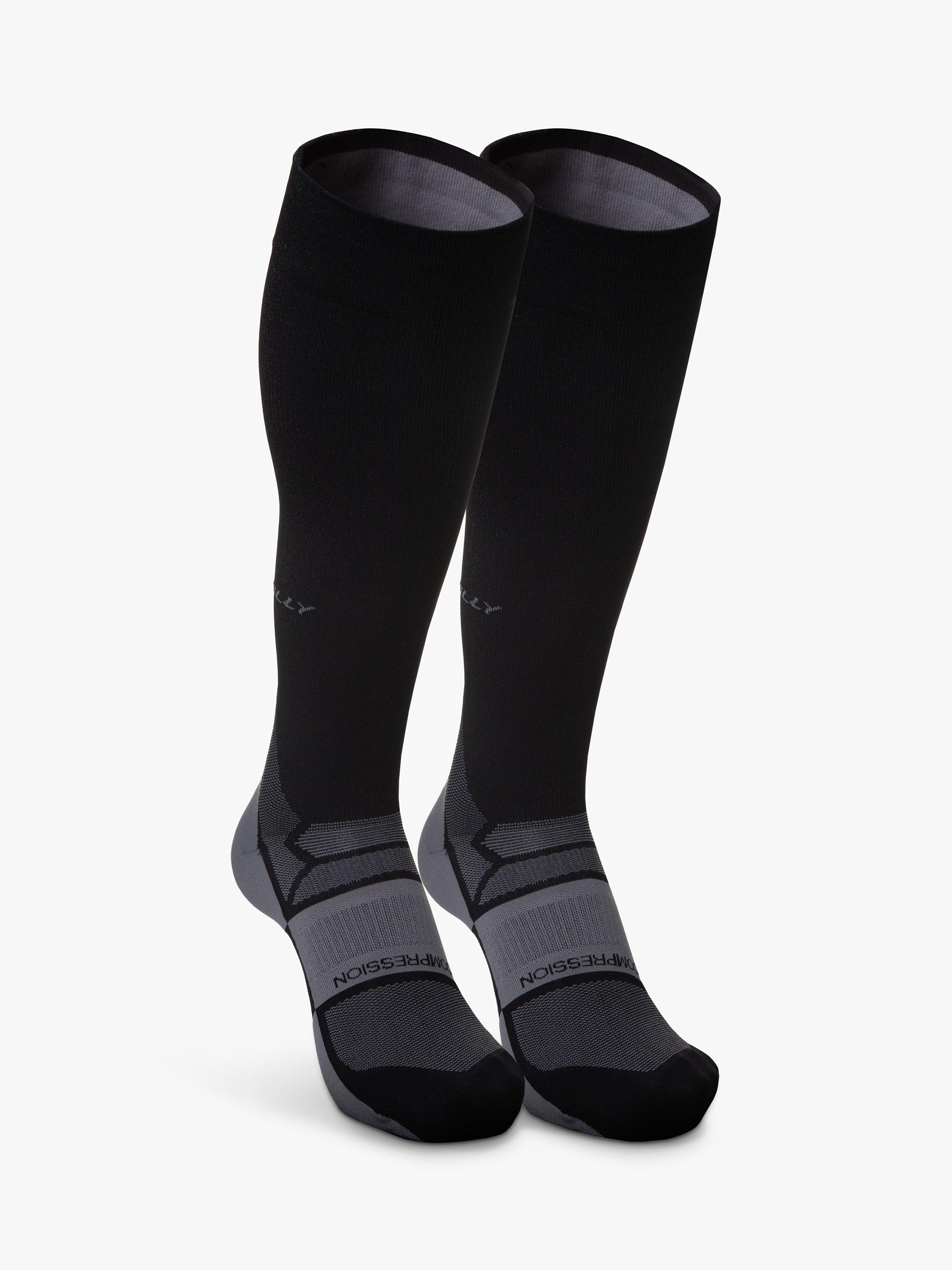 The socks offer a secure fit around the ankle and calf, improving circulation and flushing lactic acid. They offer a breathable feel with vented panels at the upper foot and arch, and feel super soft on the skin.