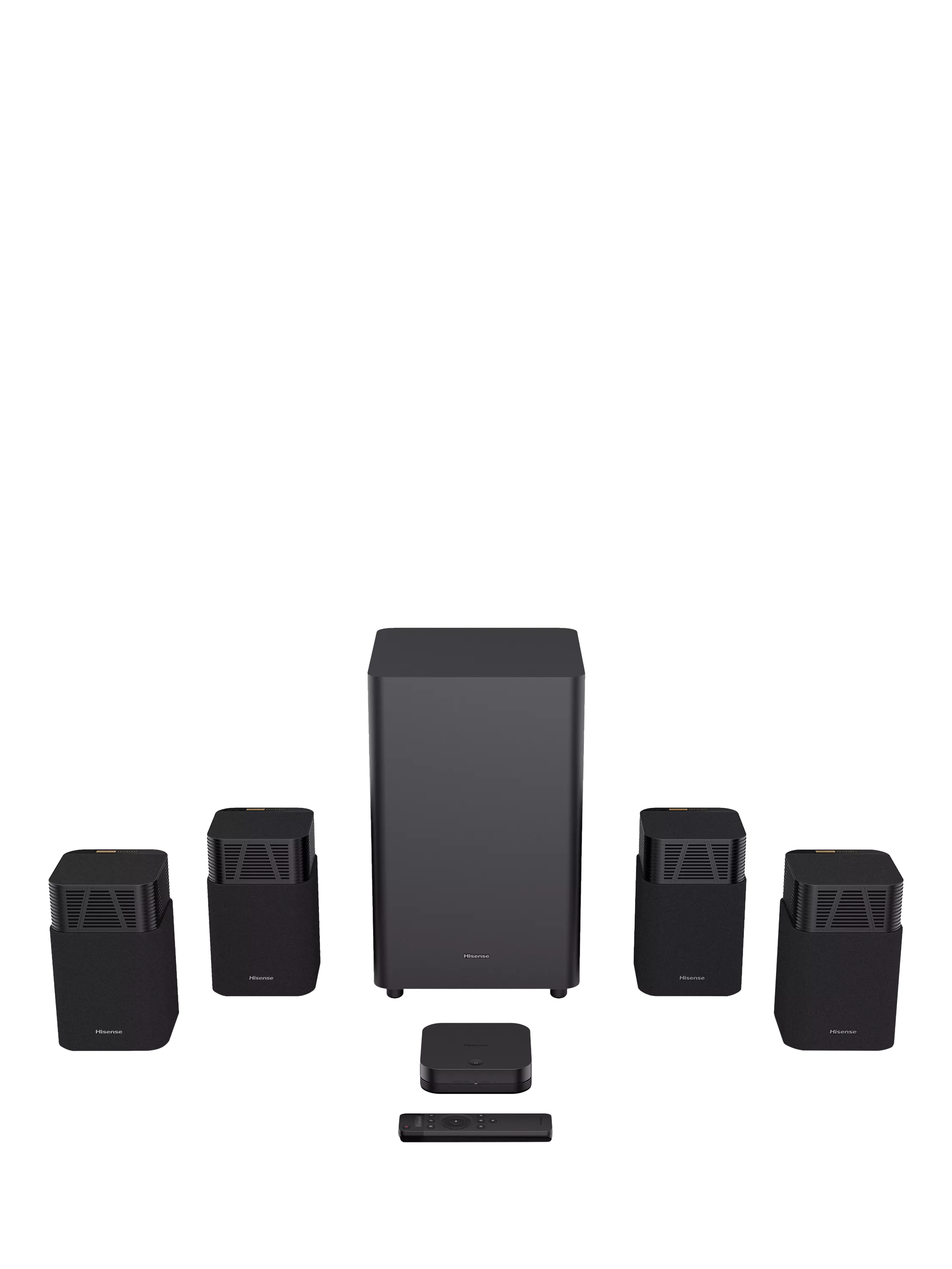Add power, clarity, immersion and cinematic sound to your home entertainment with Hisense’s HT Saturn Home Theatre Sound System. It comprises five separate wireless speakers, including a booming subwoofer.