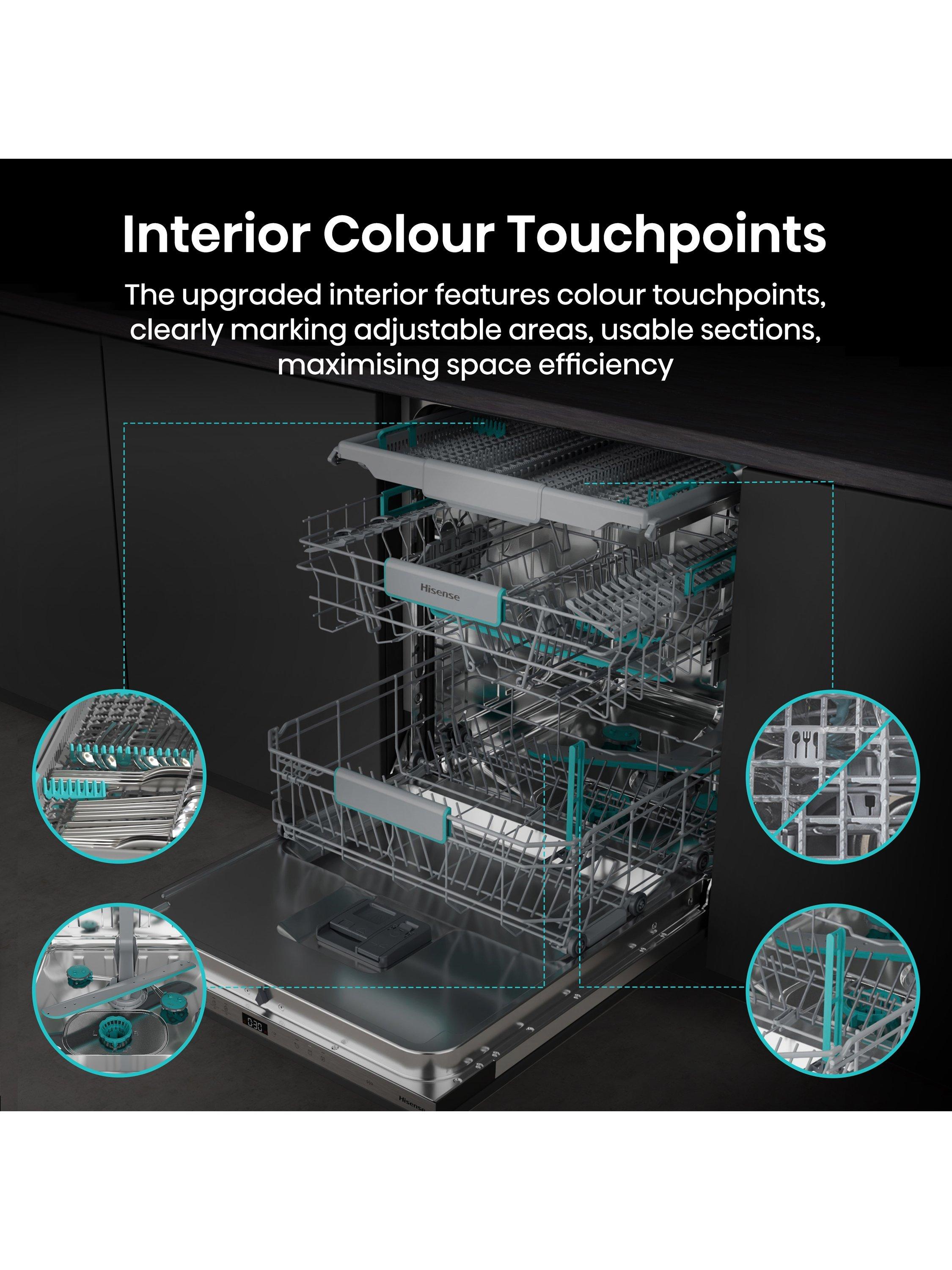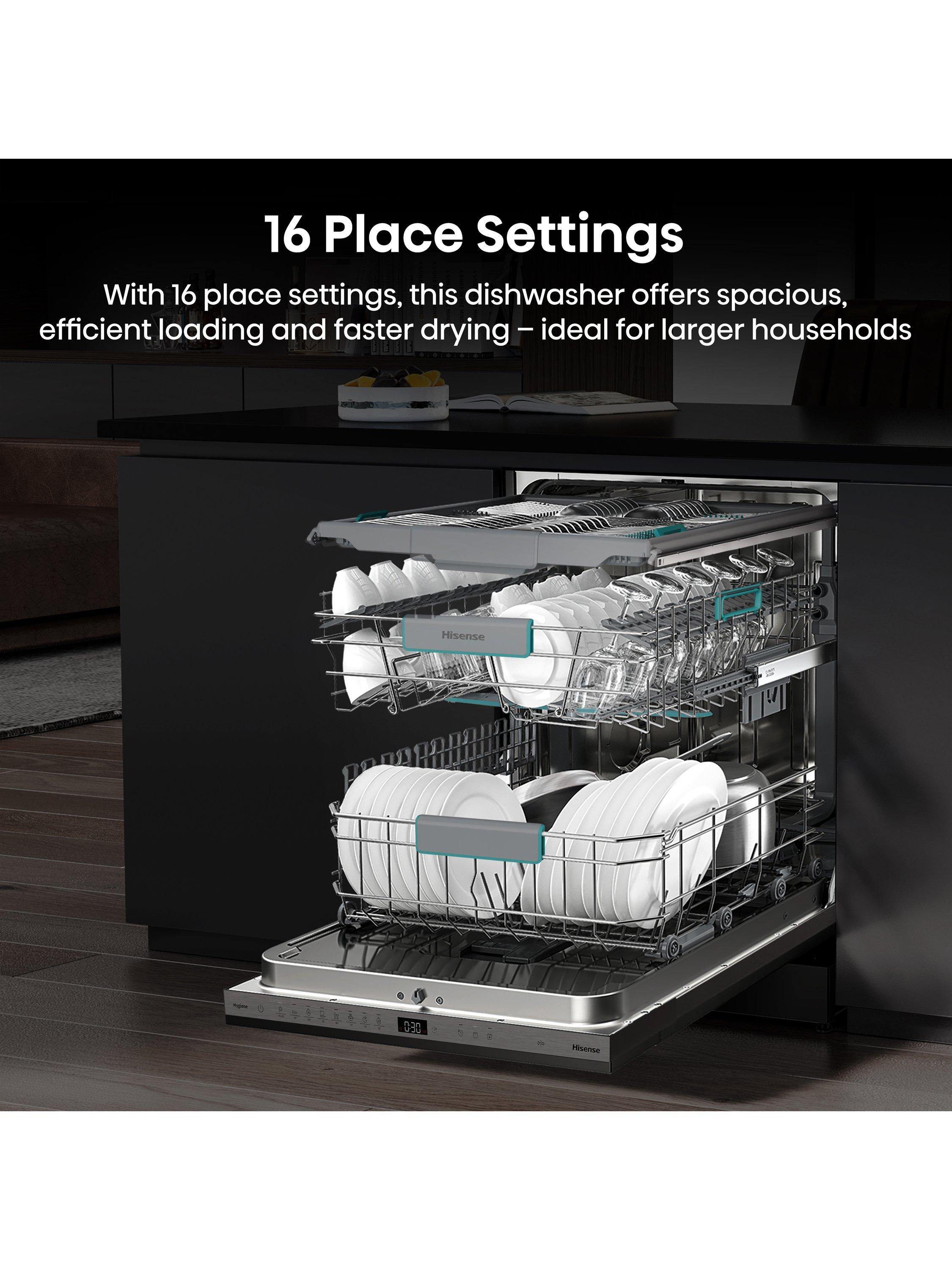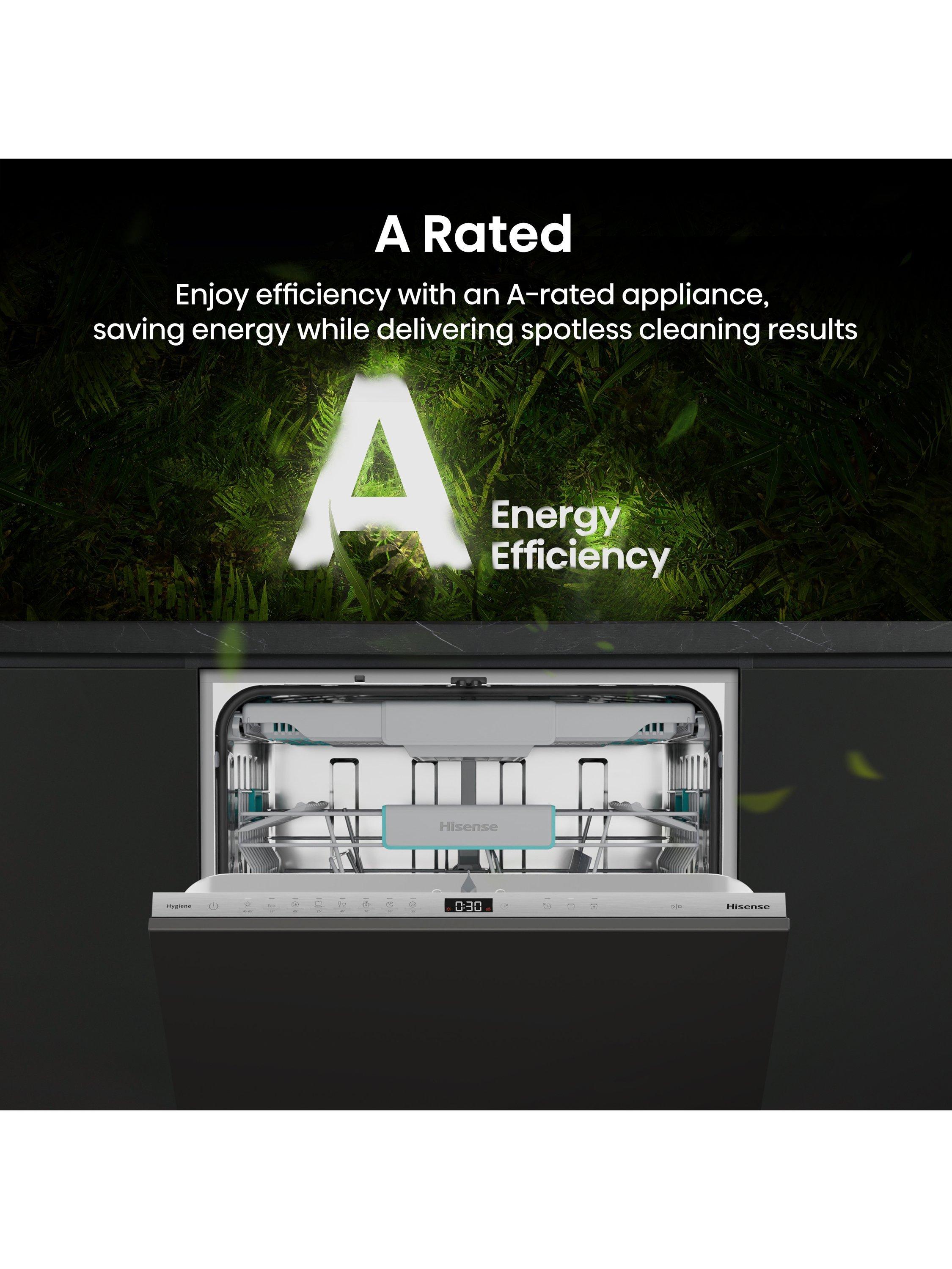 The Hisense HV16AUK Full-Size Fully Integrated Dishwasher combines energy efficiency and powerful performance in one sleek design.
