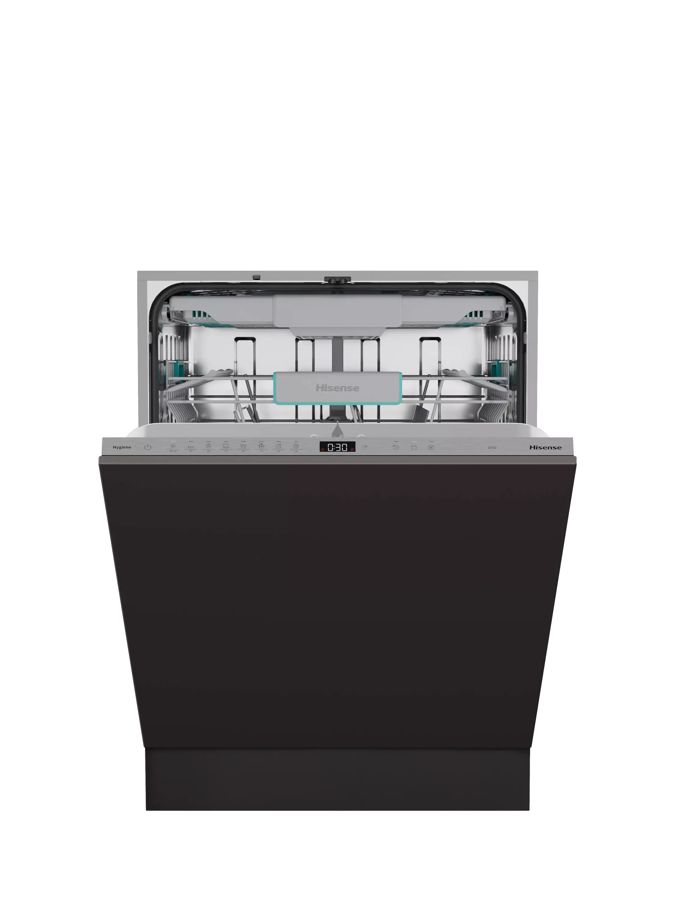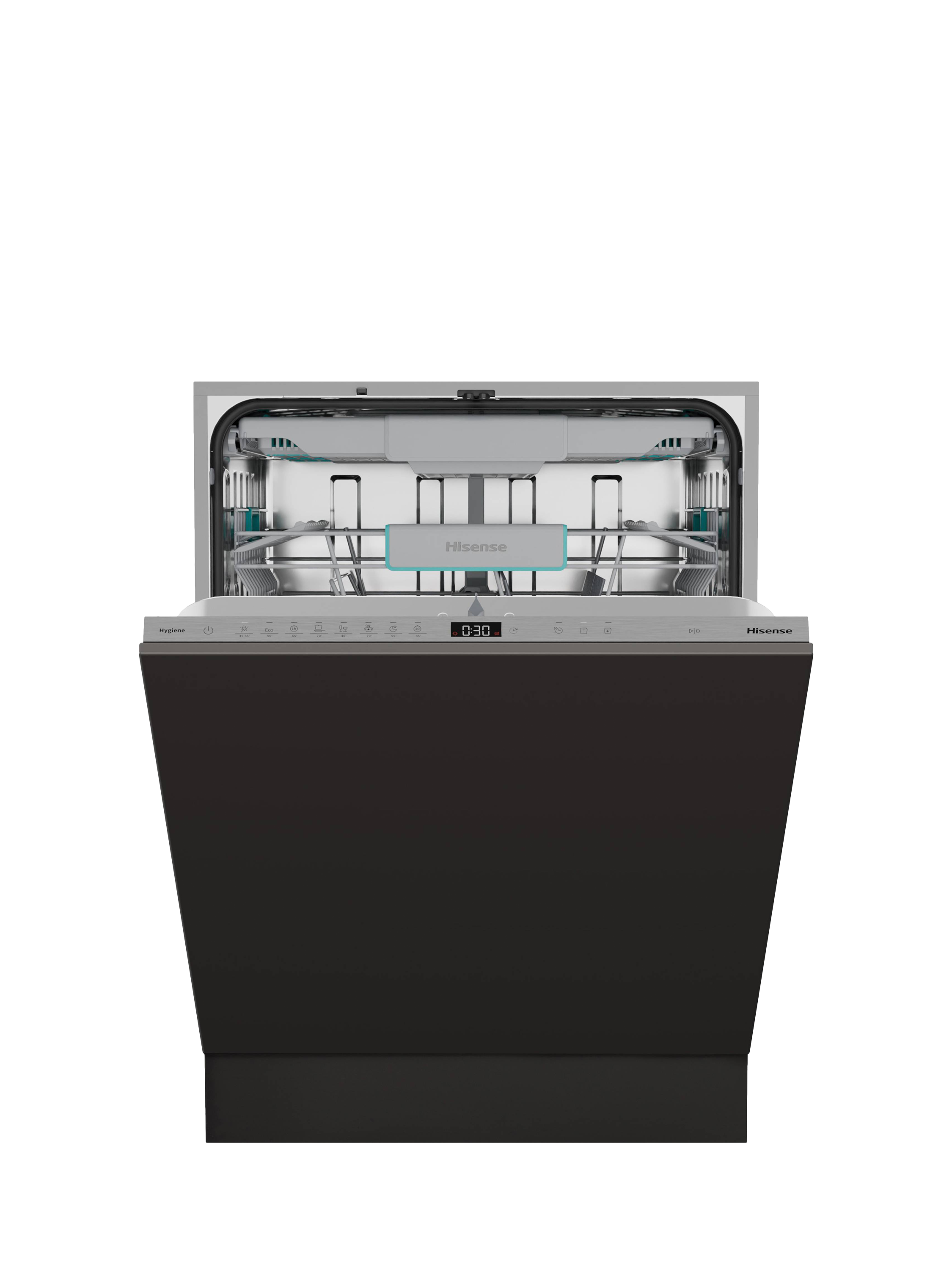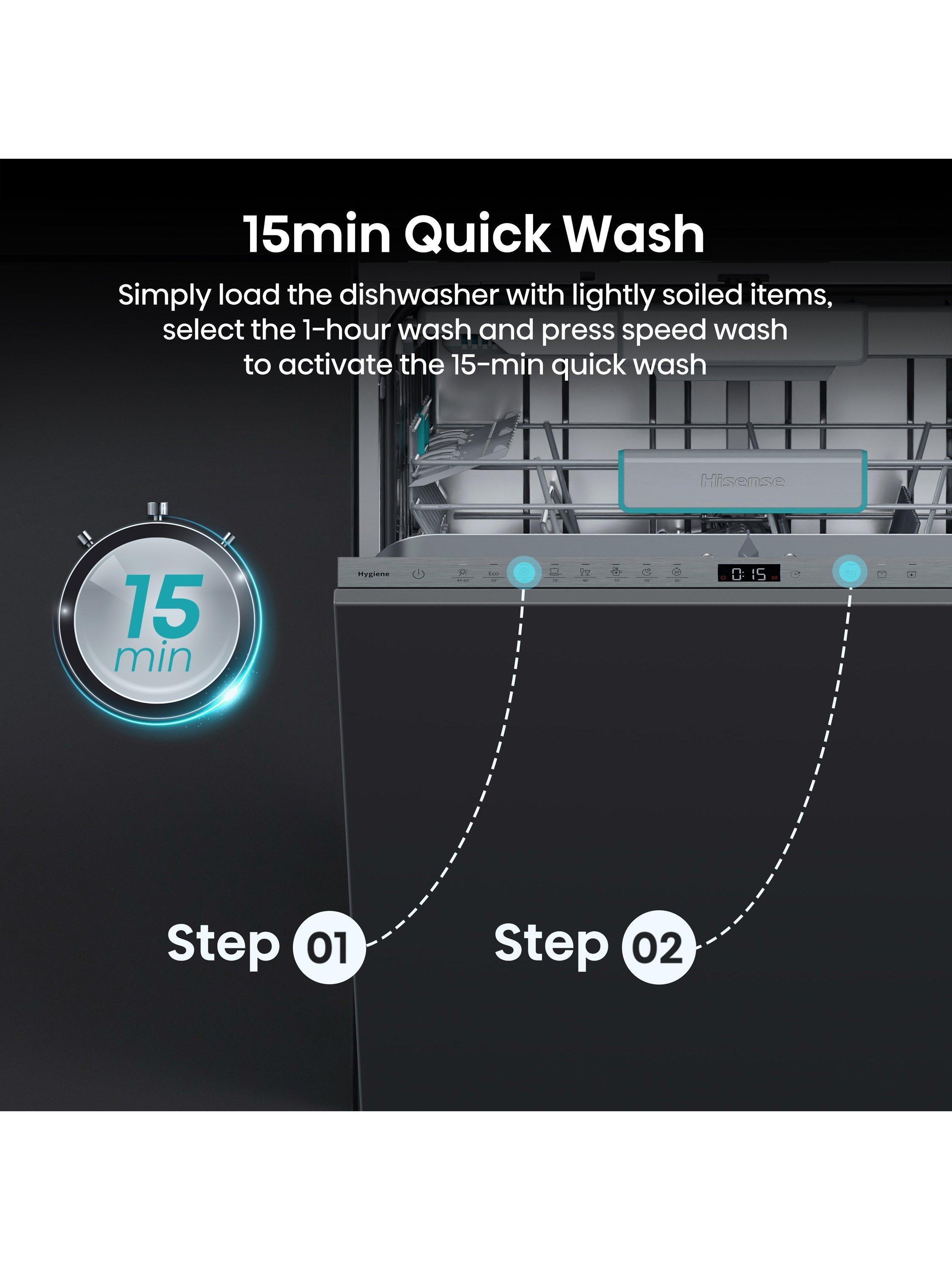 The Hisense HV16AUK Full-Size Fully Integrated Dishwasher combines energy efficiency and powerful performance in one sleek design.
