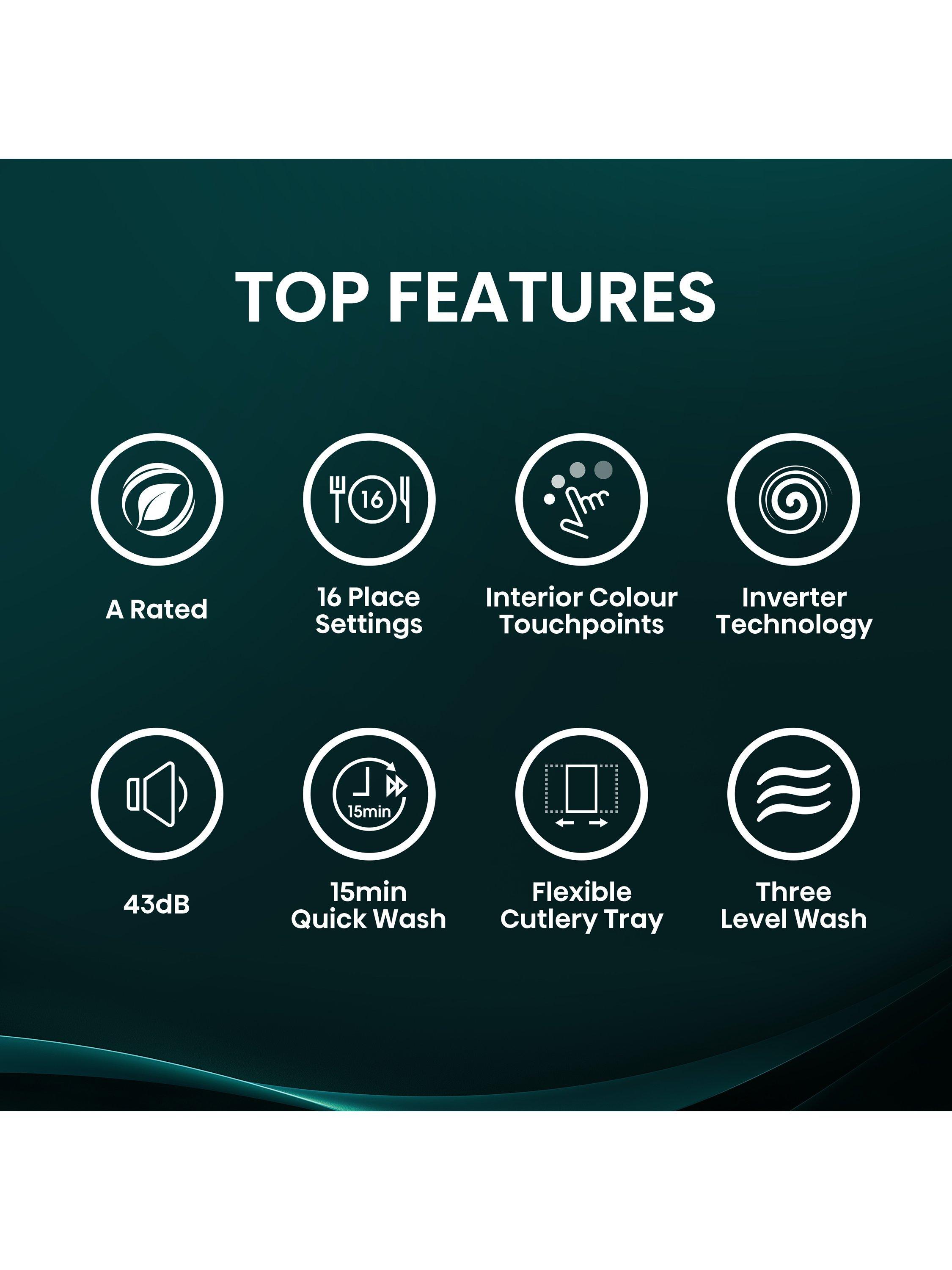 16 Place Settings offers ample amount of space for all your dinner plates, glasses and cutlery. The ergonomic design helps to use the space more efficiently whilst improving drying times. Perfect for those with a larger household or for those who enjoy to entertain.